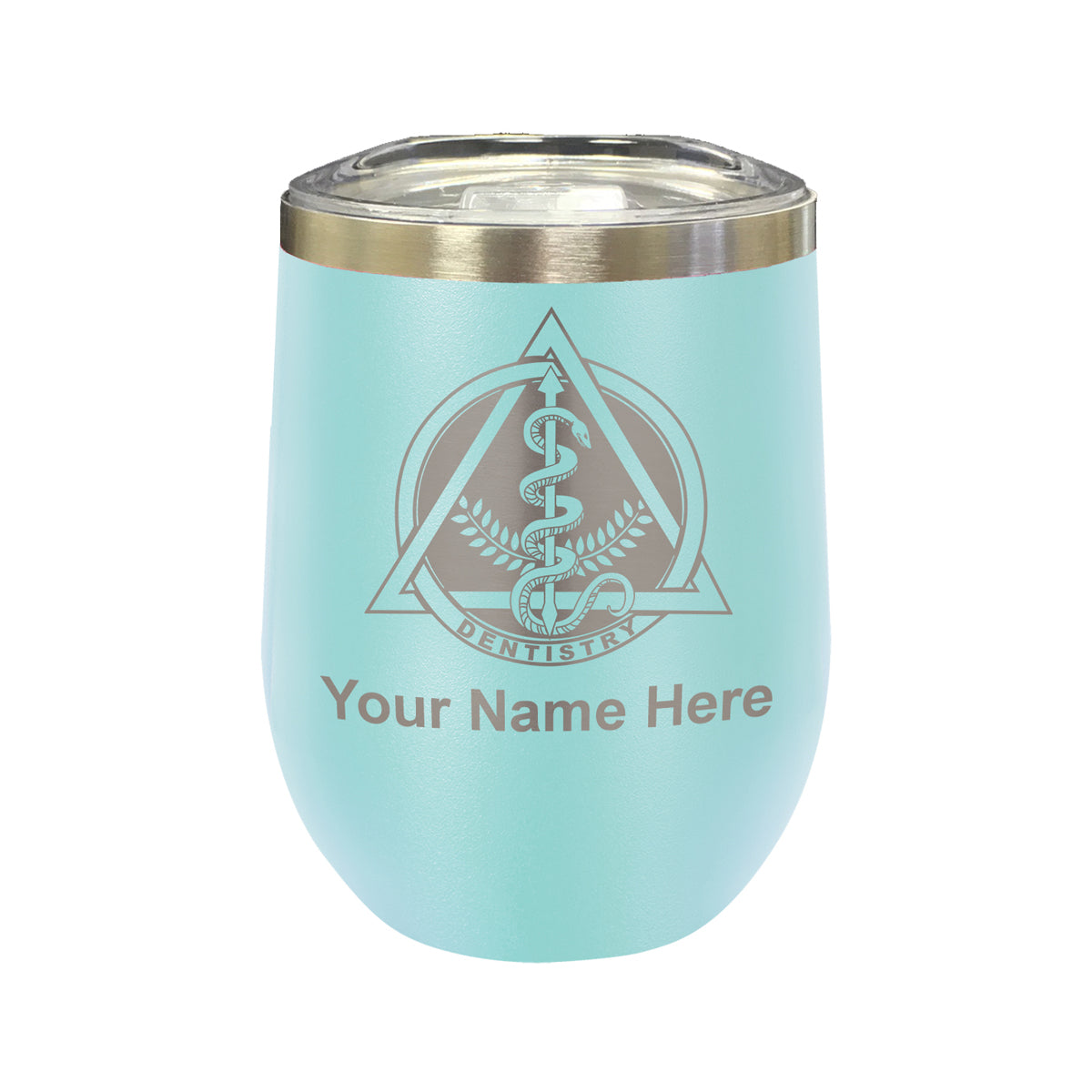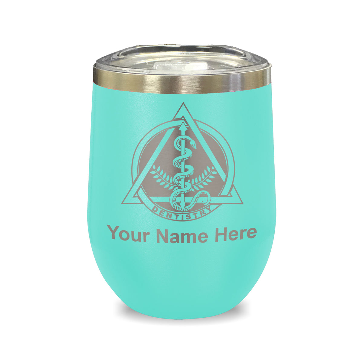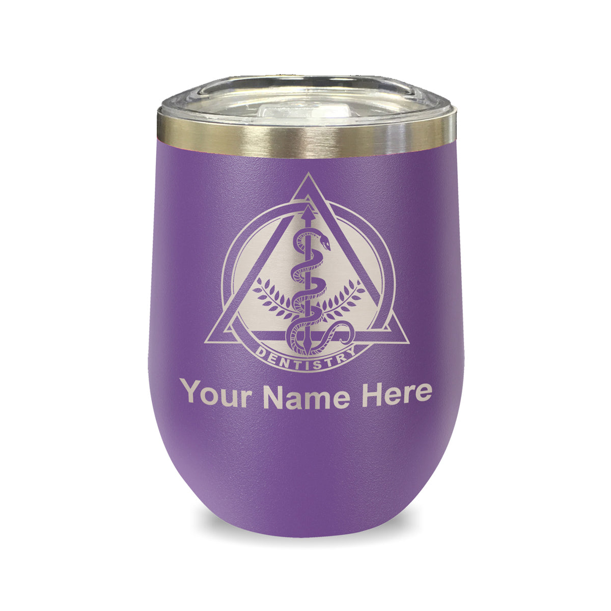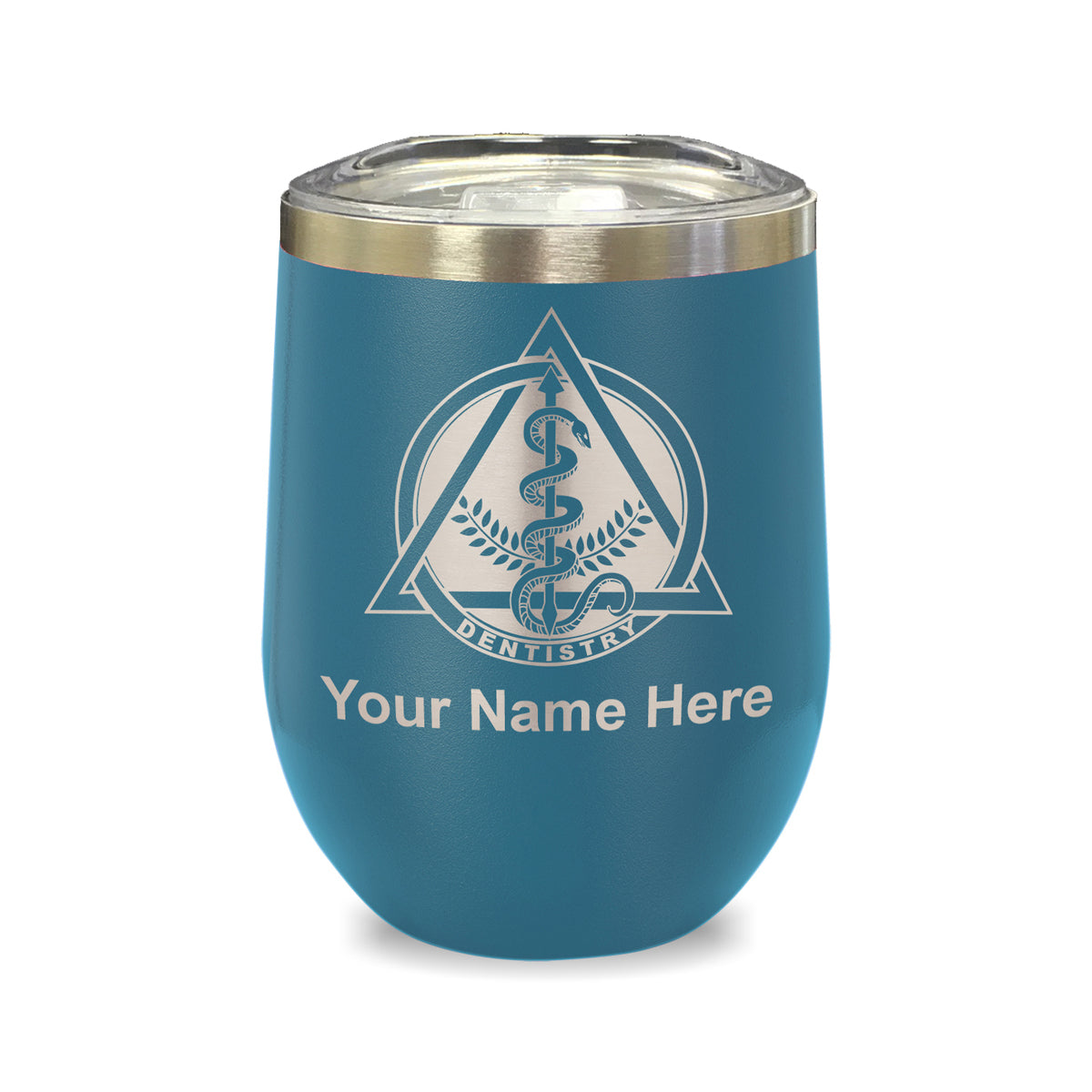 LaserGram Double Wall Stainless Steel Wine Glass, Dentist Symbol, Personalized Engraving Included