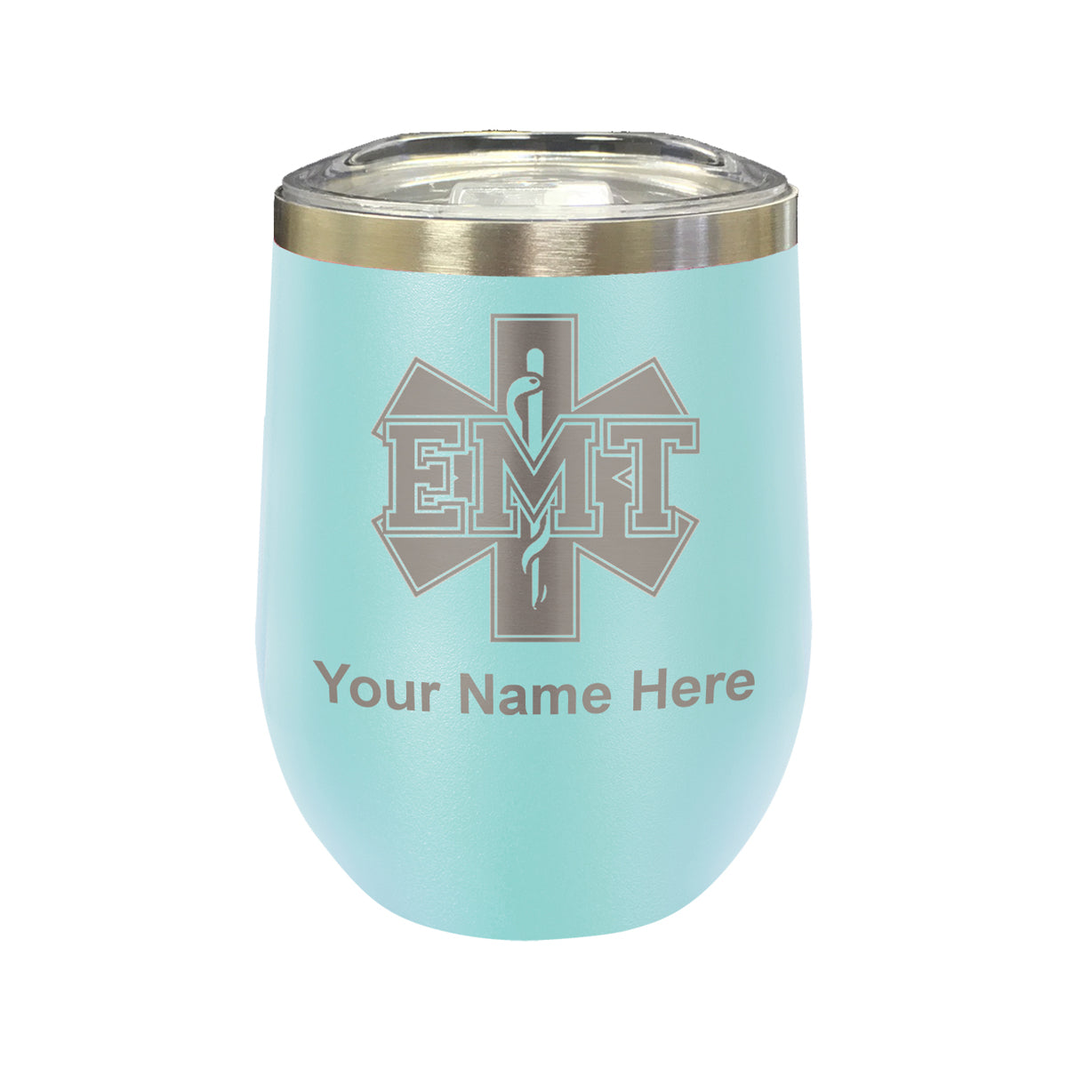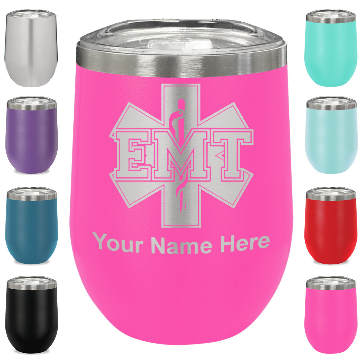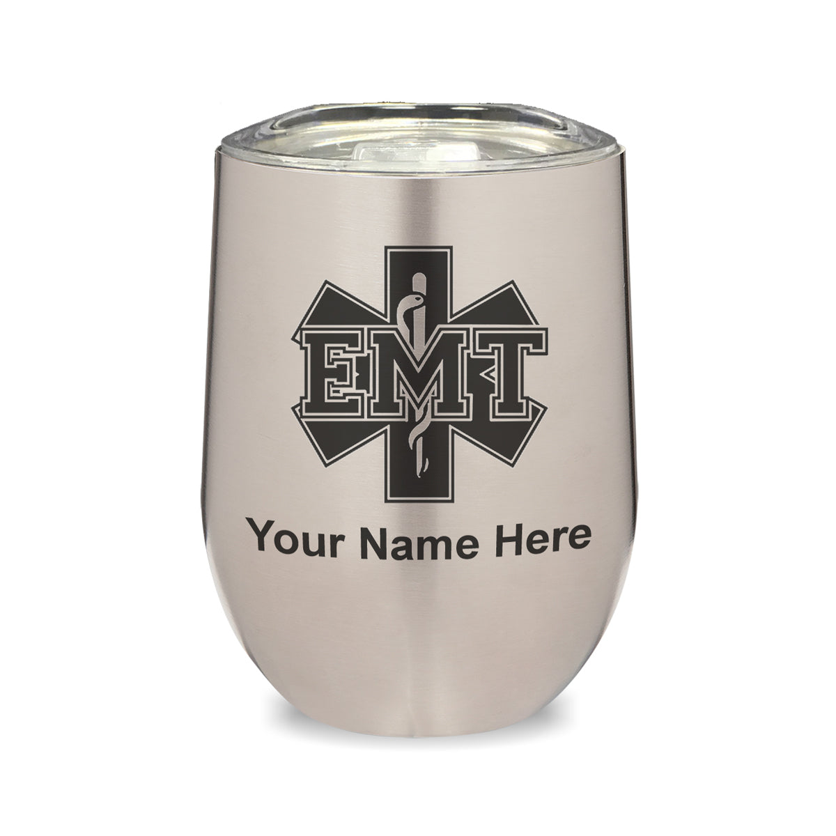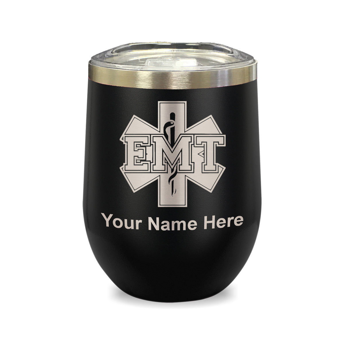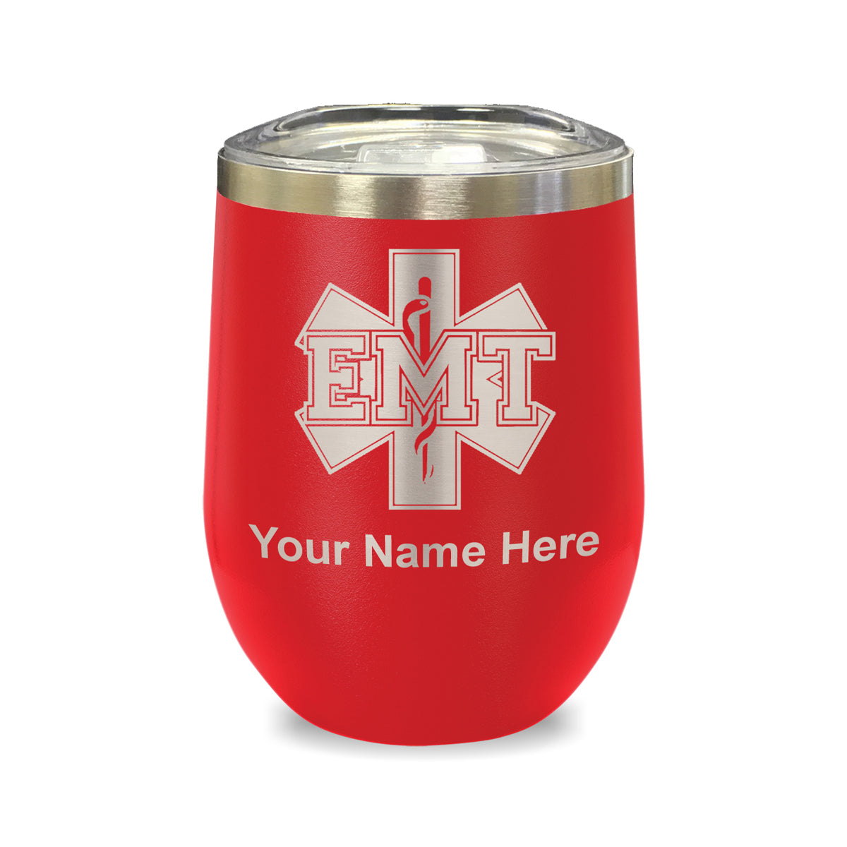 LaserGram Double Wall Stainless Steel Wine Glass, EMT Emergency Medical Technician, Personalized Engraving Included