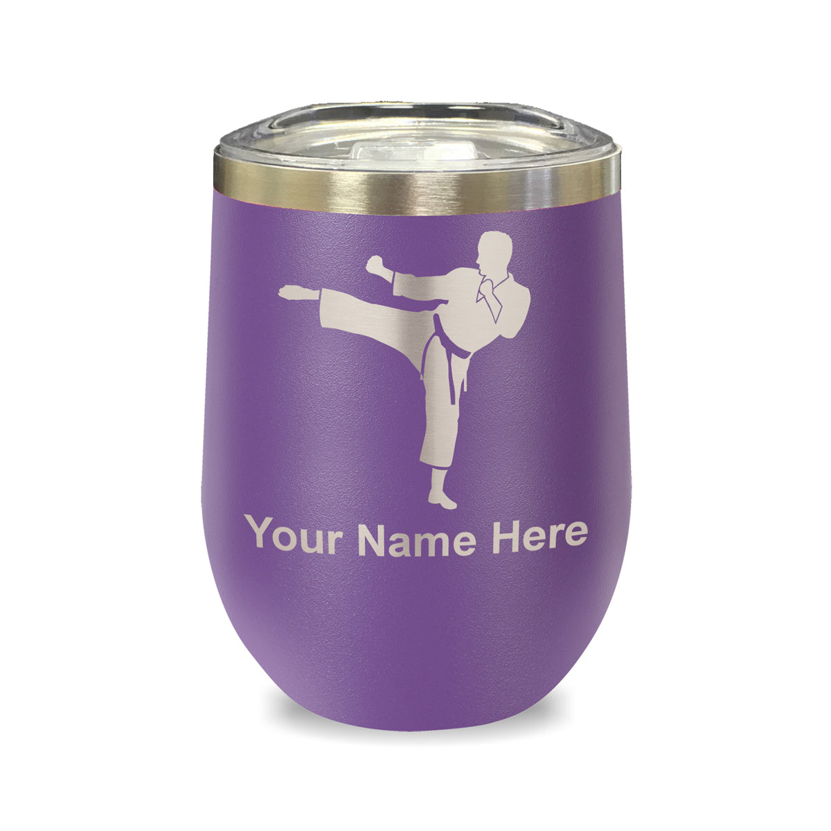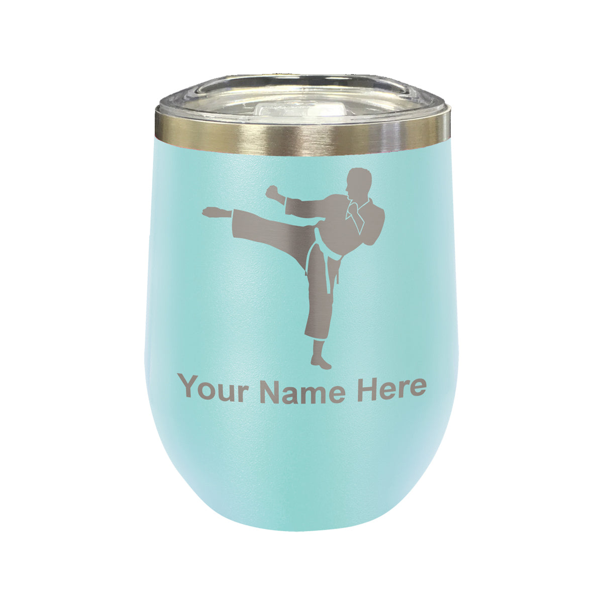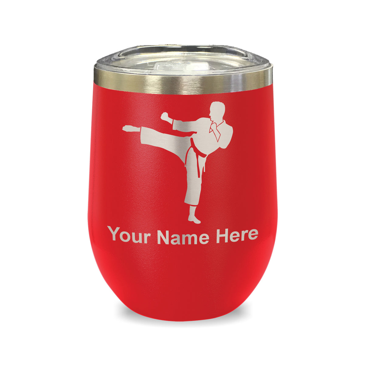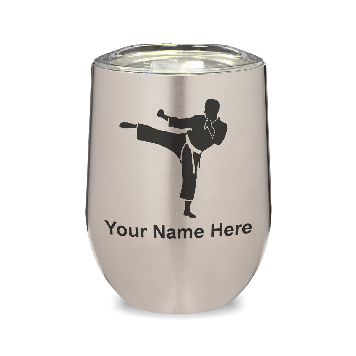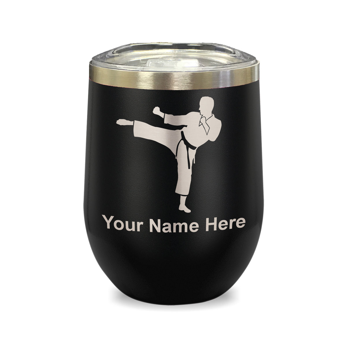 LaserGram Double Wall Stainless Steel Wine Glass, Karate Man, Personalized Engraving Included