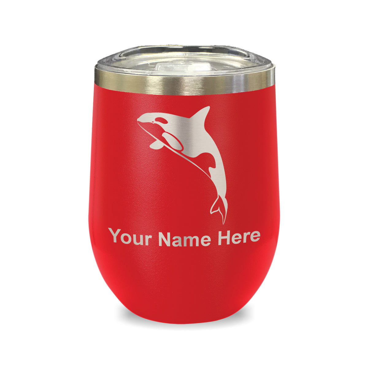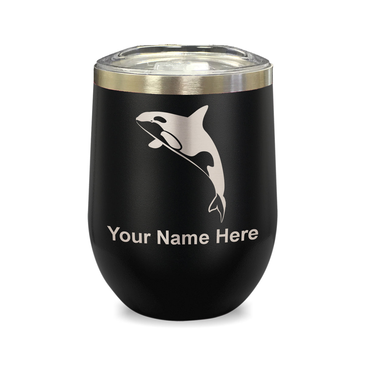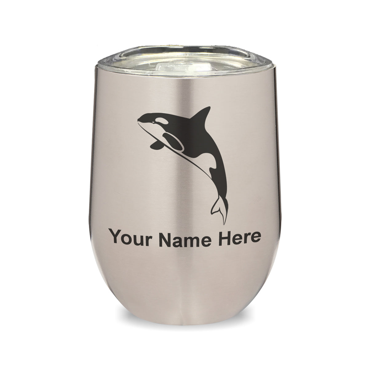 LaserGram Double Wall Stainless Steel Wine Glass, Killer Whale, Personalized Engraving Included