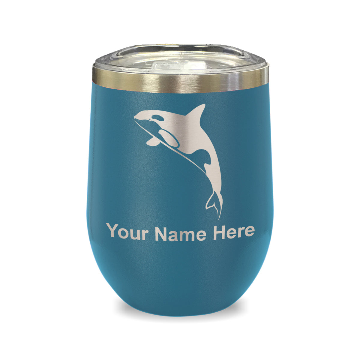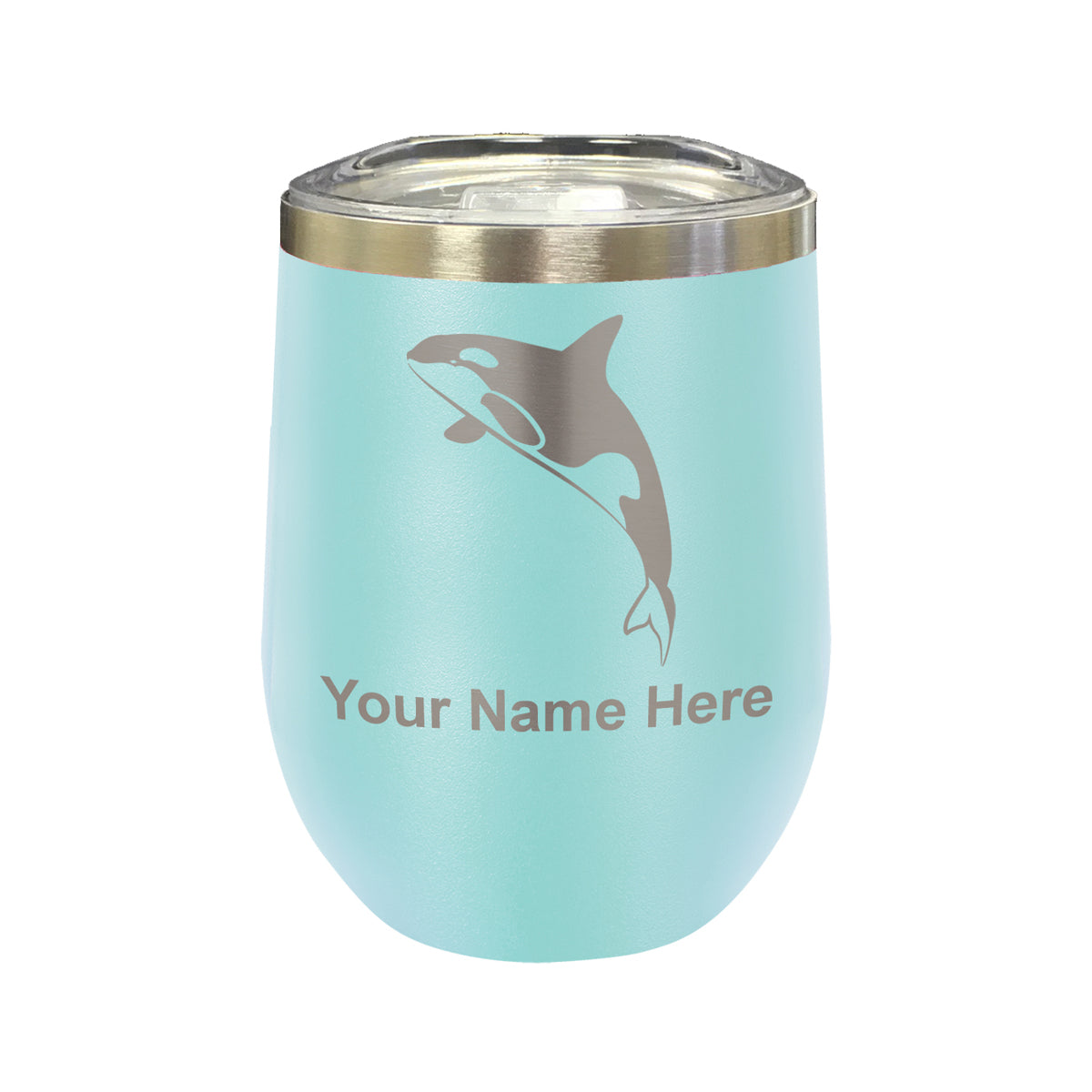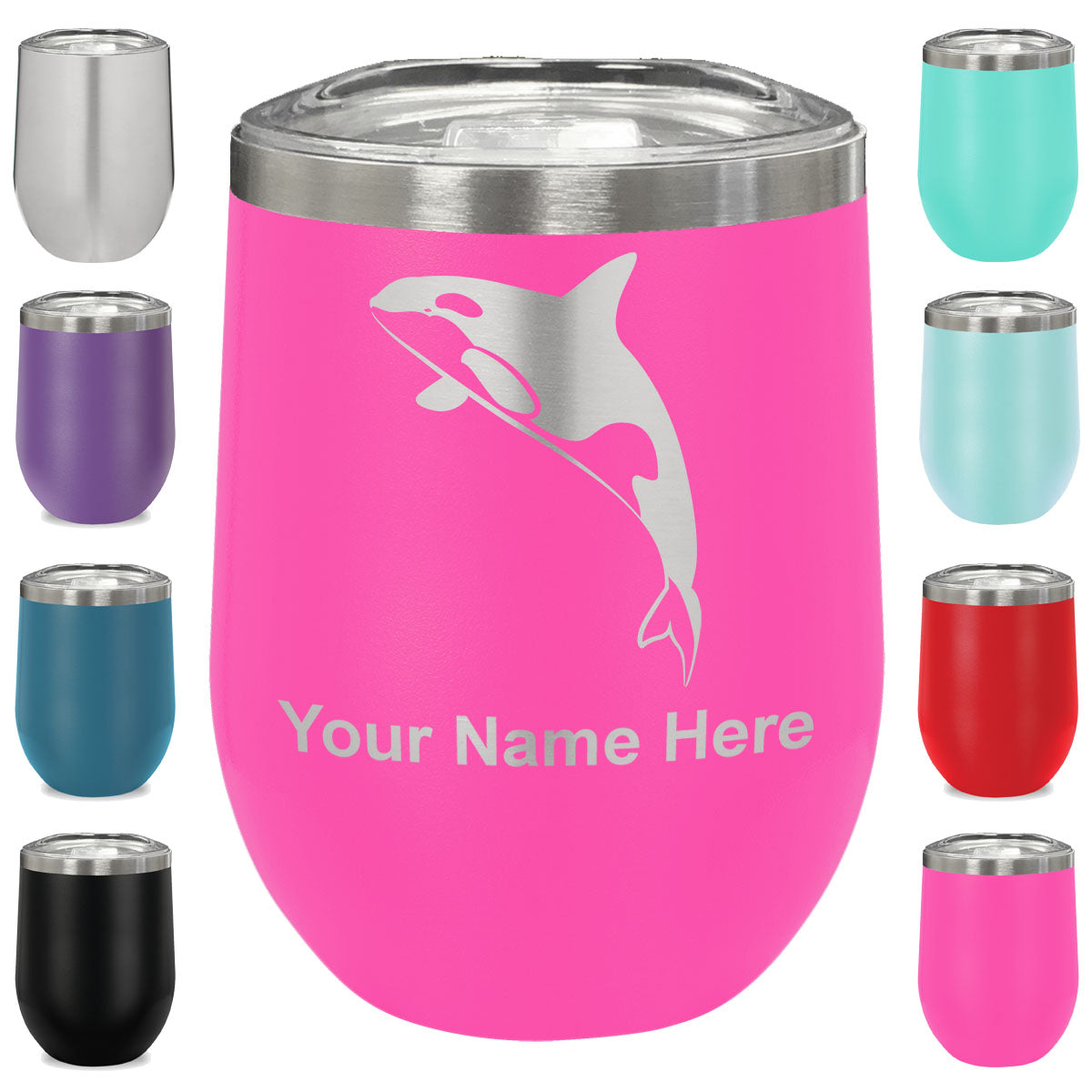 LaserGram Double Wall Stainless Steel Wine Glass, Killer Whale, Personalized Engraving Included