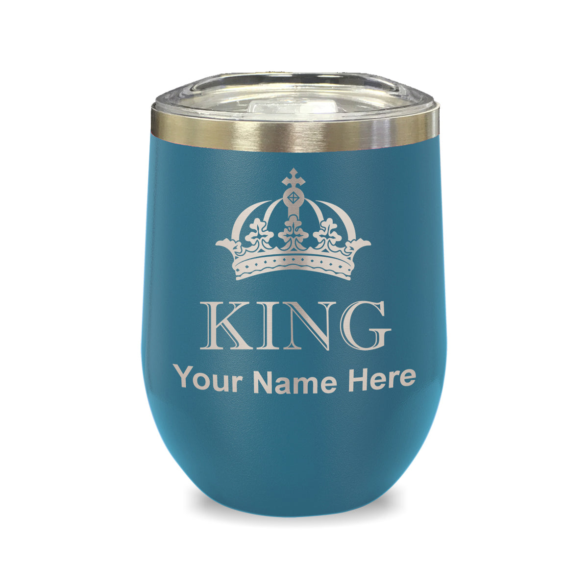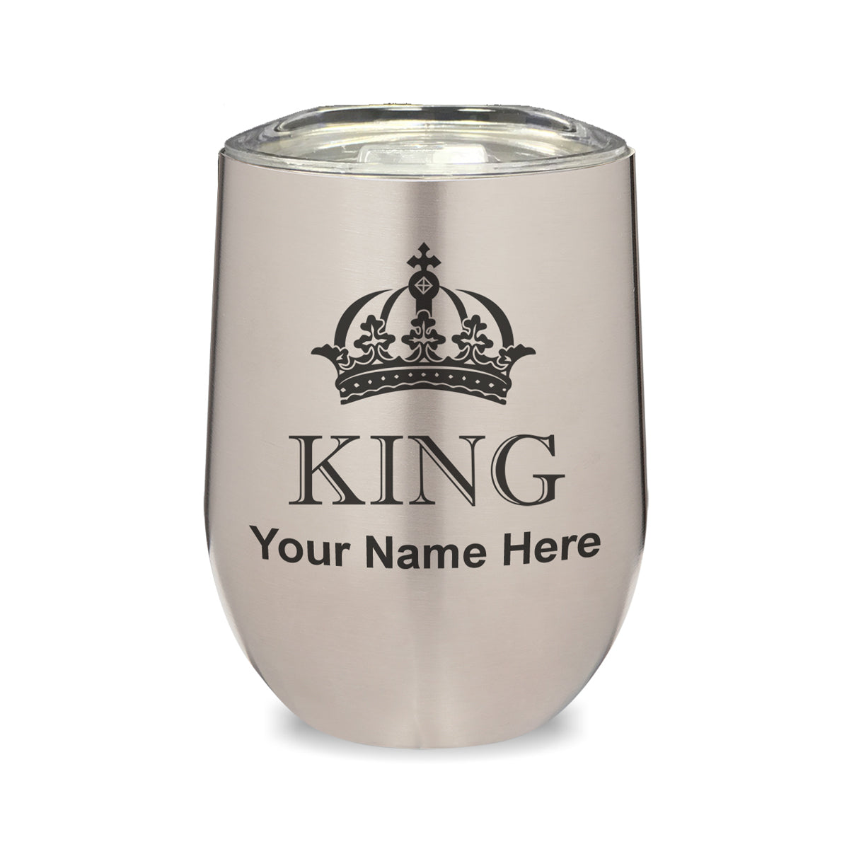 LaserGram Double Wall Stainless Steel Wine Glass, King Crown, Personalized Engraving Included