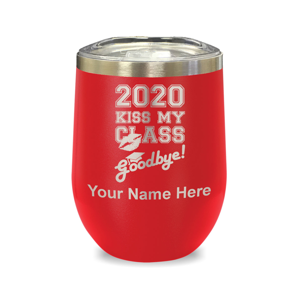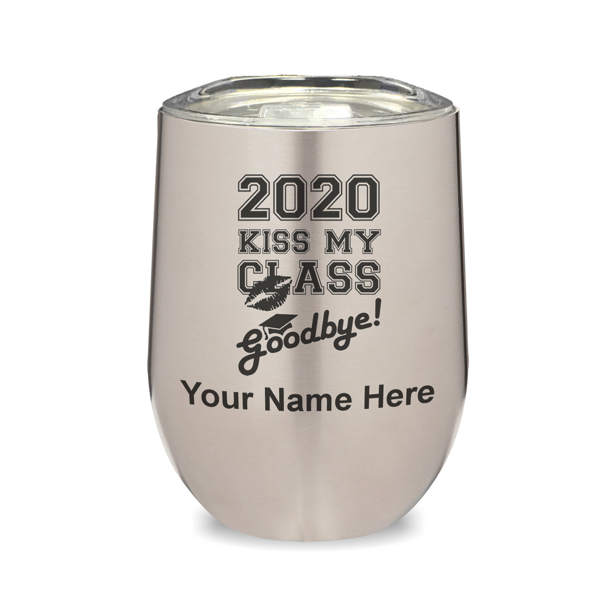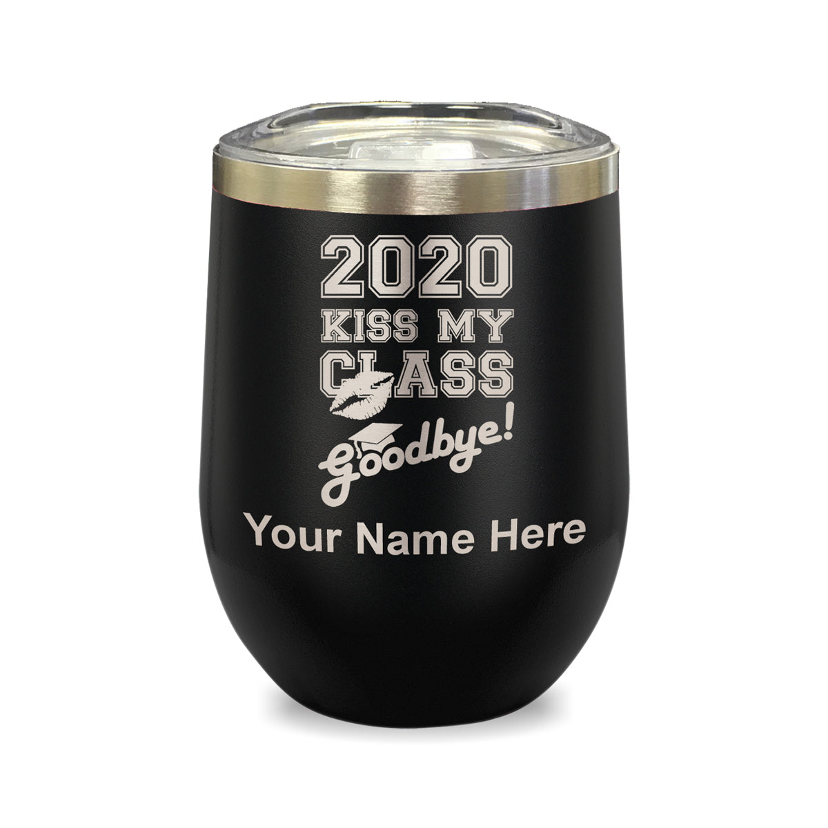 LaserGram Double Wall Stainless Steel Wine Glass, Kiss My Class Goodbye 2020, 2021, 2022, 2023, 2024, 2025, Personalized Engraving Included