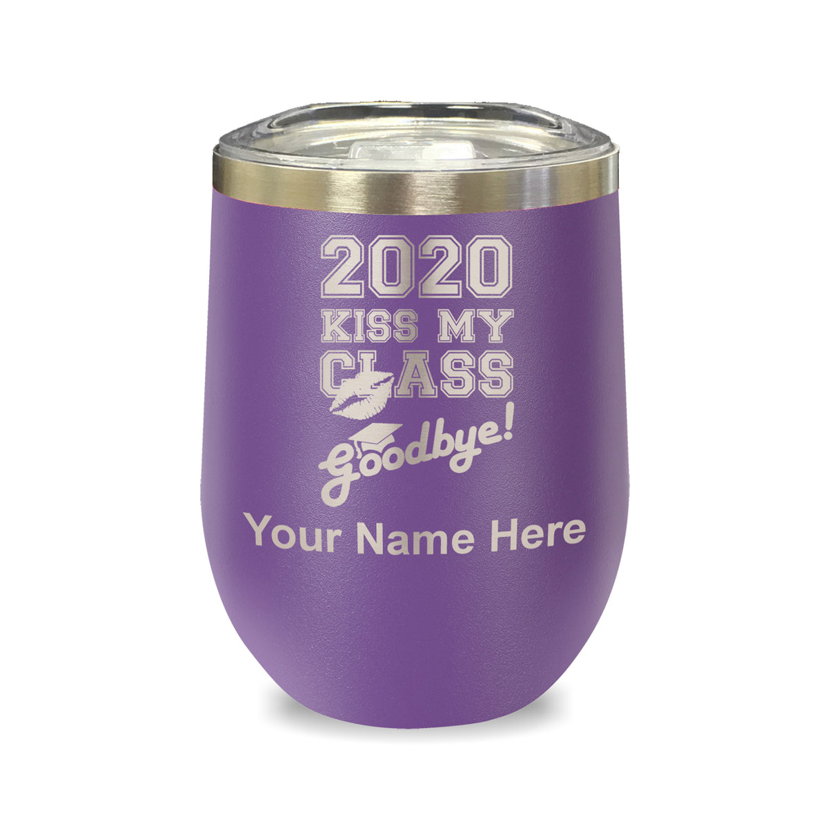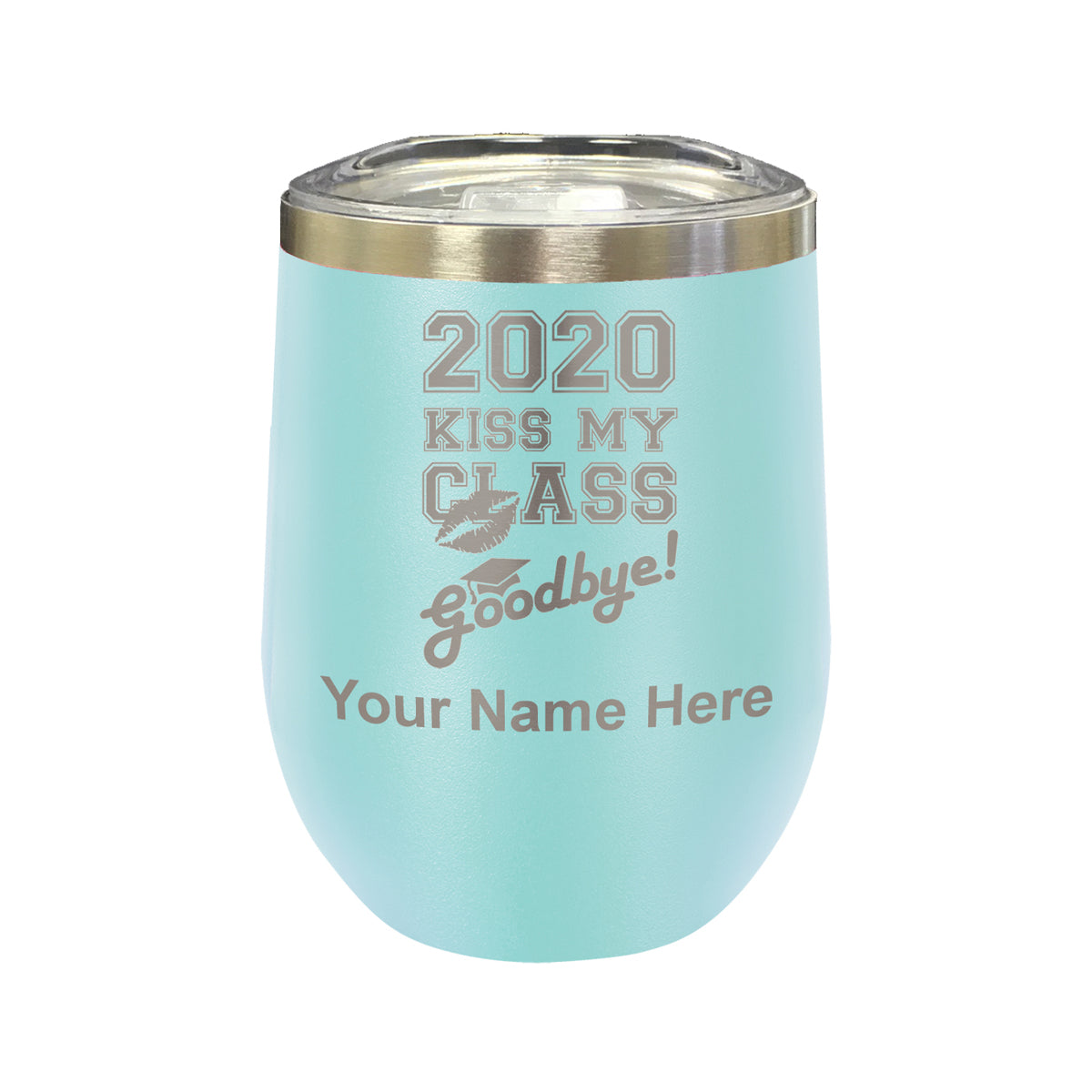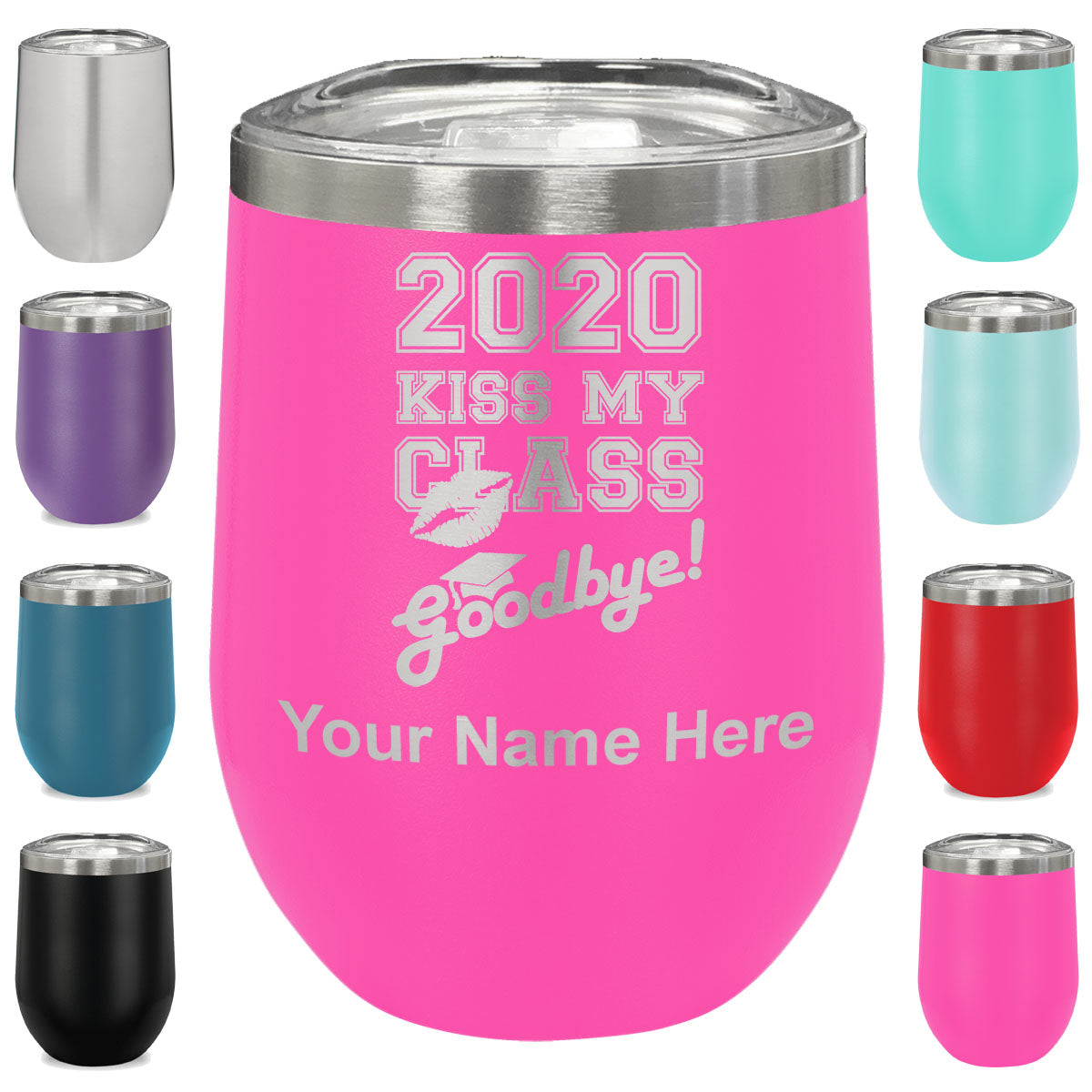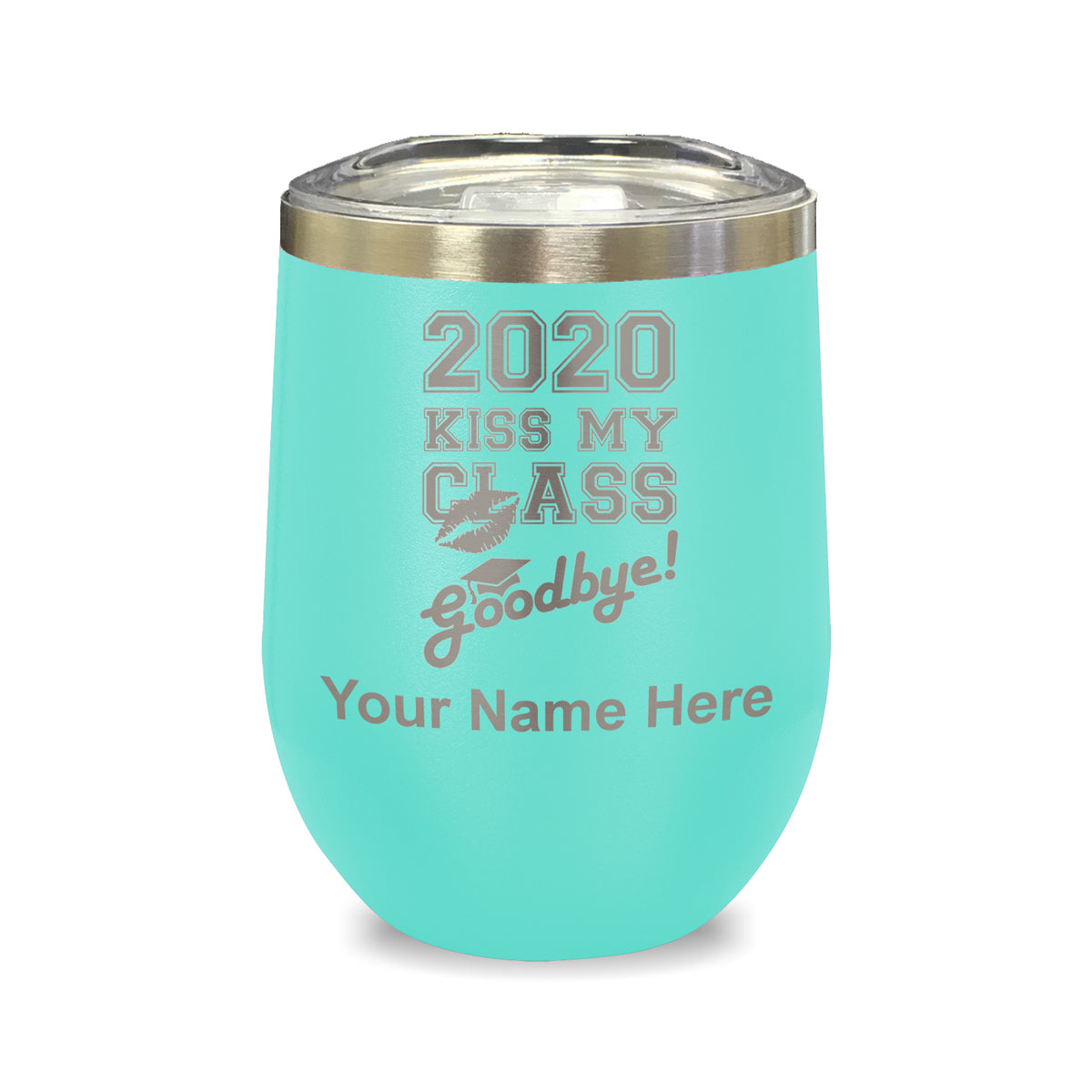LaserGram Double Wall Stainless Steel Wine Glass, Kiss My Class Goodbye 2020, 2021, 2022, 2023, 2024, 2025, Personalized Engraving Included