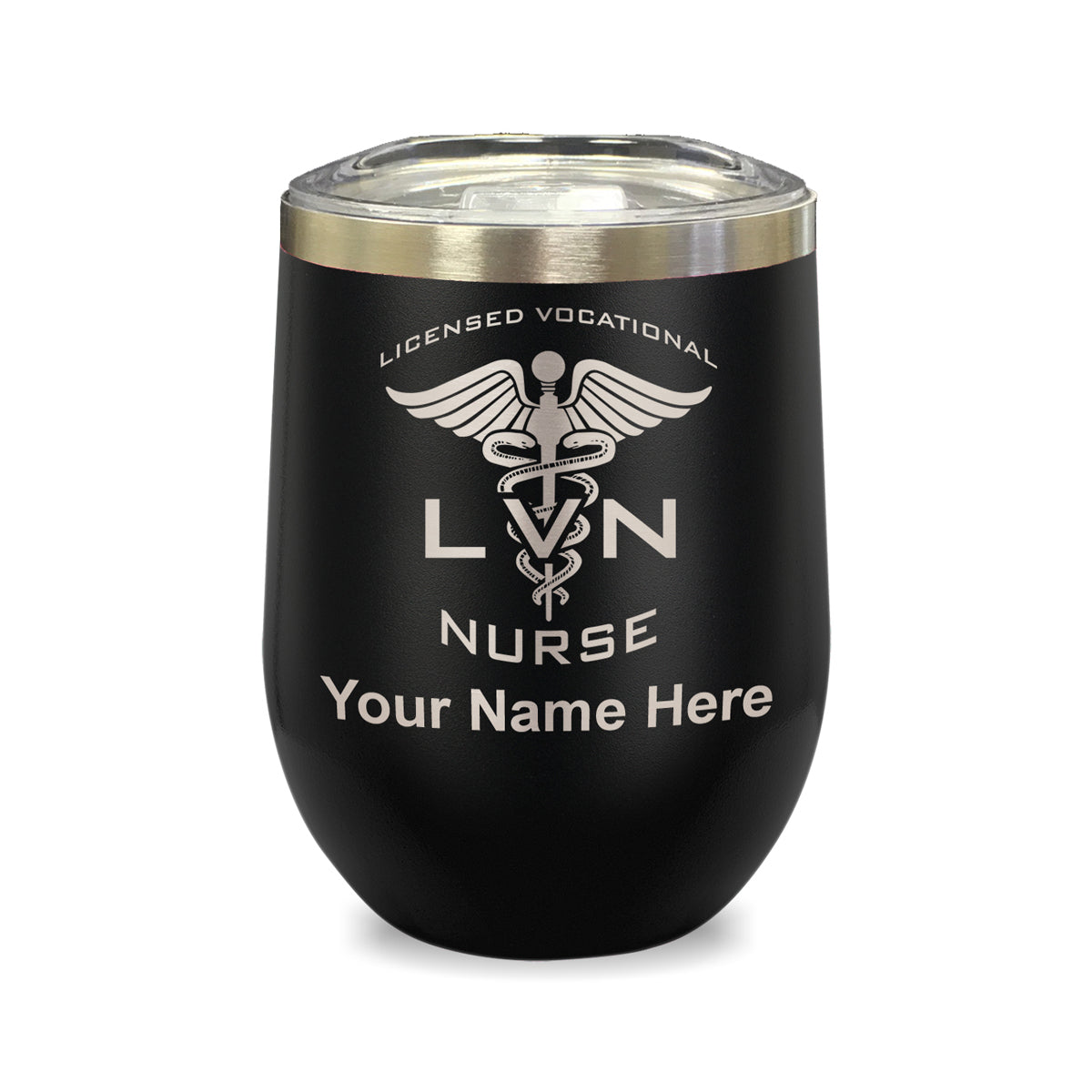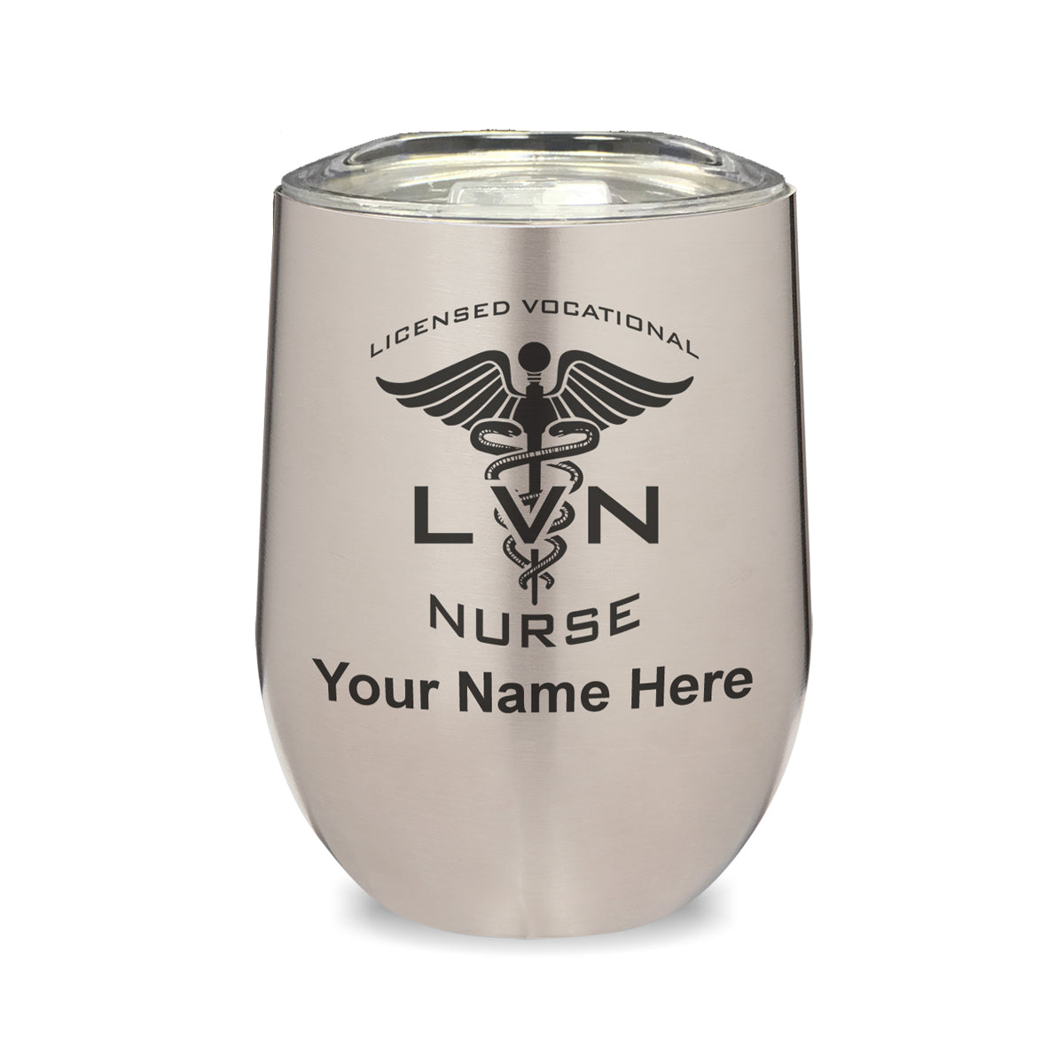LaserGram Double Wall Stainless Steel Wine Glass, LVN Licensed Vocational Nurse, Personalized Engraving Included