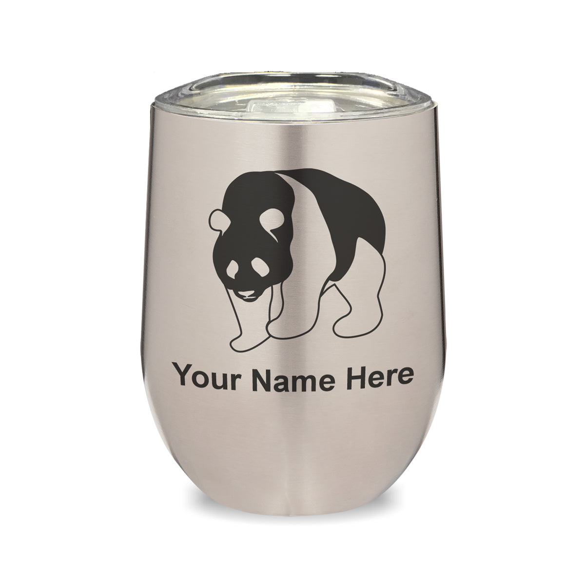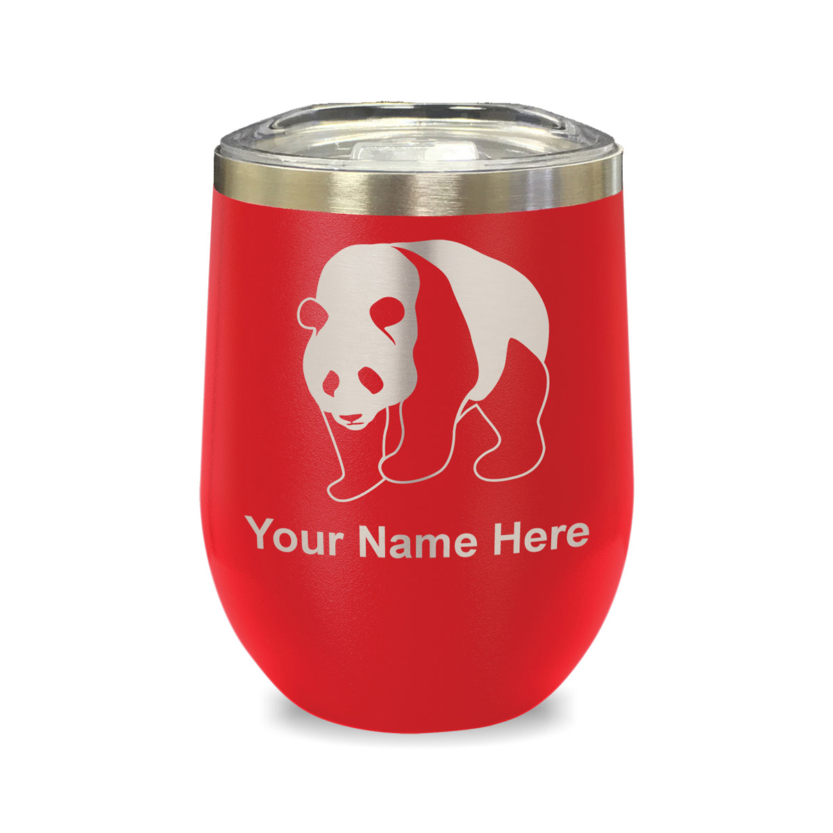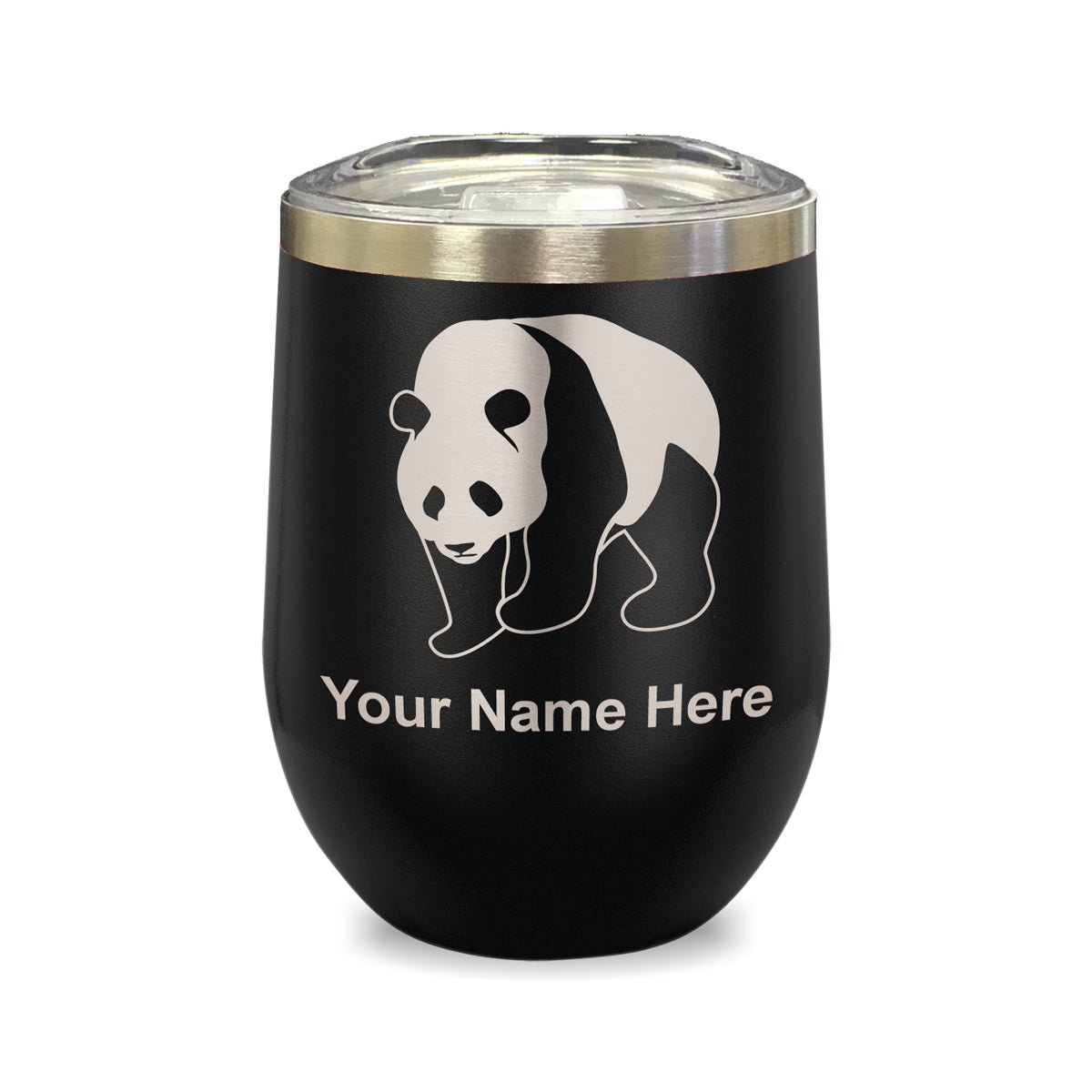 LaserGram Double Wall Stainless Steel Wine Glass, Panda Bear, Personalized Engraving Included