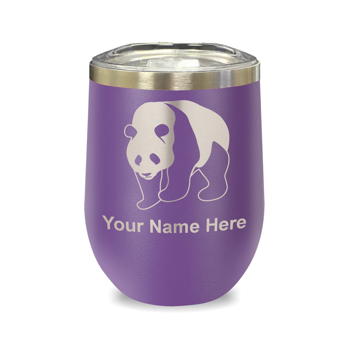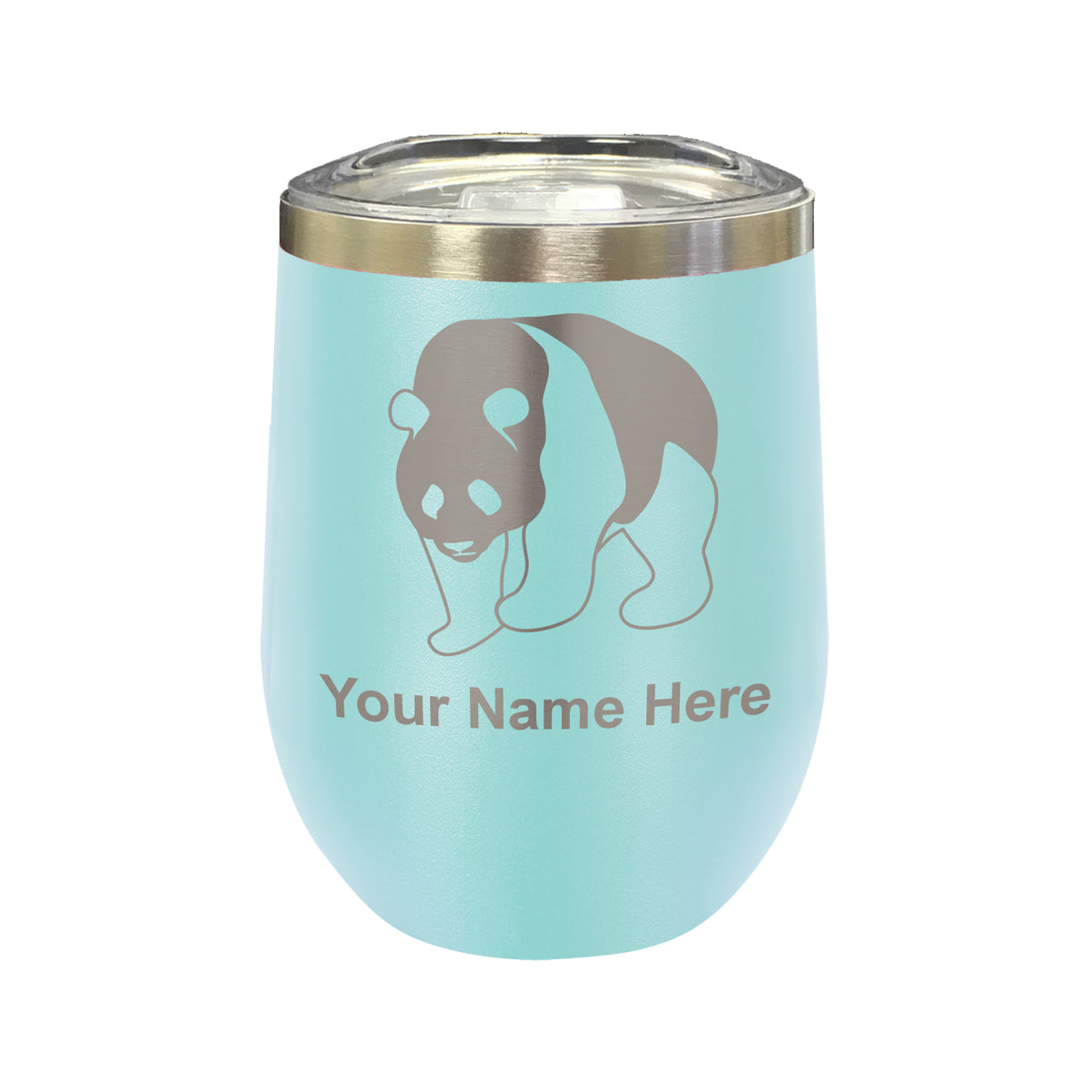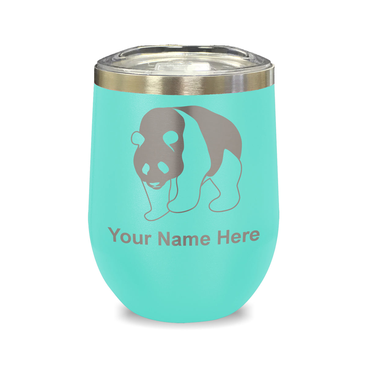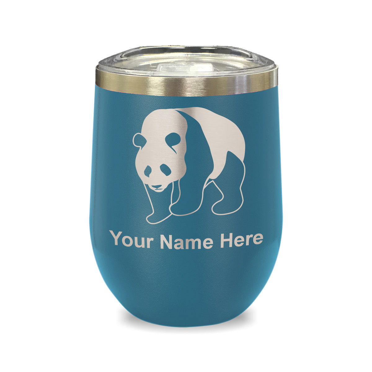 LaserGram Double Wall Stainless Steel Wine Glass, Panda Bear, Personalized Engraving Included
