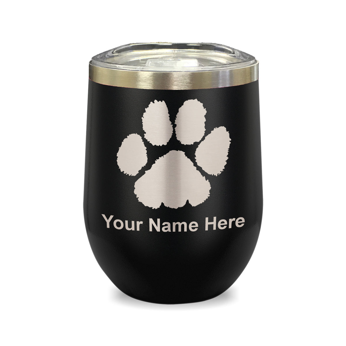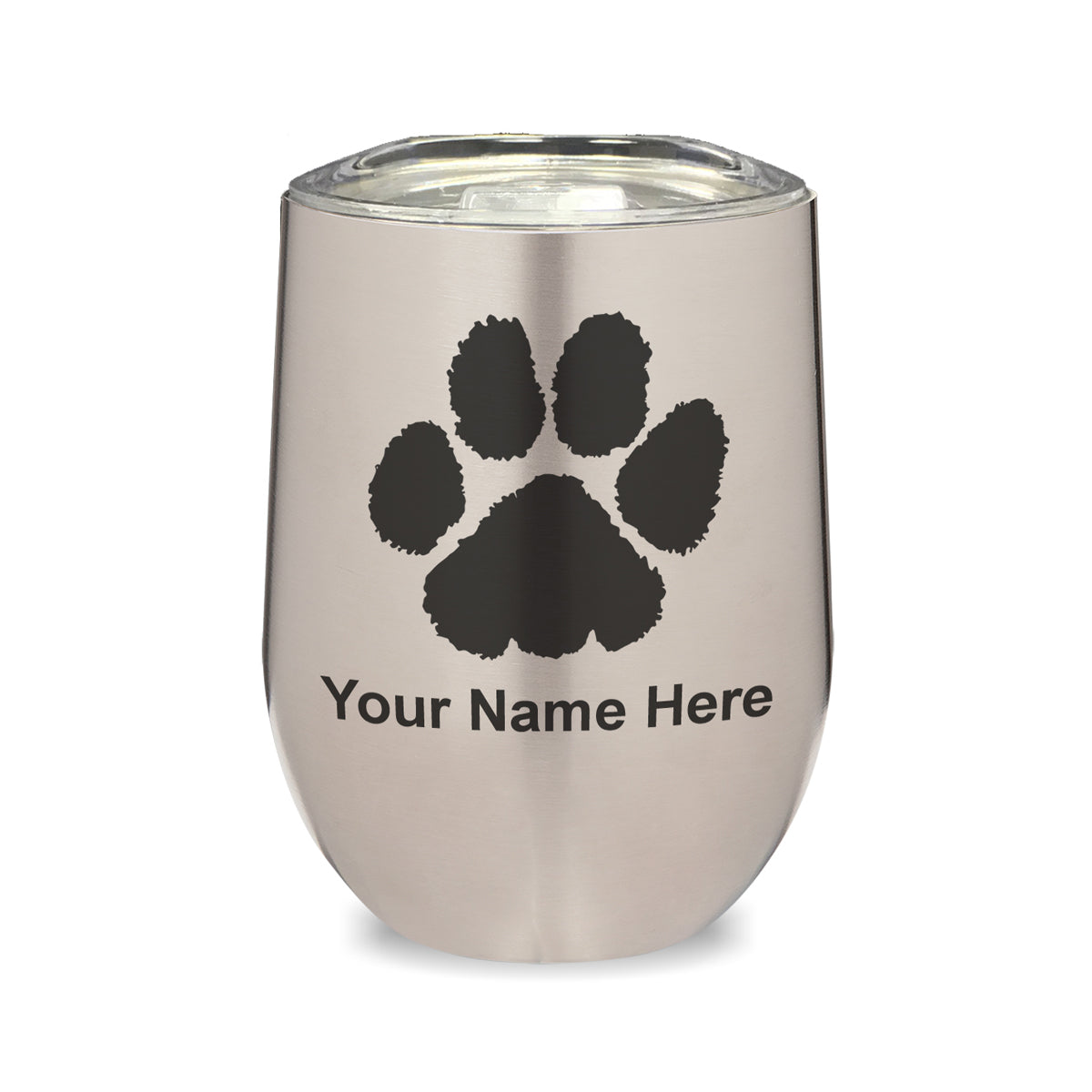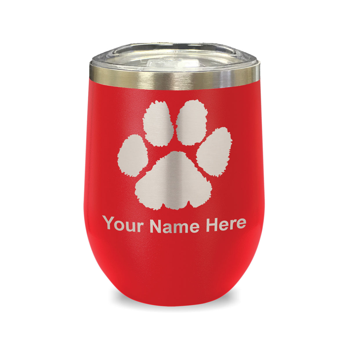 LaserGram Double Wall Stainless Steel Wine Glass, Paw Print, Personalized Engraving Included