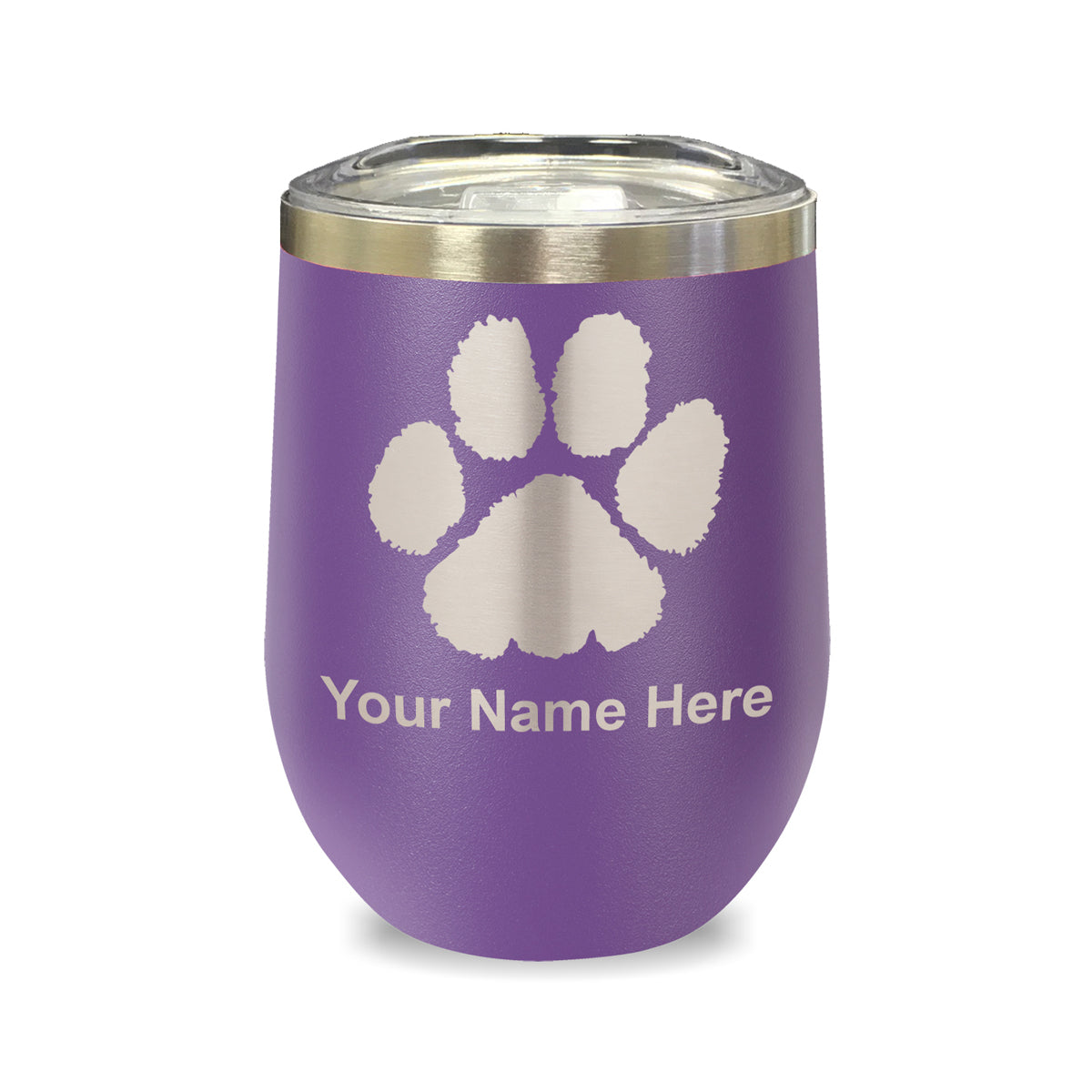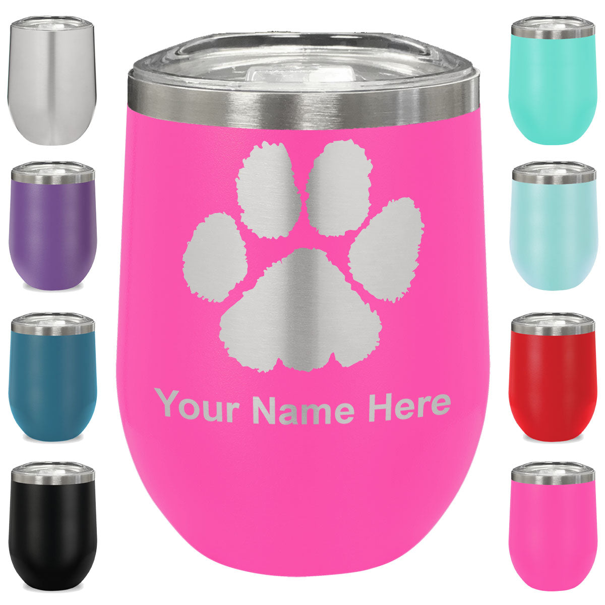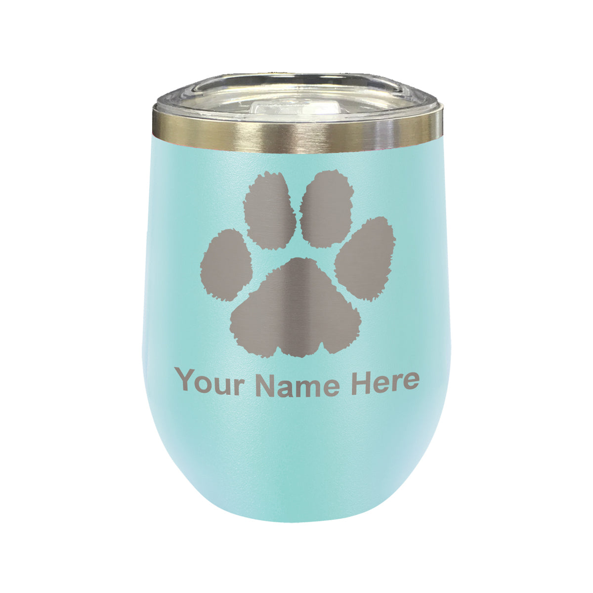 LaserGram Double Wall Stainless Steel Wine Glass, Paw Print, Personalized Engraving Included