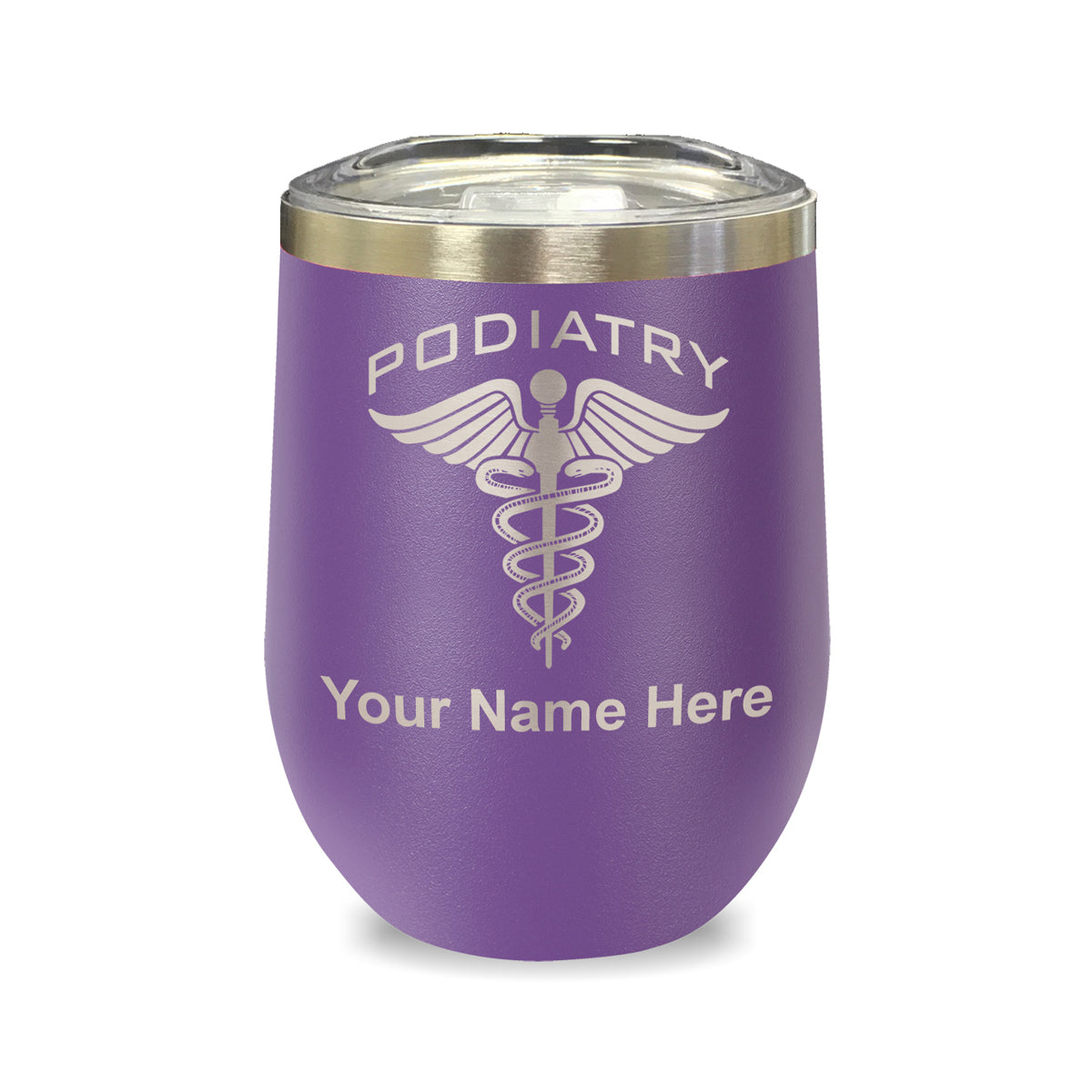 LaserGram Double Wall Stainless Steel Wine Glass, Podiatry, Personalized Engraving Included