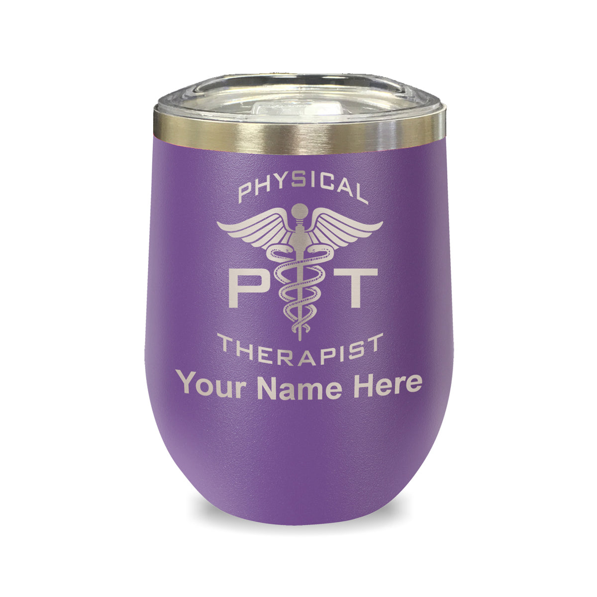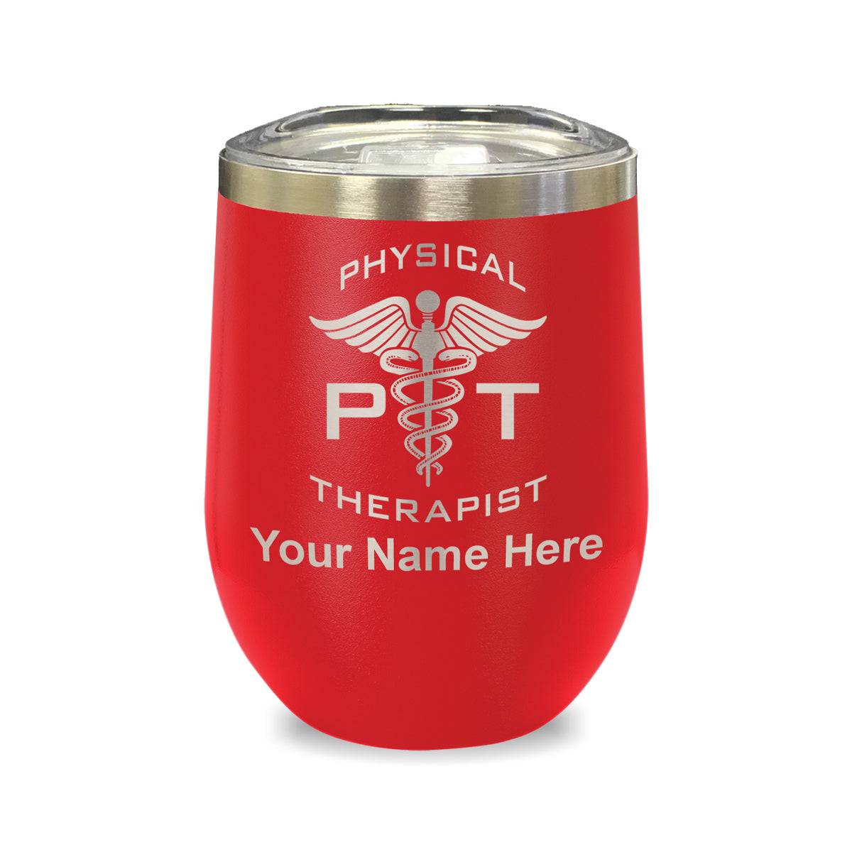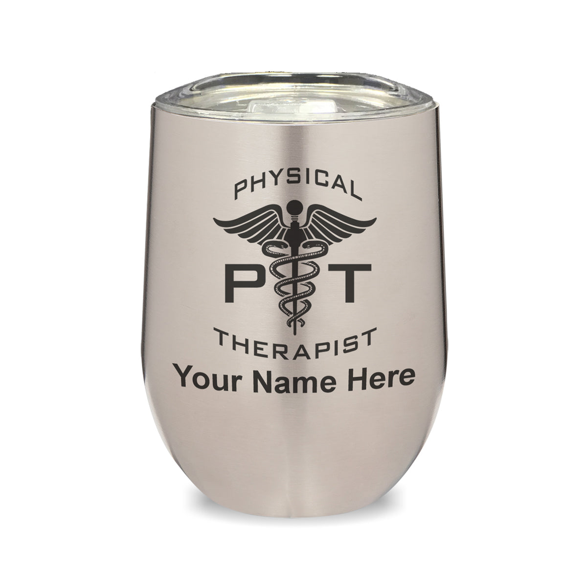 LaserGram Double Wall Stainless Steel Wine Glass, PT Physical Therapist, Personalized Engraving Included