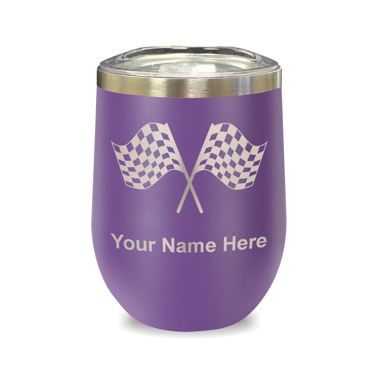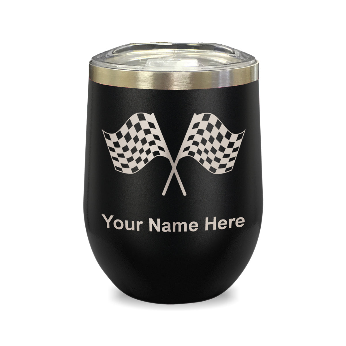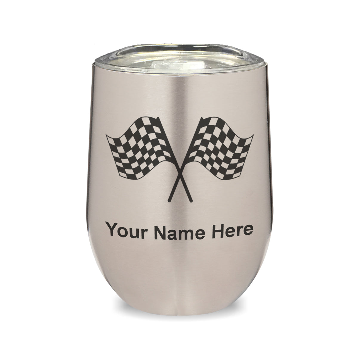 LaserGram Double Wall Stainless Steel Wine Glass, Racing Flags, Personalized Engraving Included