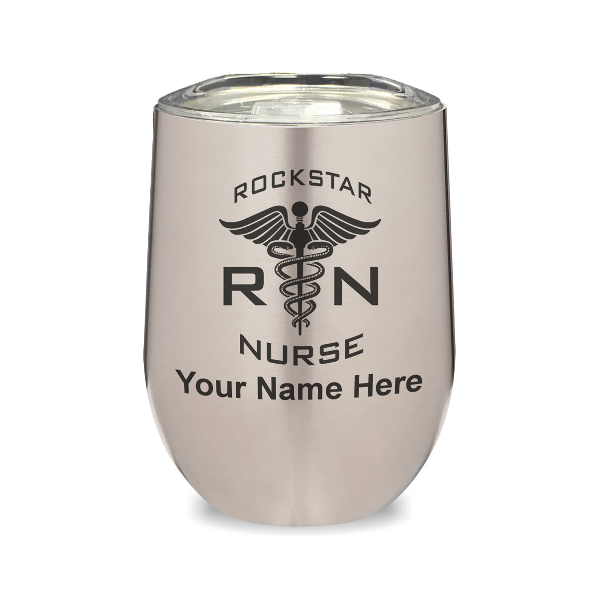 LaserGram Double Wall Stainless Steel Wine Glass, RN Rockstar Nurse, Personalized Engraving Included