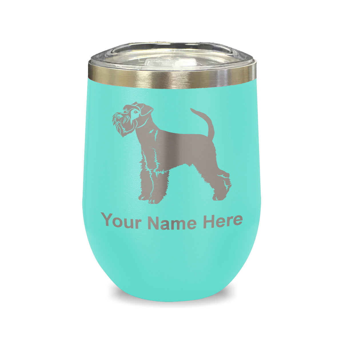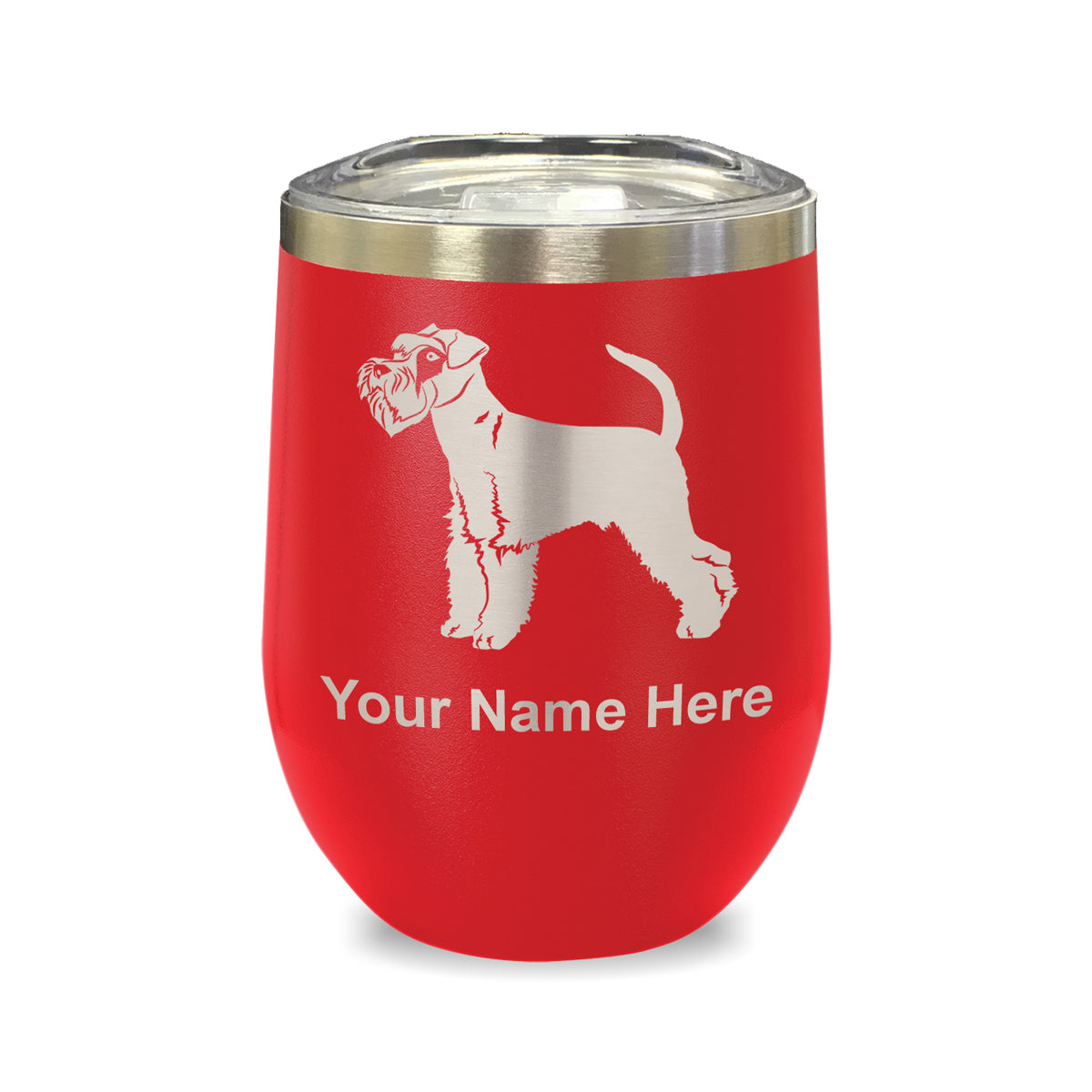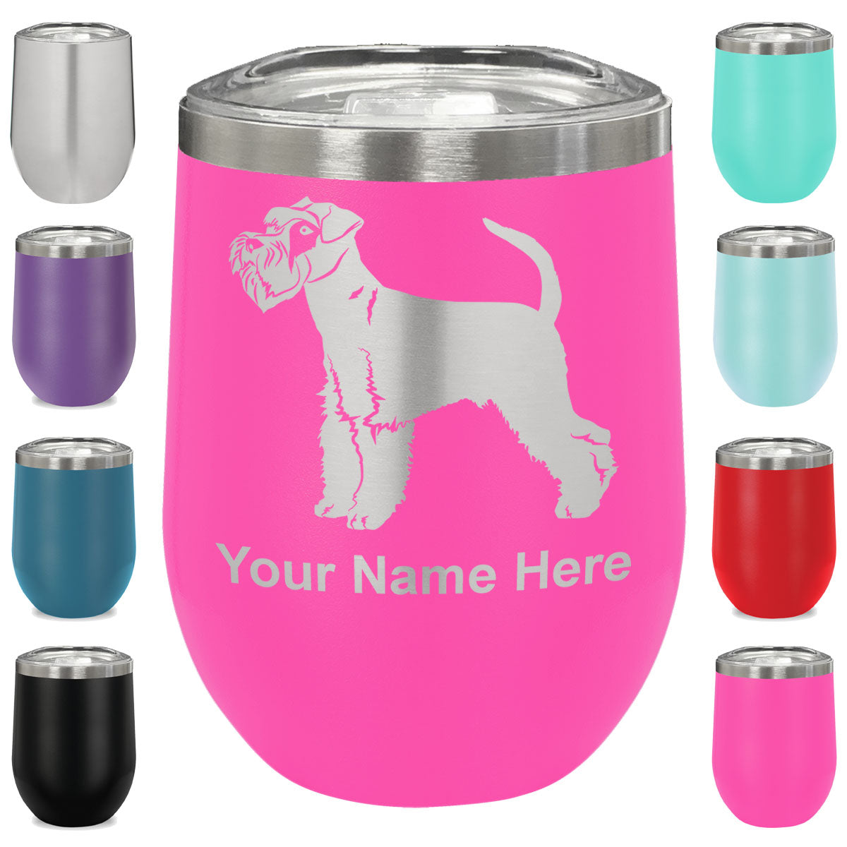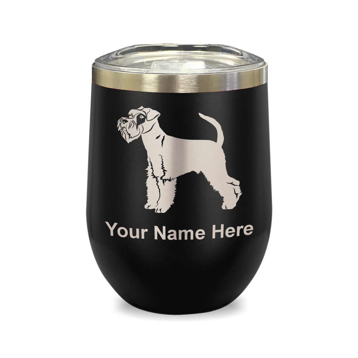 LaserGram Double Wall Stainless Steel Wine Glass, Schnauzer Dog, Personalized Engraving Included