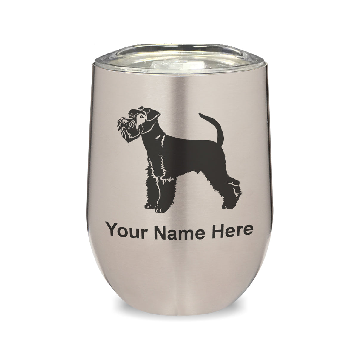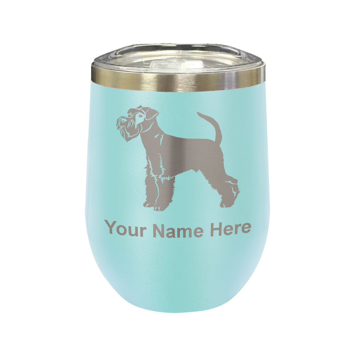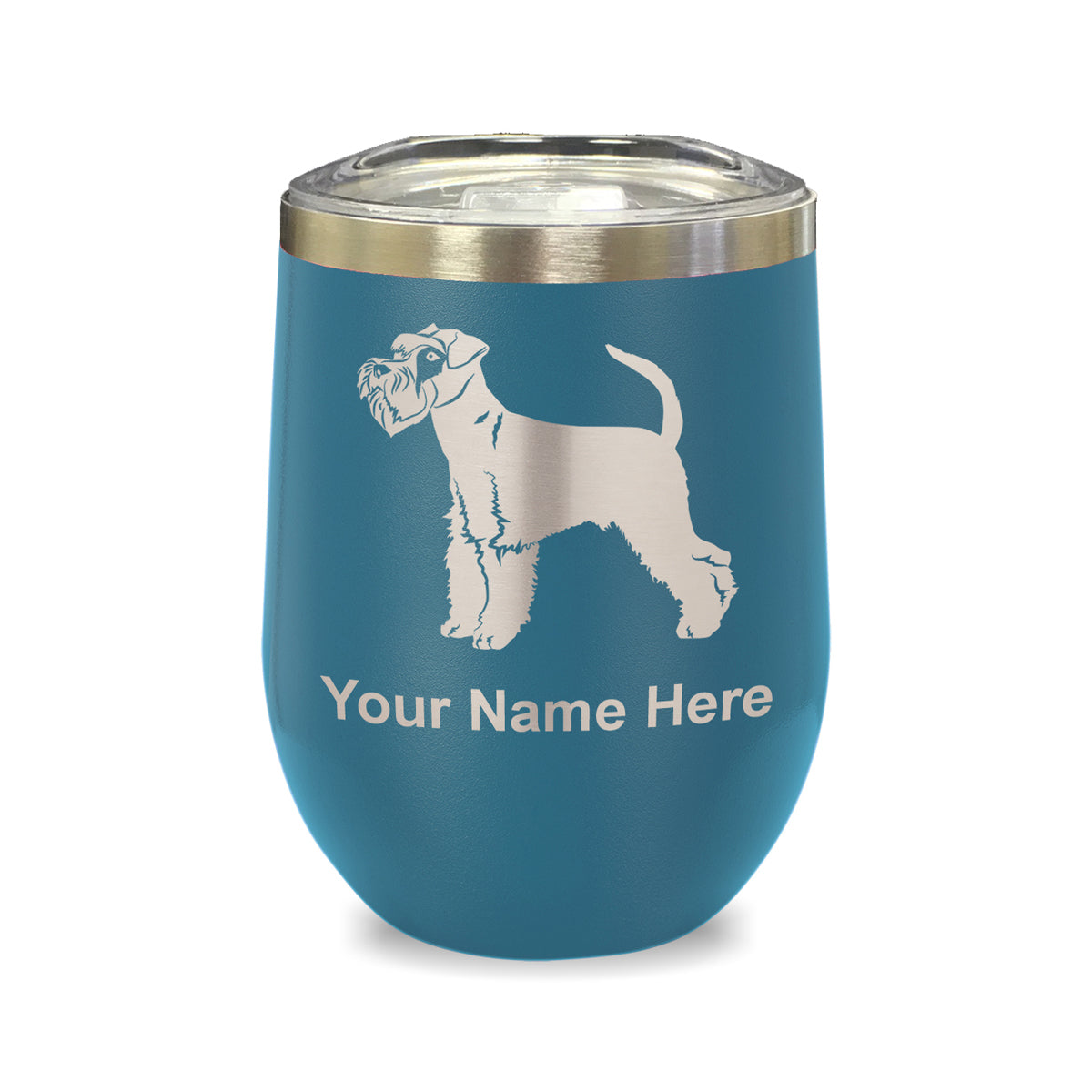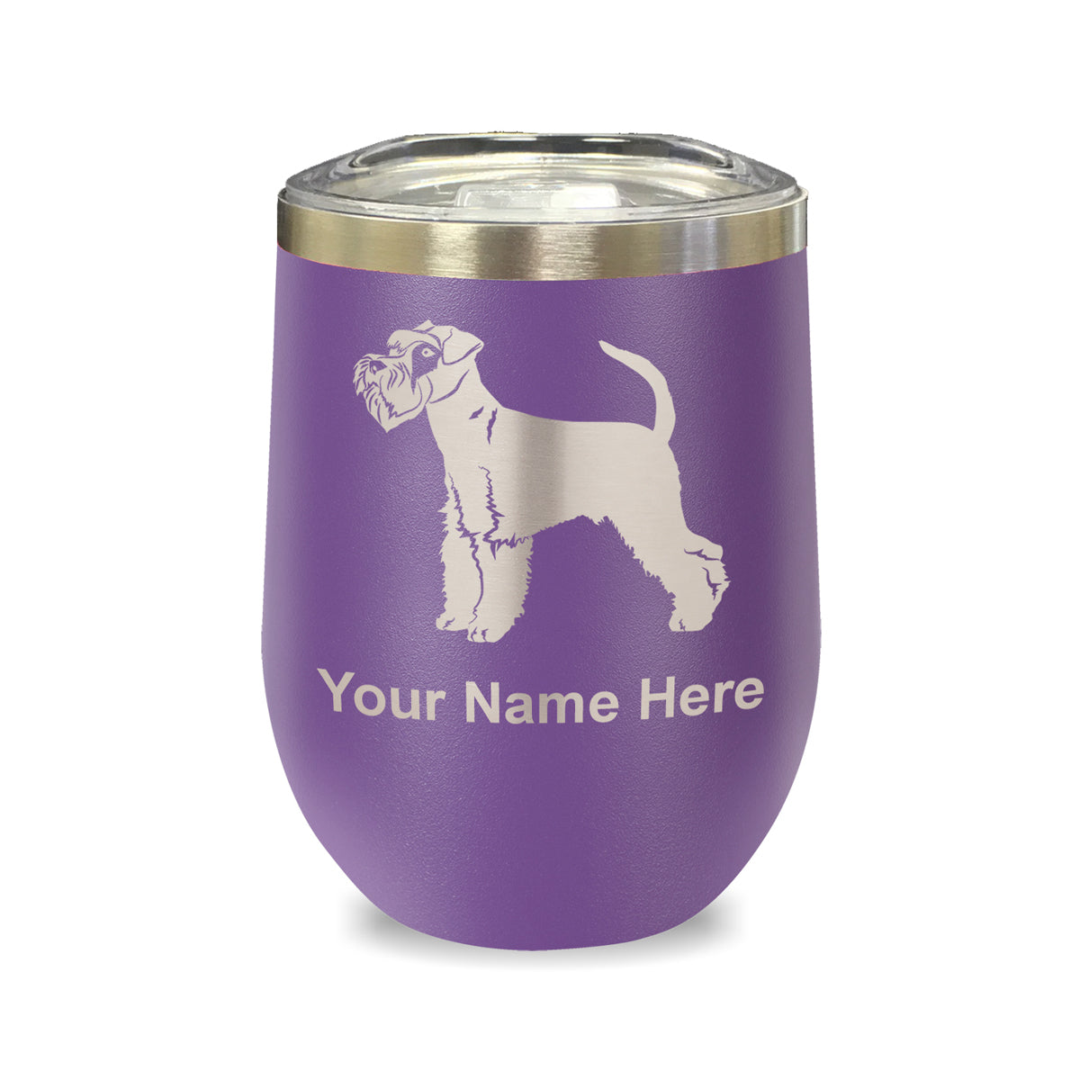 LaserGram Double Wall Stainless Steel Wine Glass, Schnauzer Dog, Personalized Engraving Included