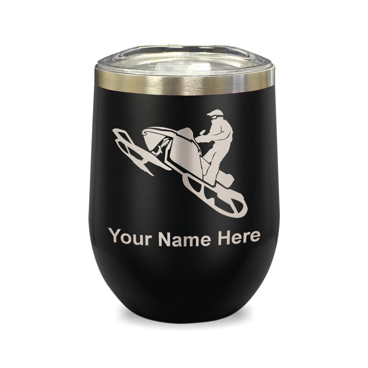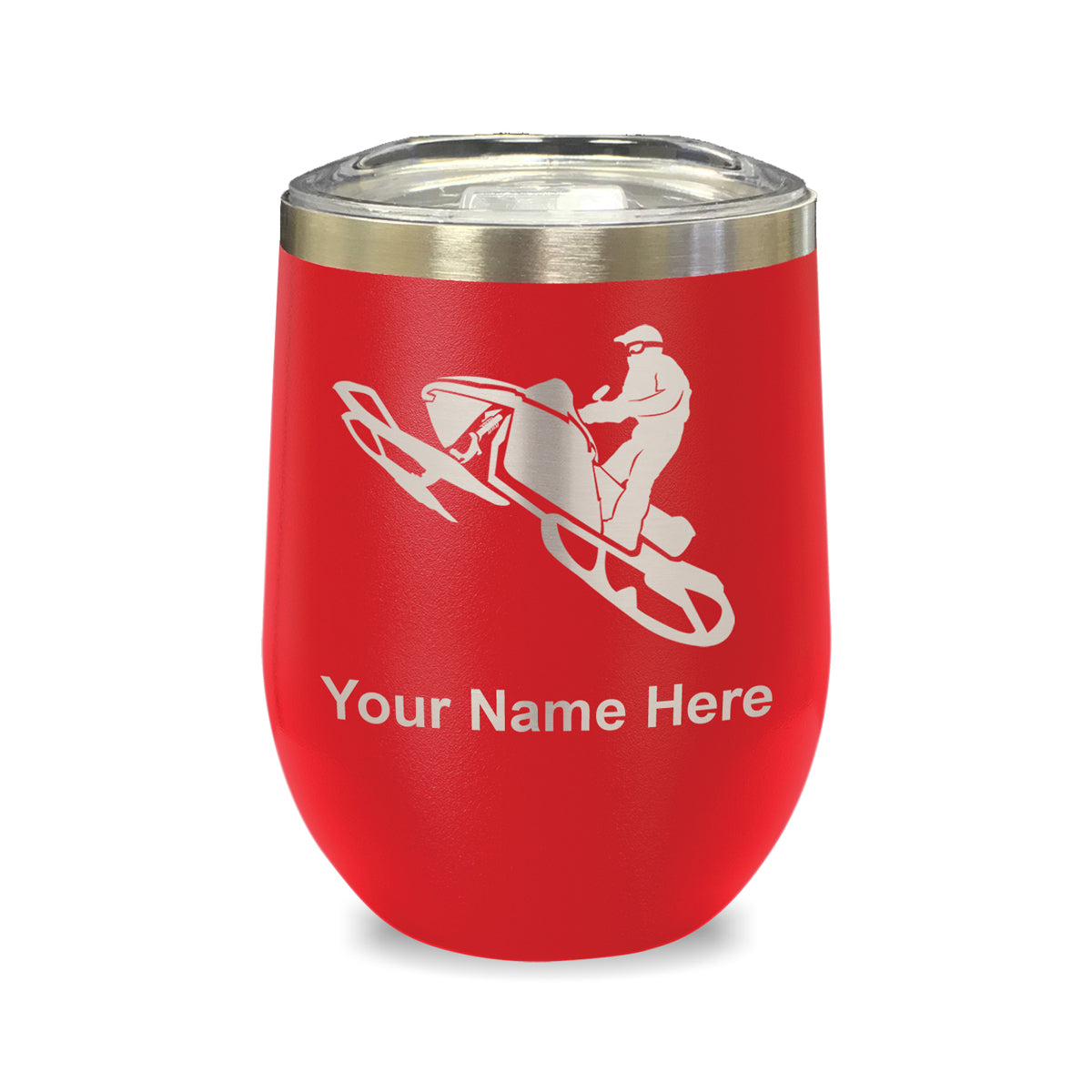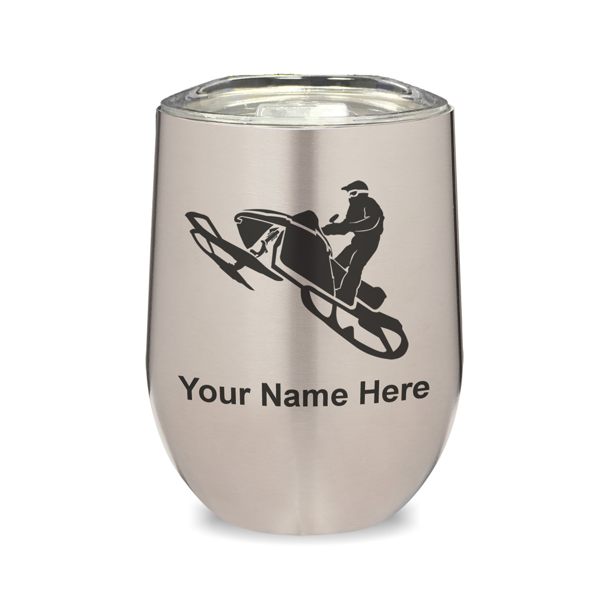 LaserGram Double Wall Stainless Steel Wine Glass, Snowmobile, Personalized Engraving Included
