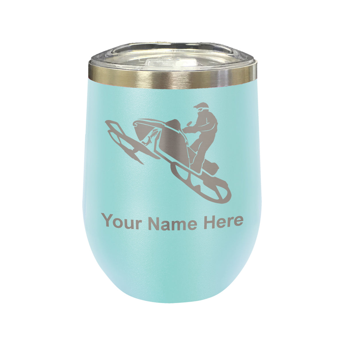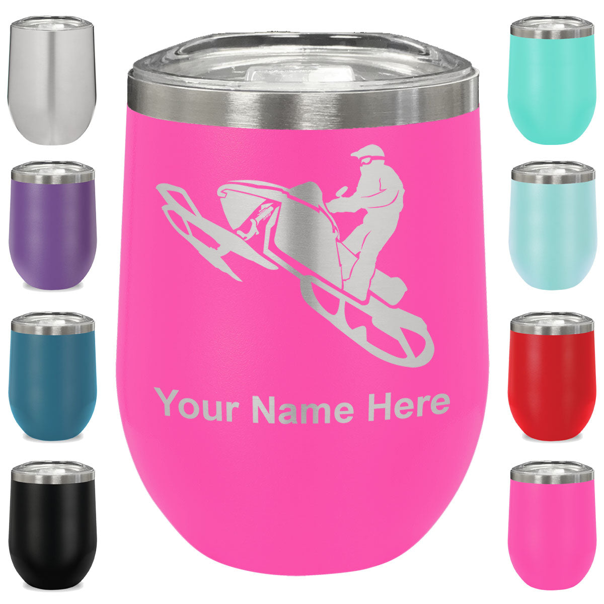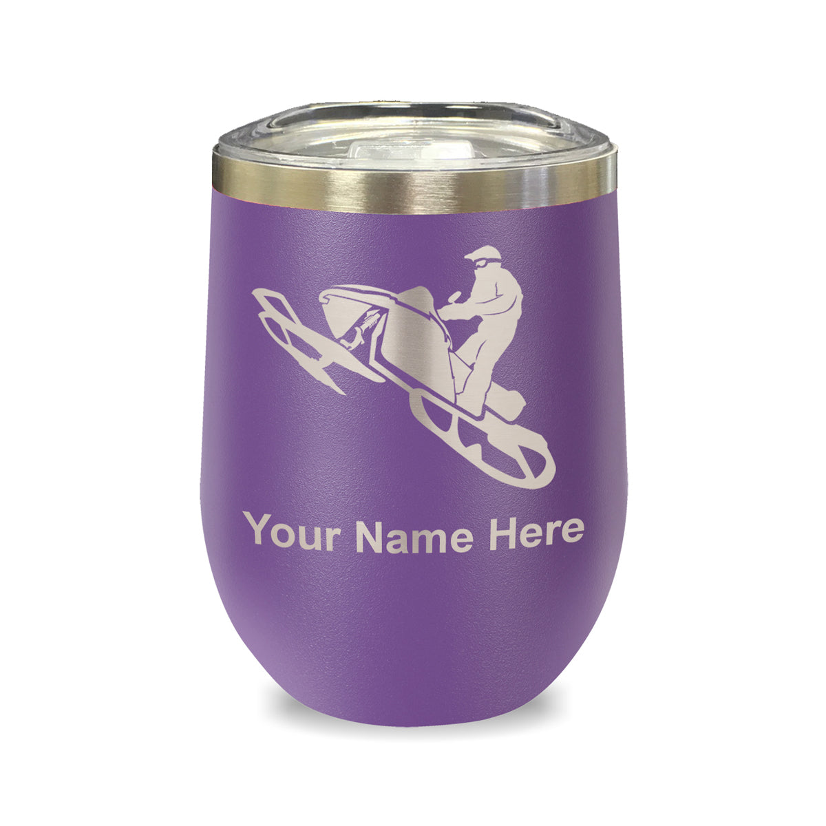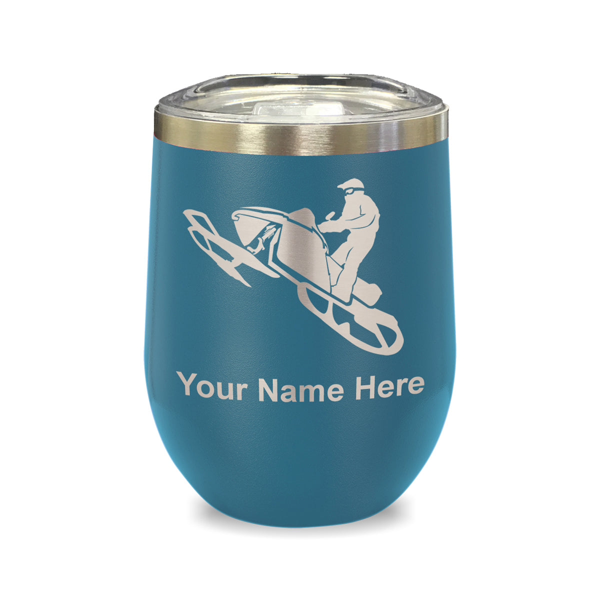 LaserGram Double Wall Stainless Steel Wine Glass, Snowmobile, Personalized Engraving Included