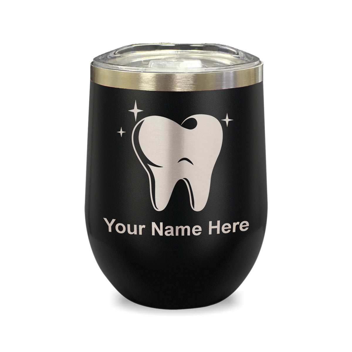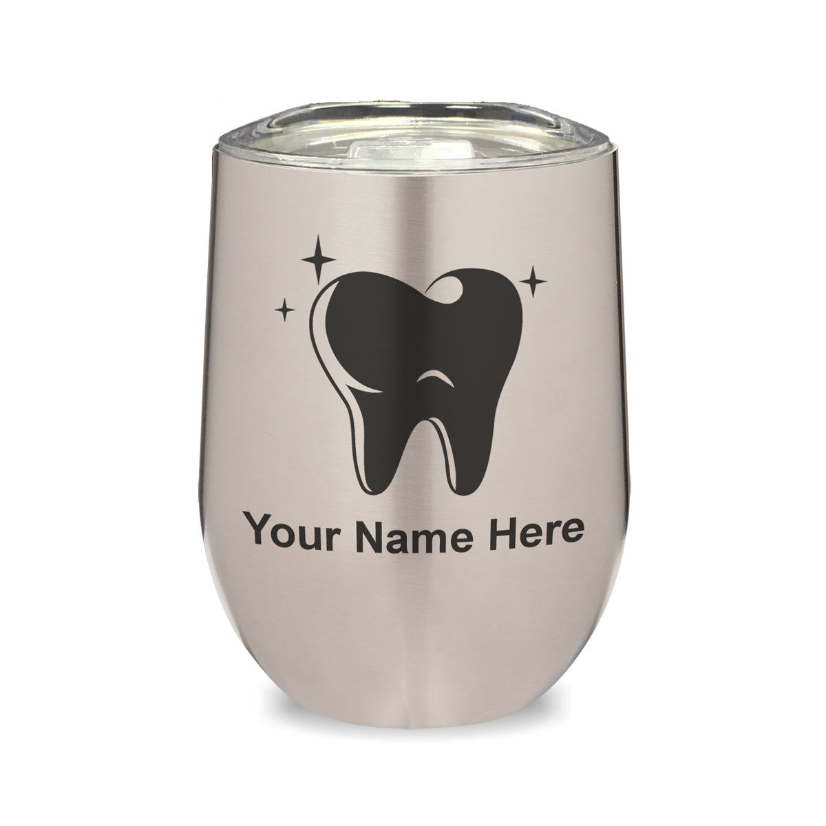 LaserGram Double Wall Stainless Steel Wine Glass, Tooth, Personalized Engraving Included