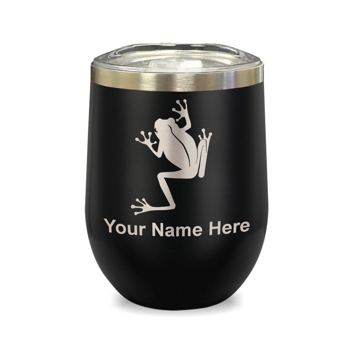 LaserGram Double Wall Stainless Steel Wine Glass, Tree Frog, Personalized Engraving Included