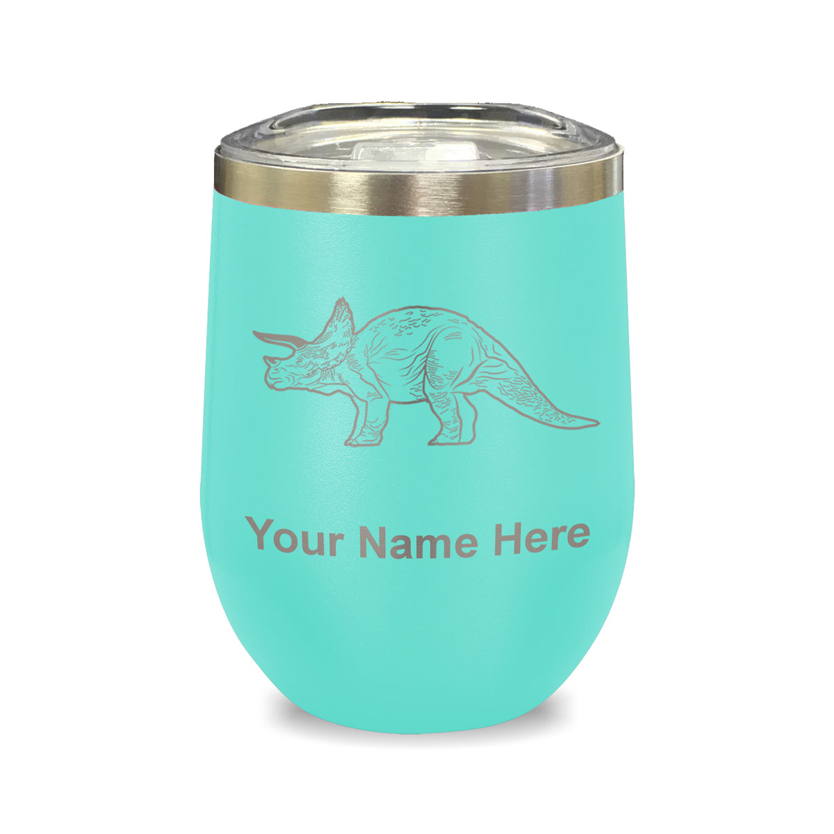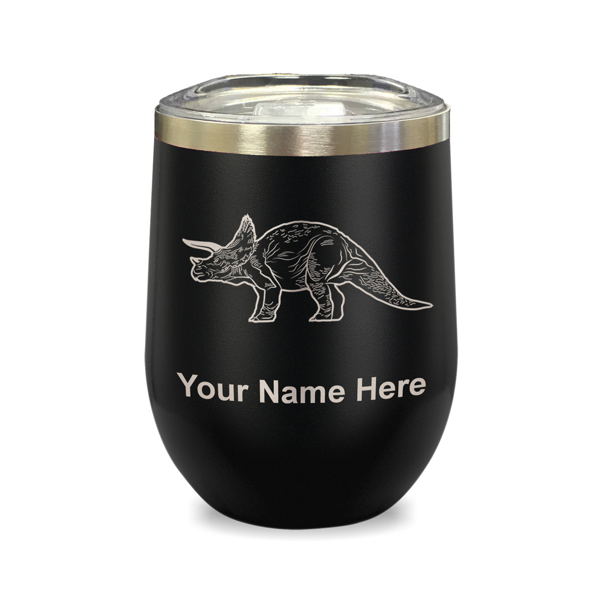 LaserGram Double Wall Stainless Steel Wine Glass, Triceratops Dinosaur, Personalized Engraving Included