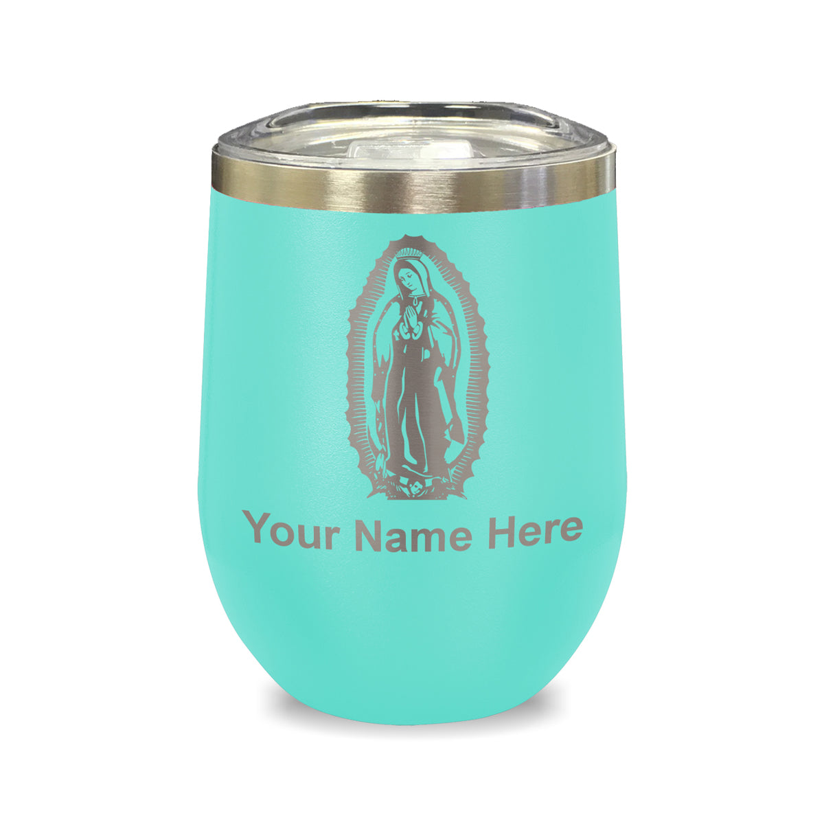 LaserGram Double Wall Stainless Steel Wine Glass, Virgen de Guadalupe, Personalized Engraving Included