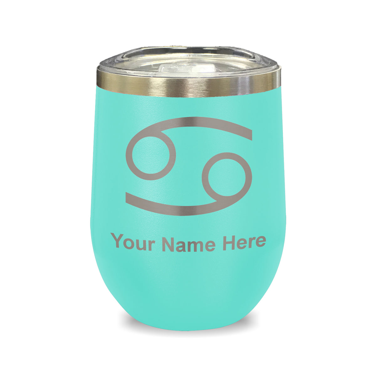 LaserGram Double Wall Stainless Steel Wine Glass, Zodiac Sign Cancer, Personalized Engraving Included