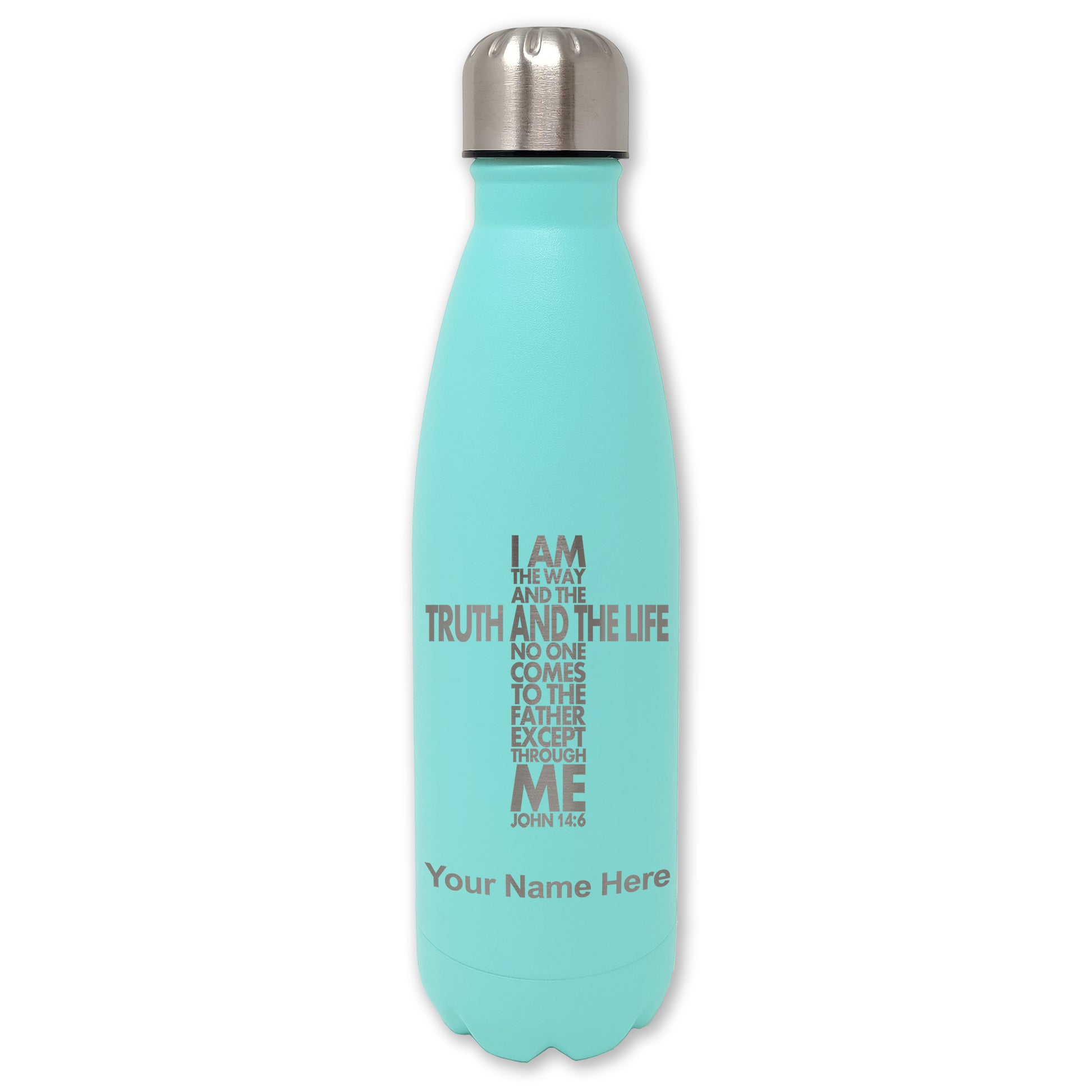 LaserGram Double Wall Water Bottle, Bible Verse John 14-6, Personalized Engraving Included