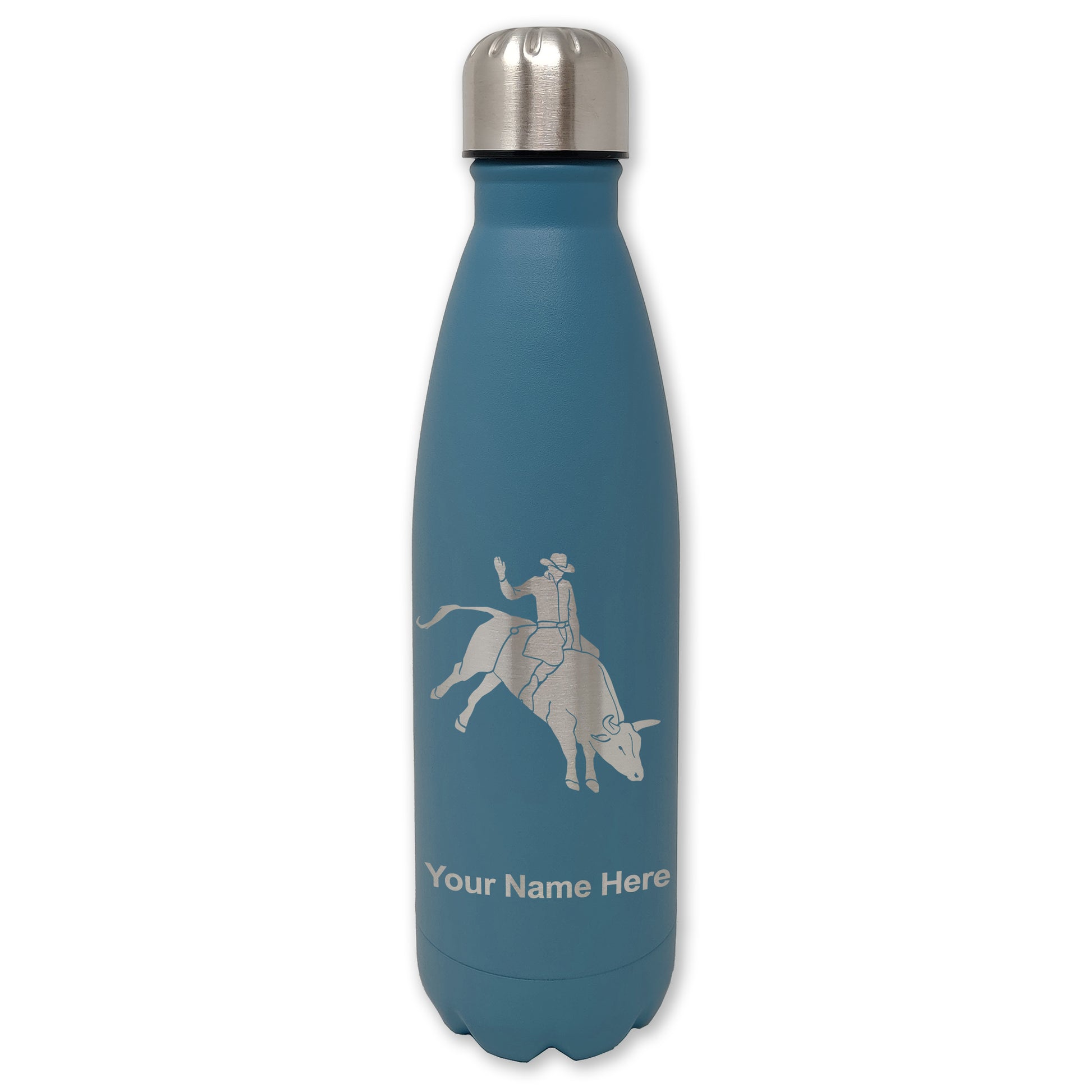 LaserGram Double Wall Water Bottle, Bull Rider Cowboy, Personalized Engraving Included