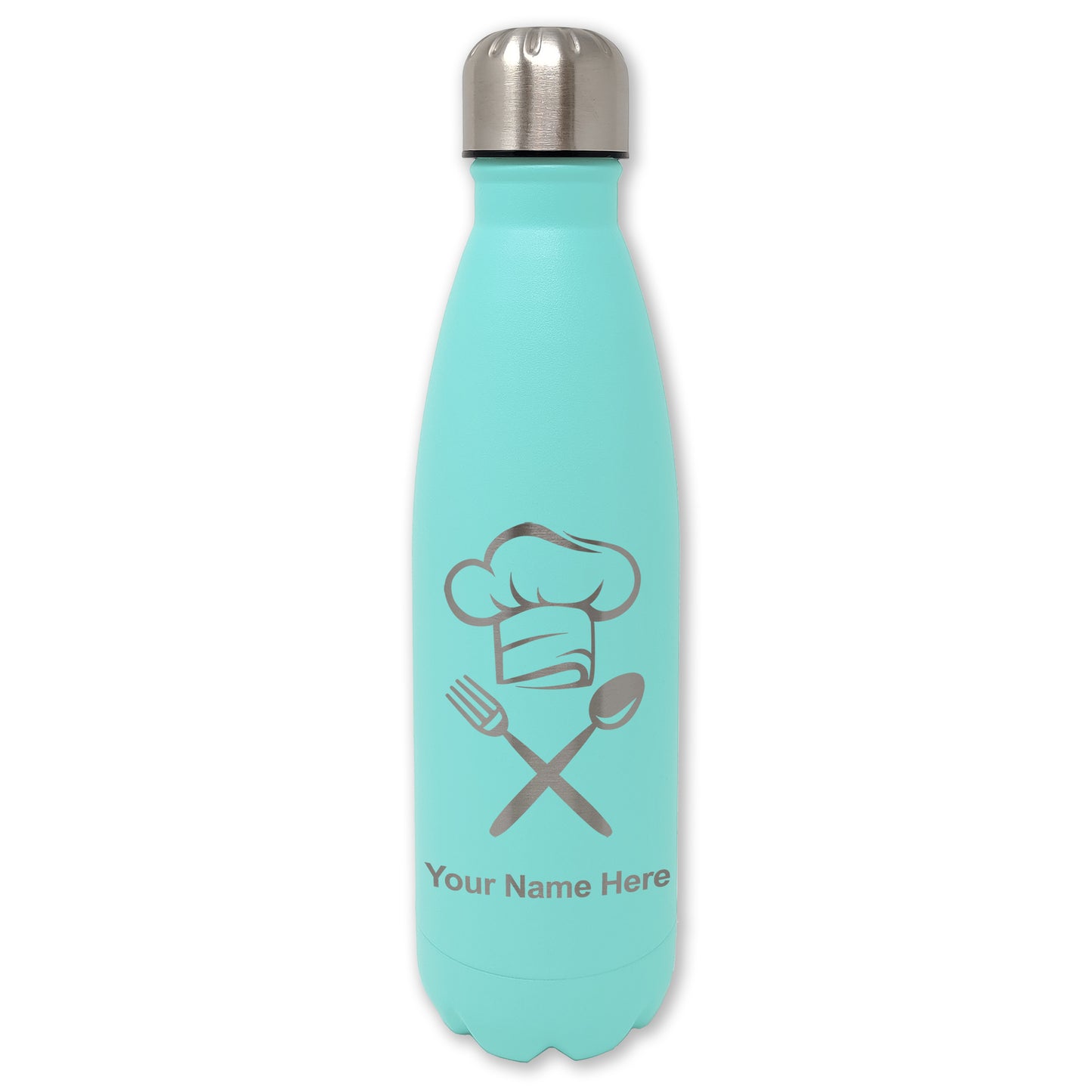 LaserGram Double Wall Water Bottle, Chef Hat, Personalized Engraving Included