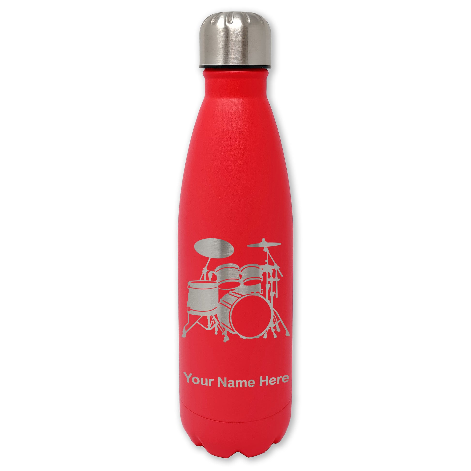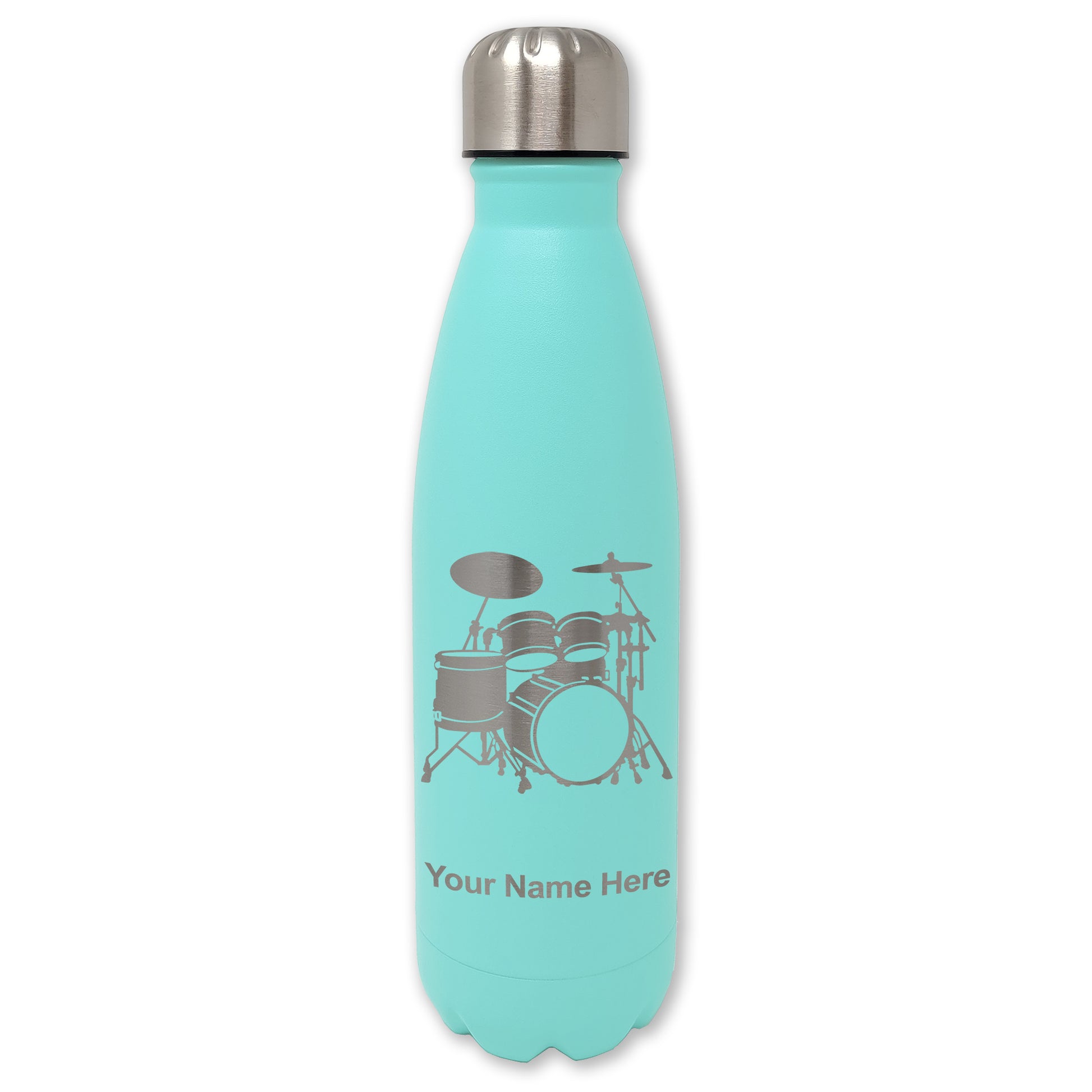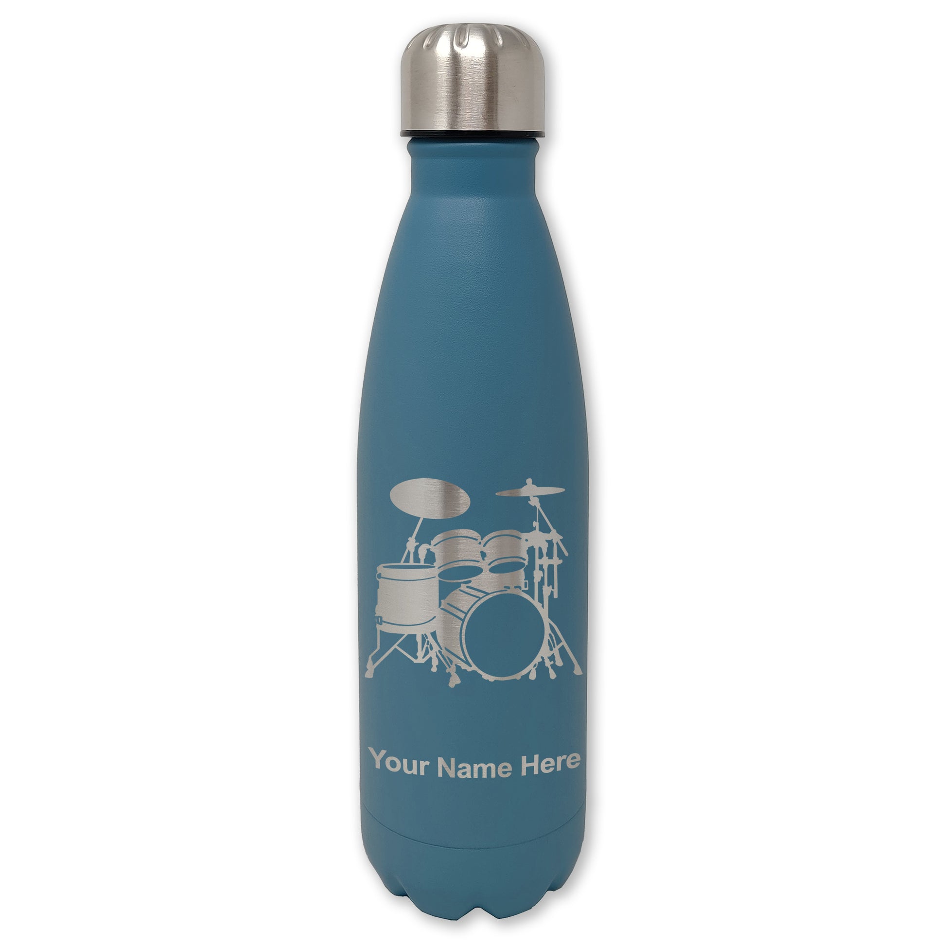 LaserGram Double Wall Water Bottle, Drum Set, Personalized Engraving Included