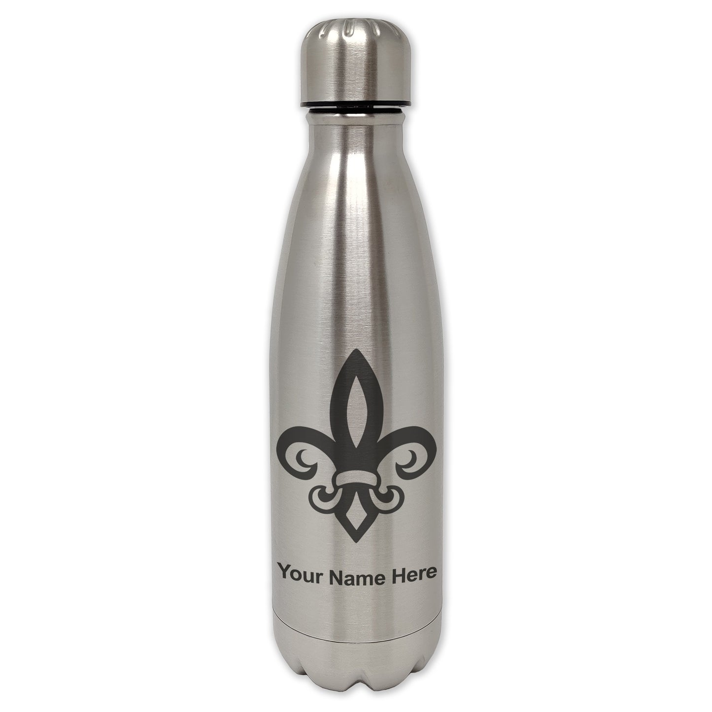 LaserGram Double Wall Water Bottle, Fleur de Lis, Personalized Engraving Included