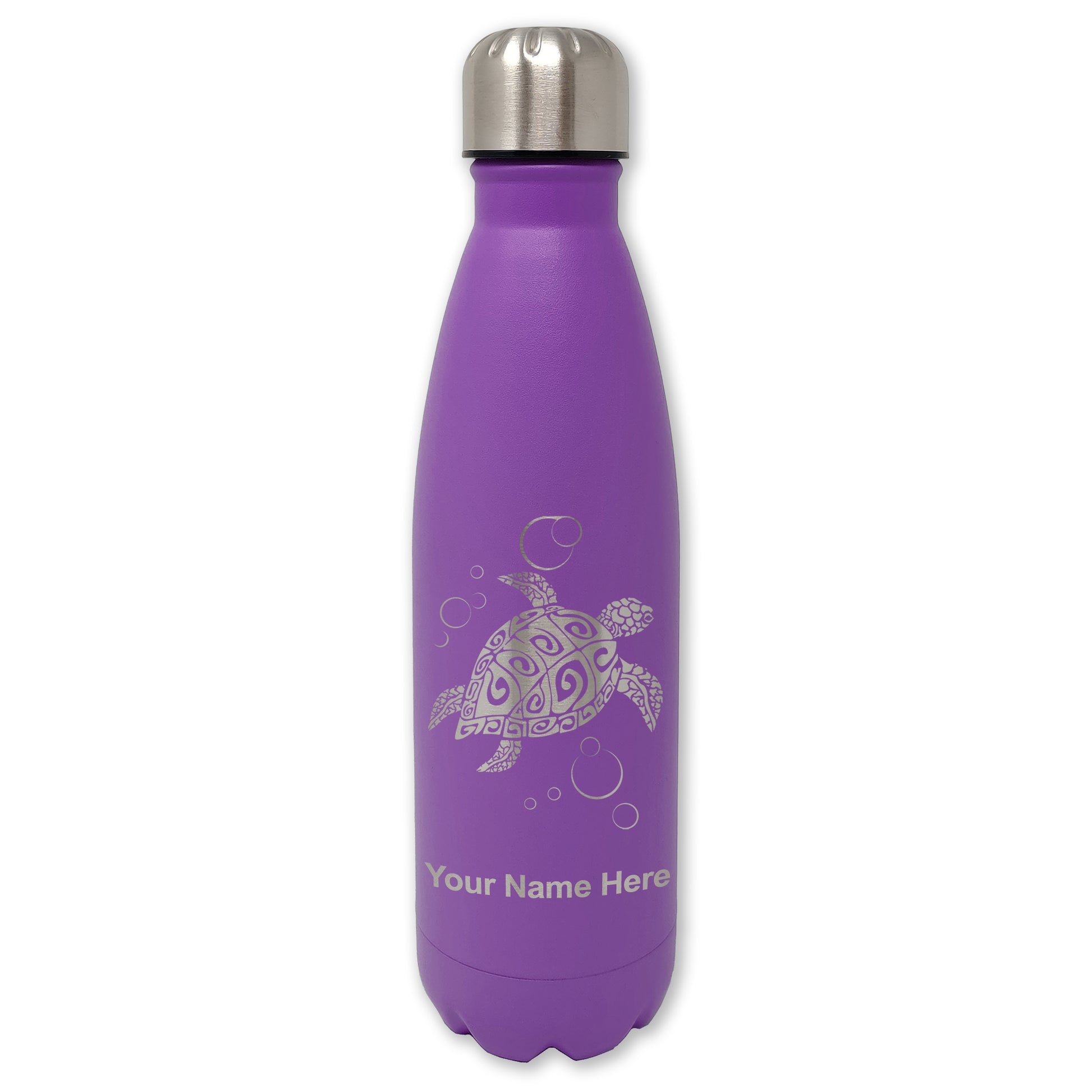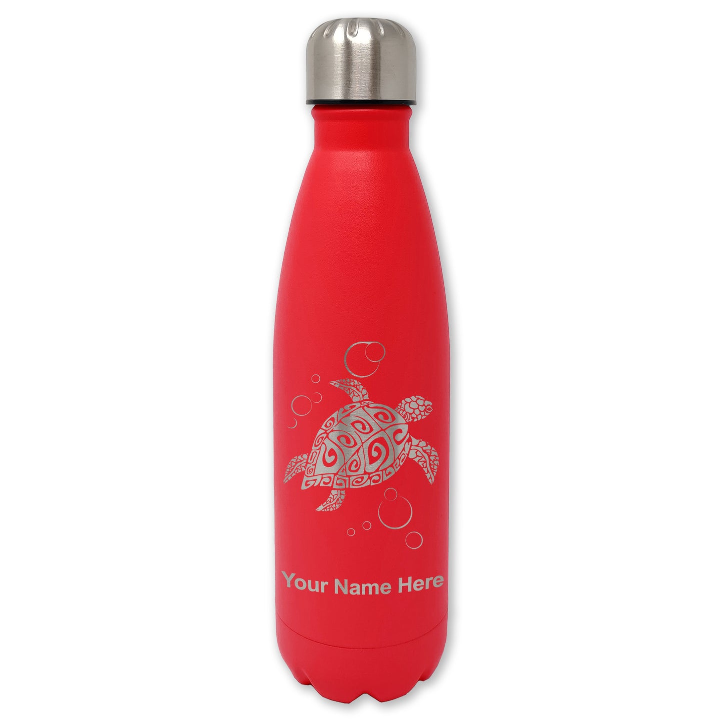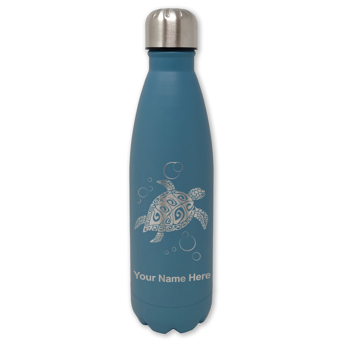 LaserGram Double Wall Water Bottle, Hawaiian Sea Turtle, Personalized Engraving Included