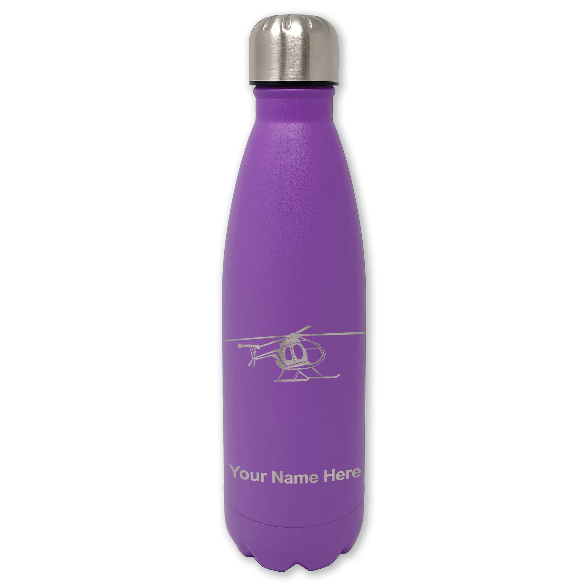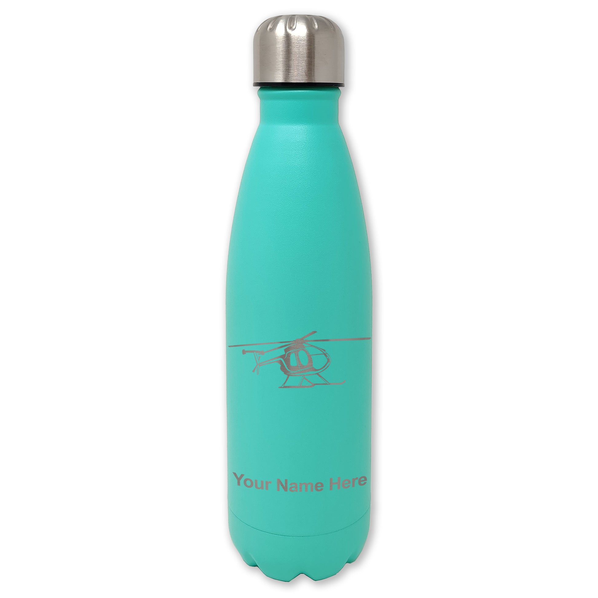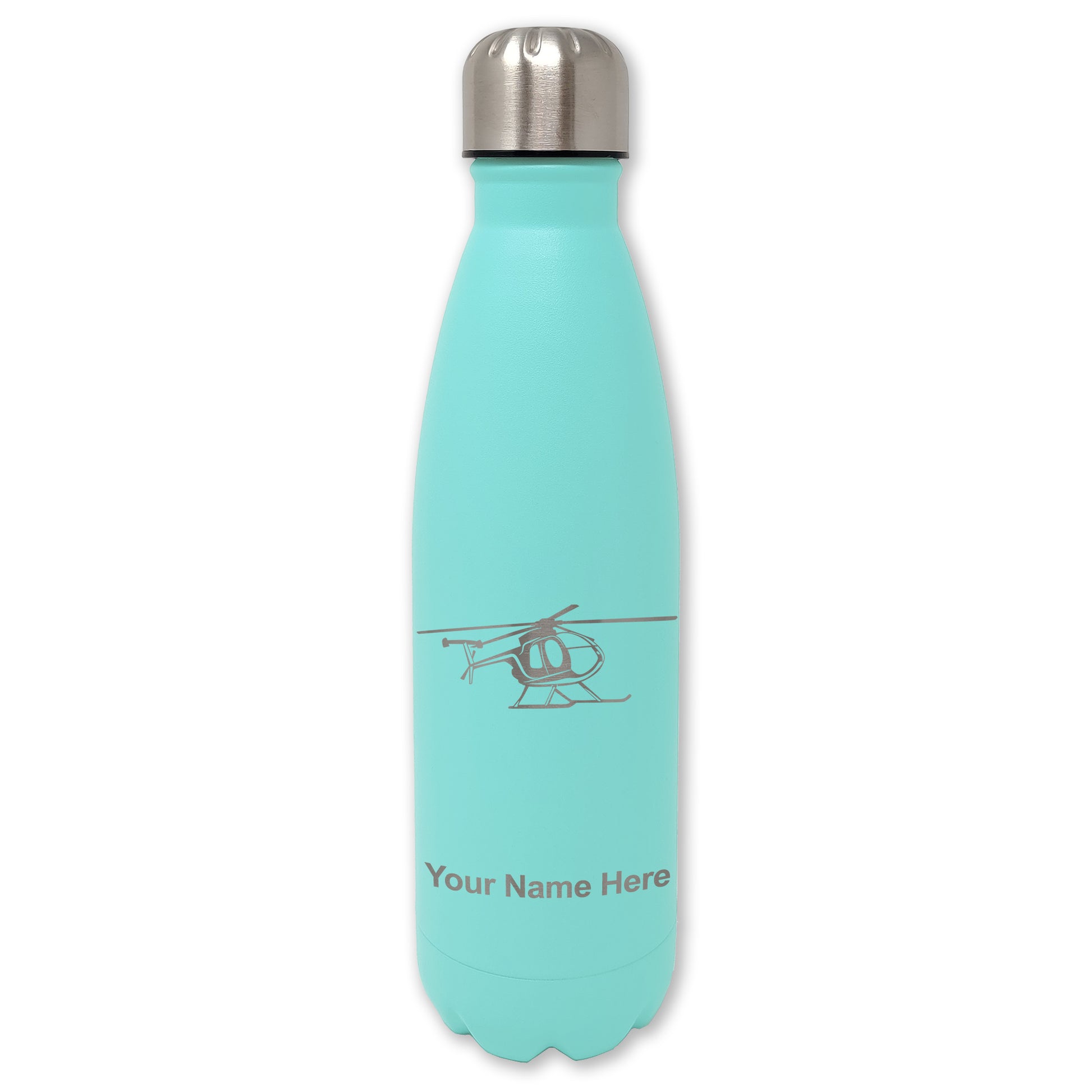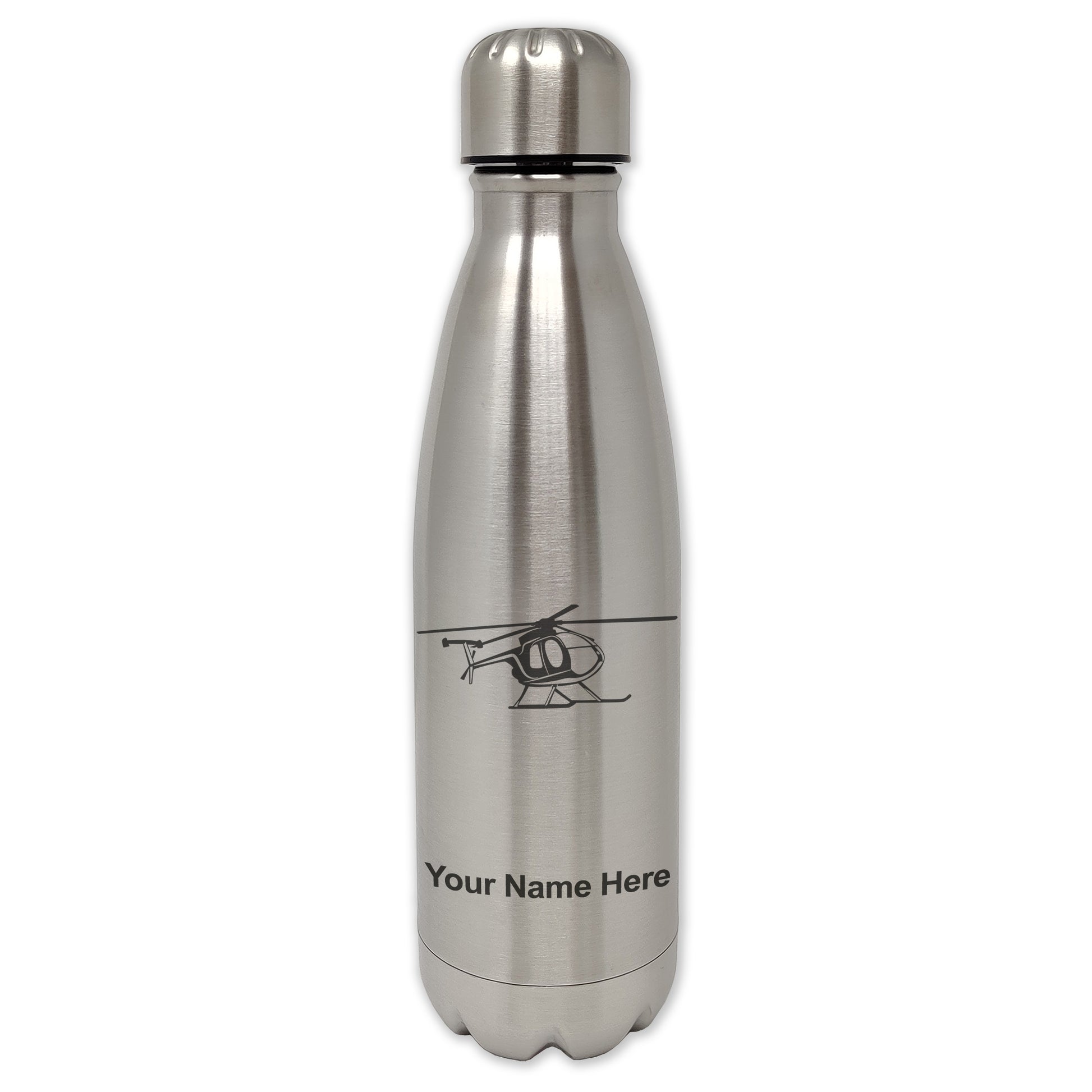 LaserGram Double Wall Water Bottle, Helicopter 1, Personalized Engraving Included