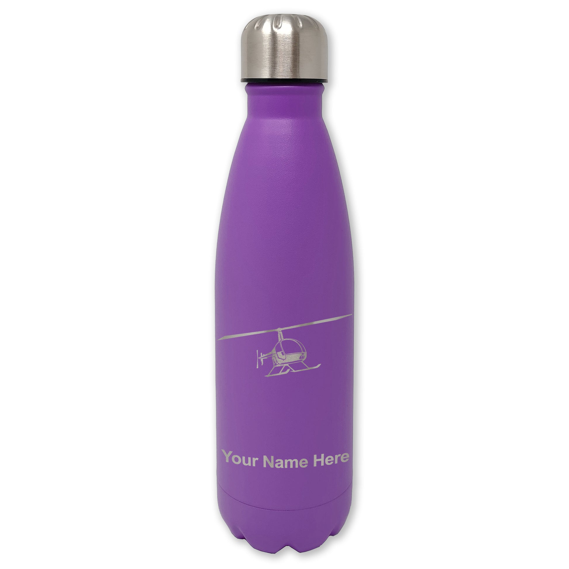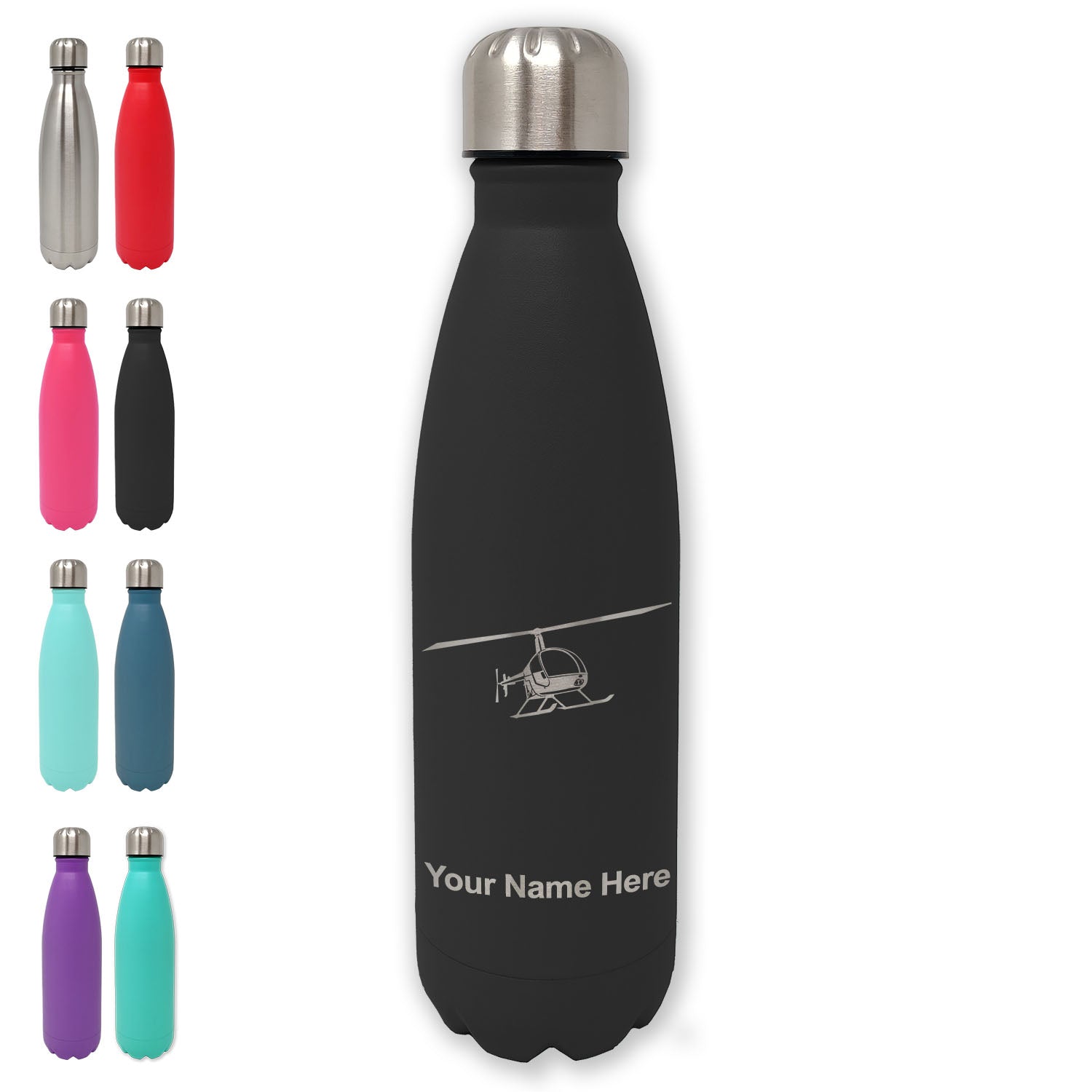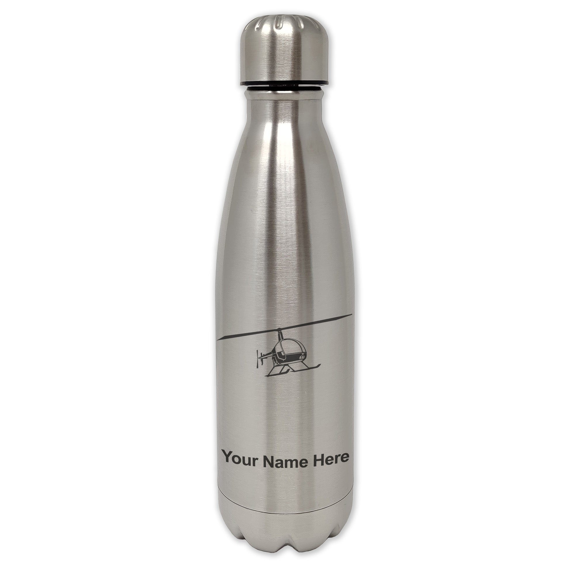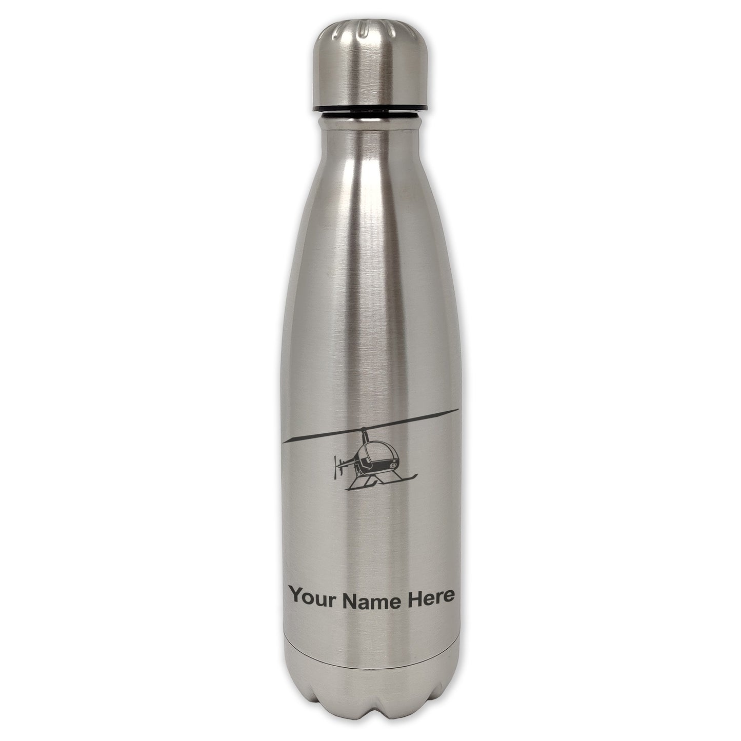LaserGram Double Wall Water Bottle, Helicopter 2, Personalized Engraving Included