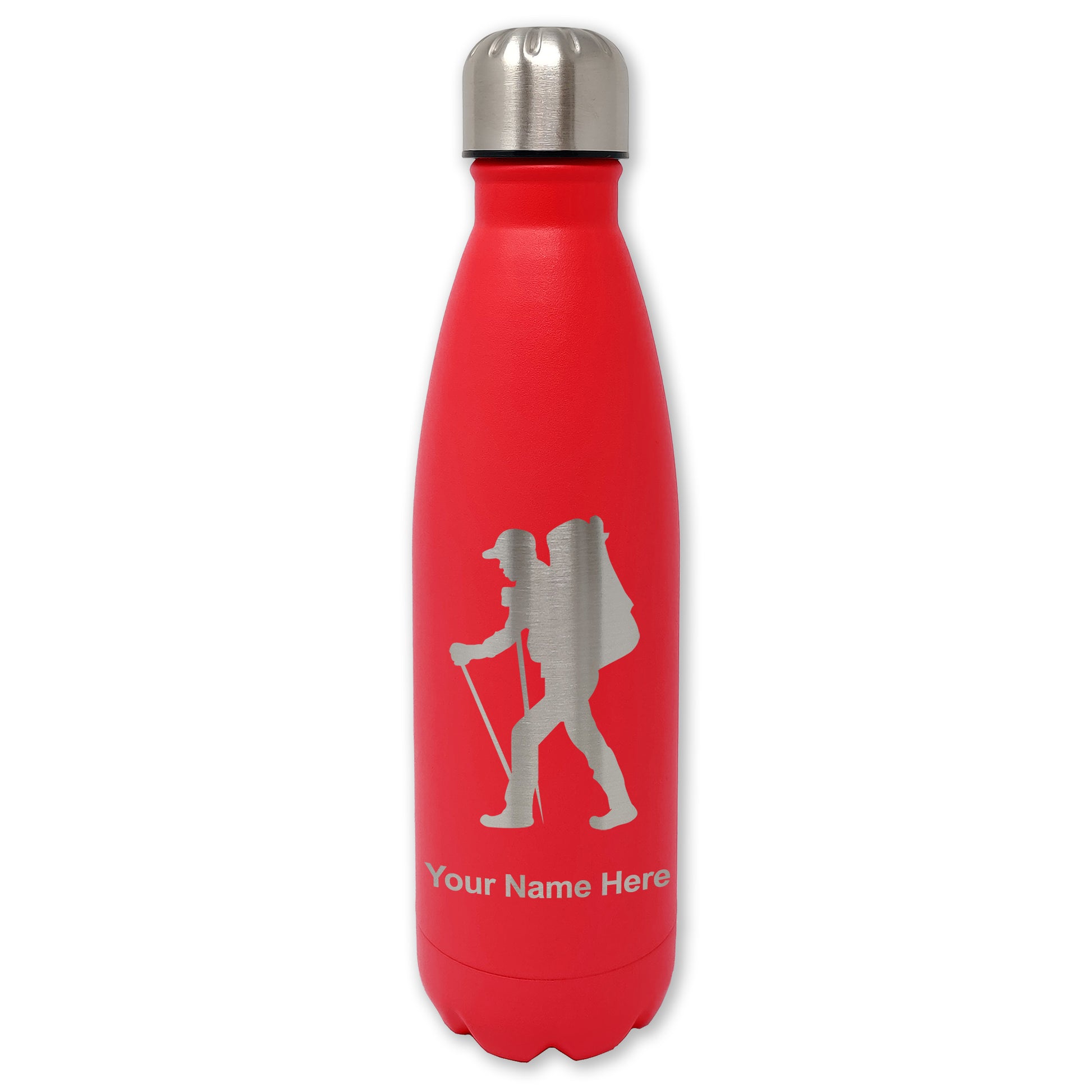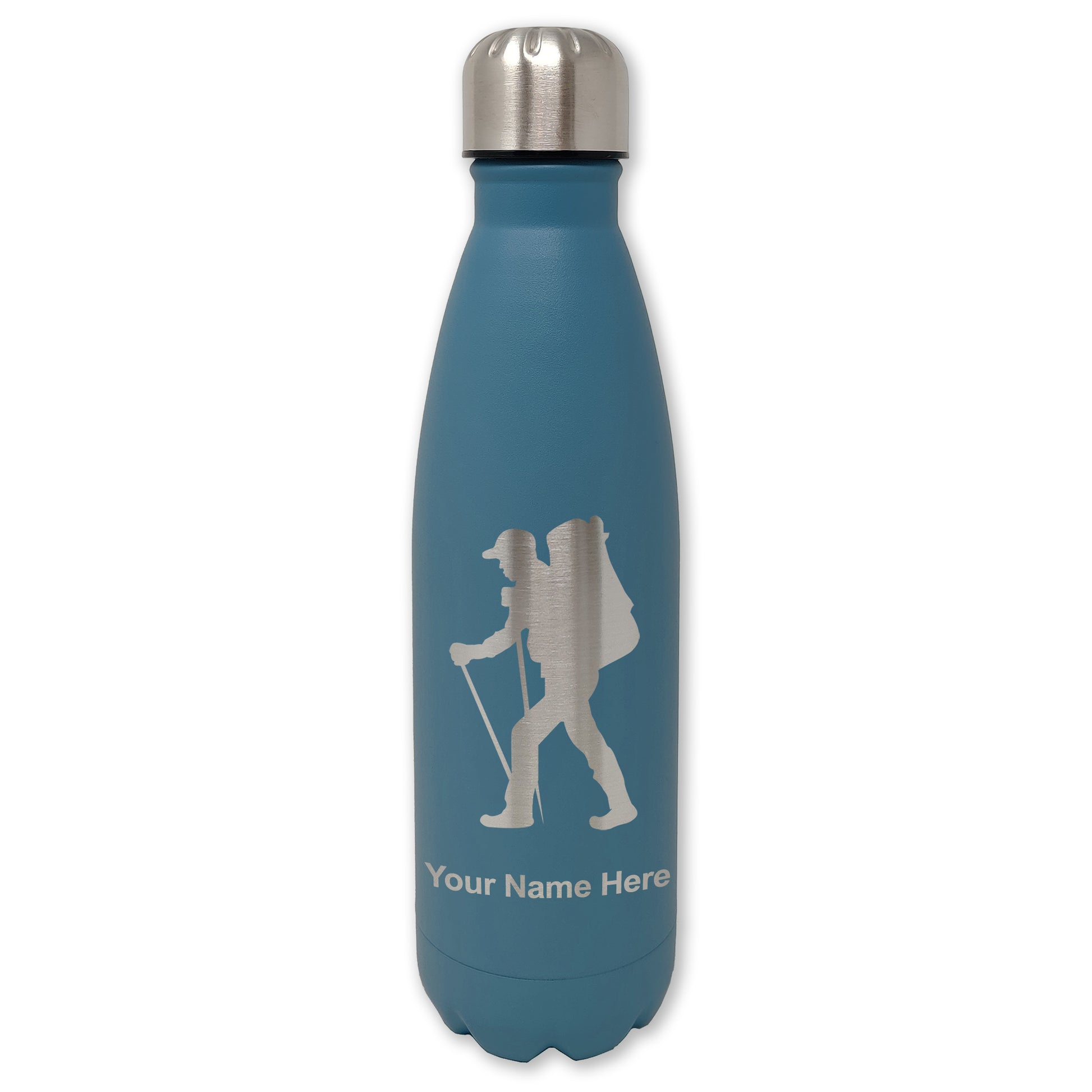 LaserGram Double Wall Water Bottle, Hiker Man, Personalized Engraving Included