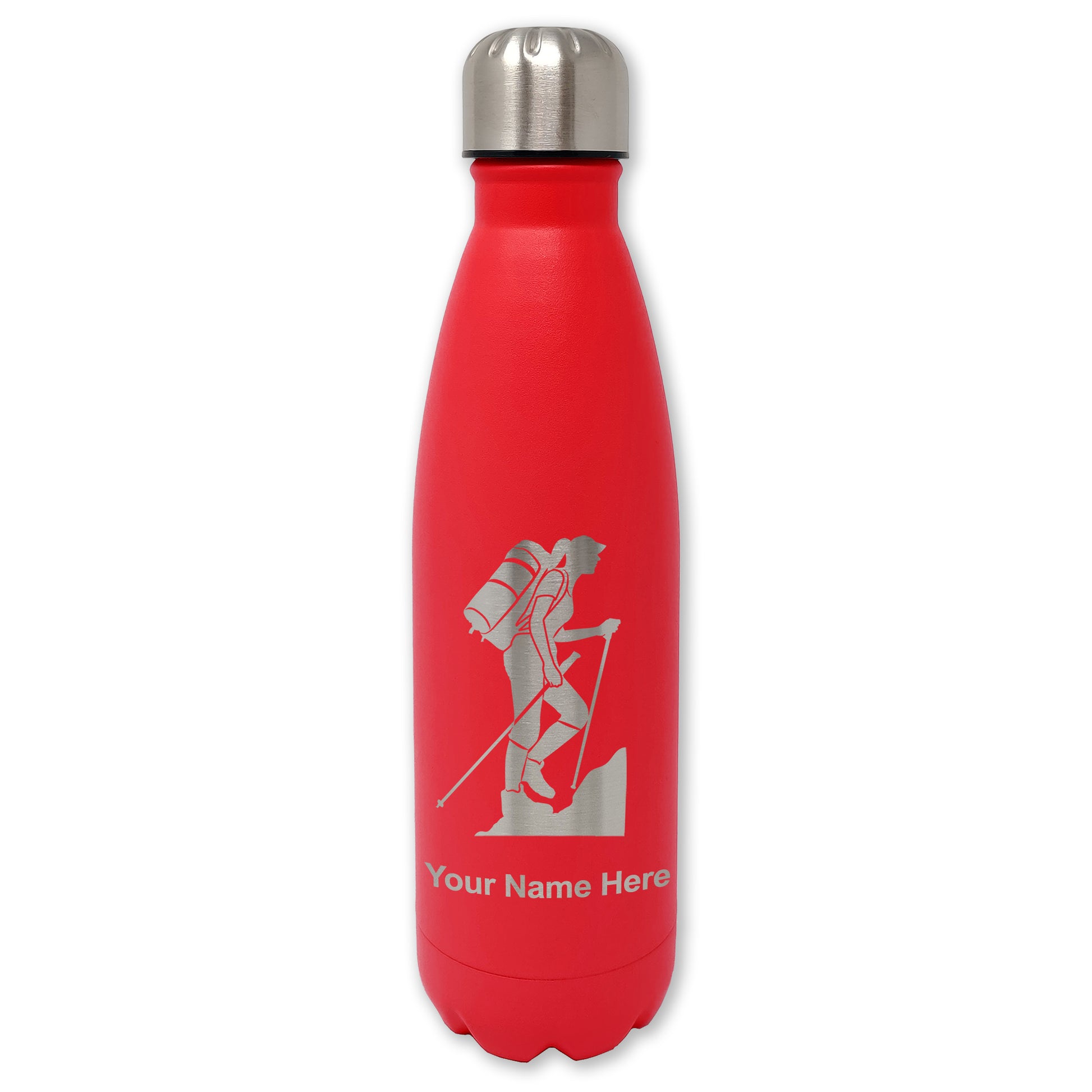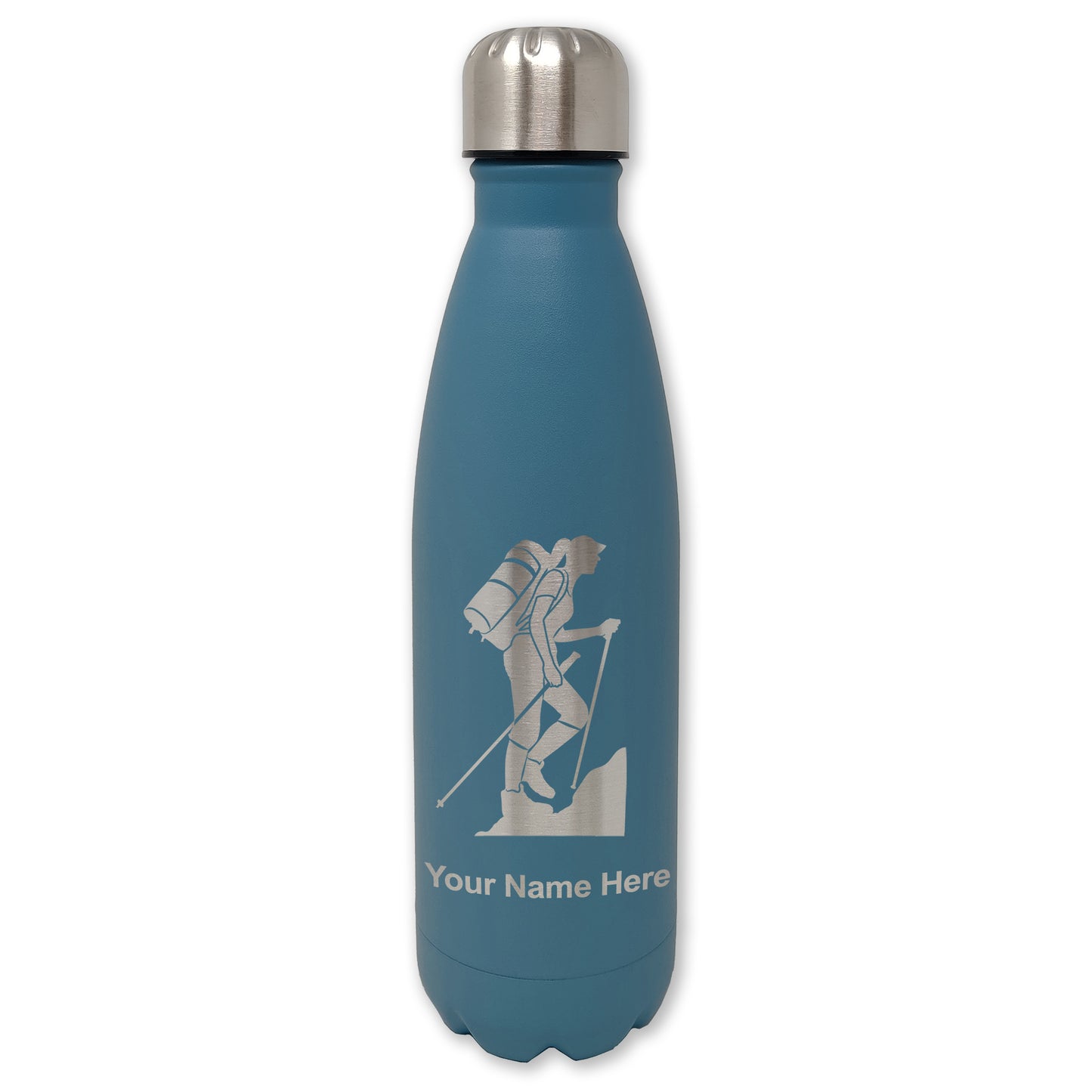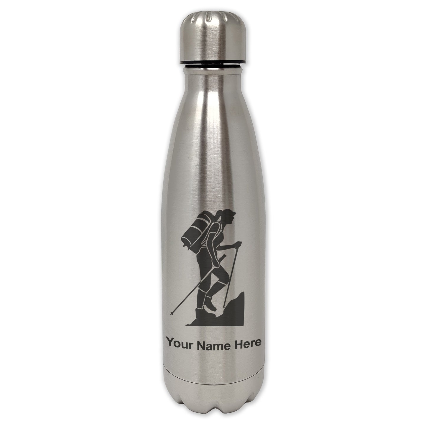 LaserGram Double Wall Water Bottle, Hiker Woman, Personalized Engraving Included