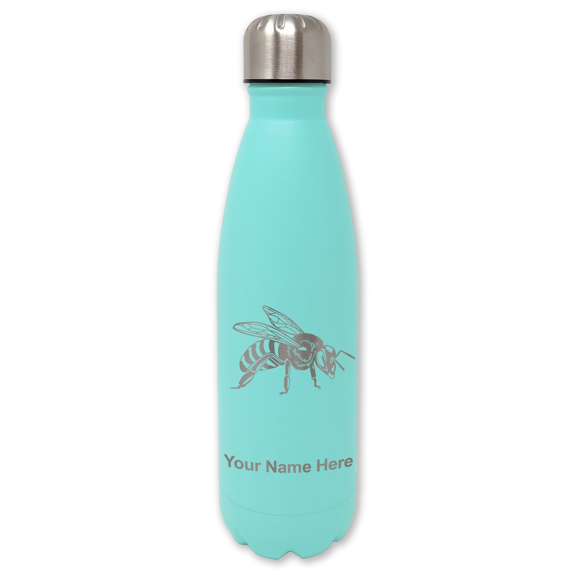 LaserGram Double Wall Water Bottle, Honey Bee, Personalized Engraving Included