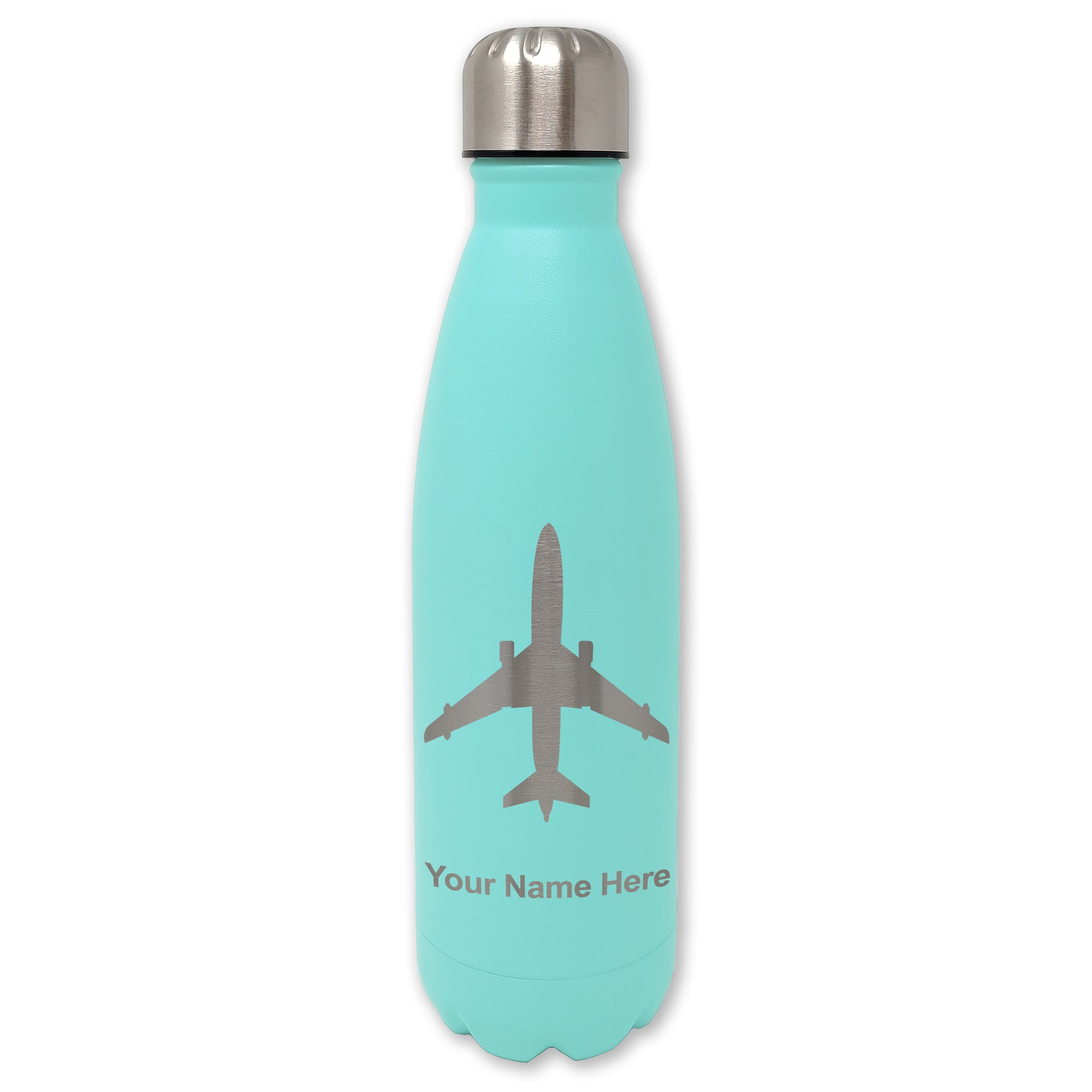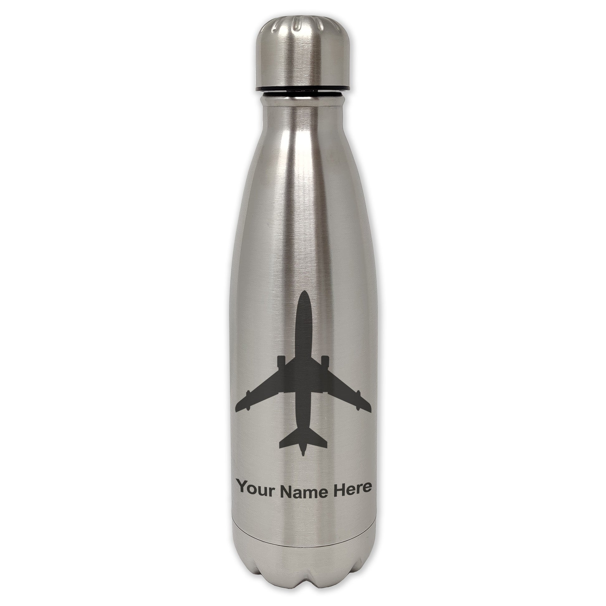 LaserGram Double Wall Water Bottle, Jet Airplane, Personalized Engraving Included