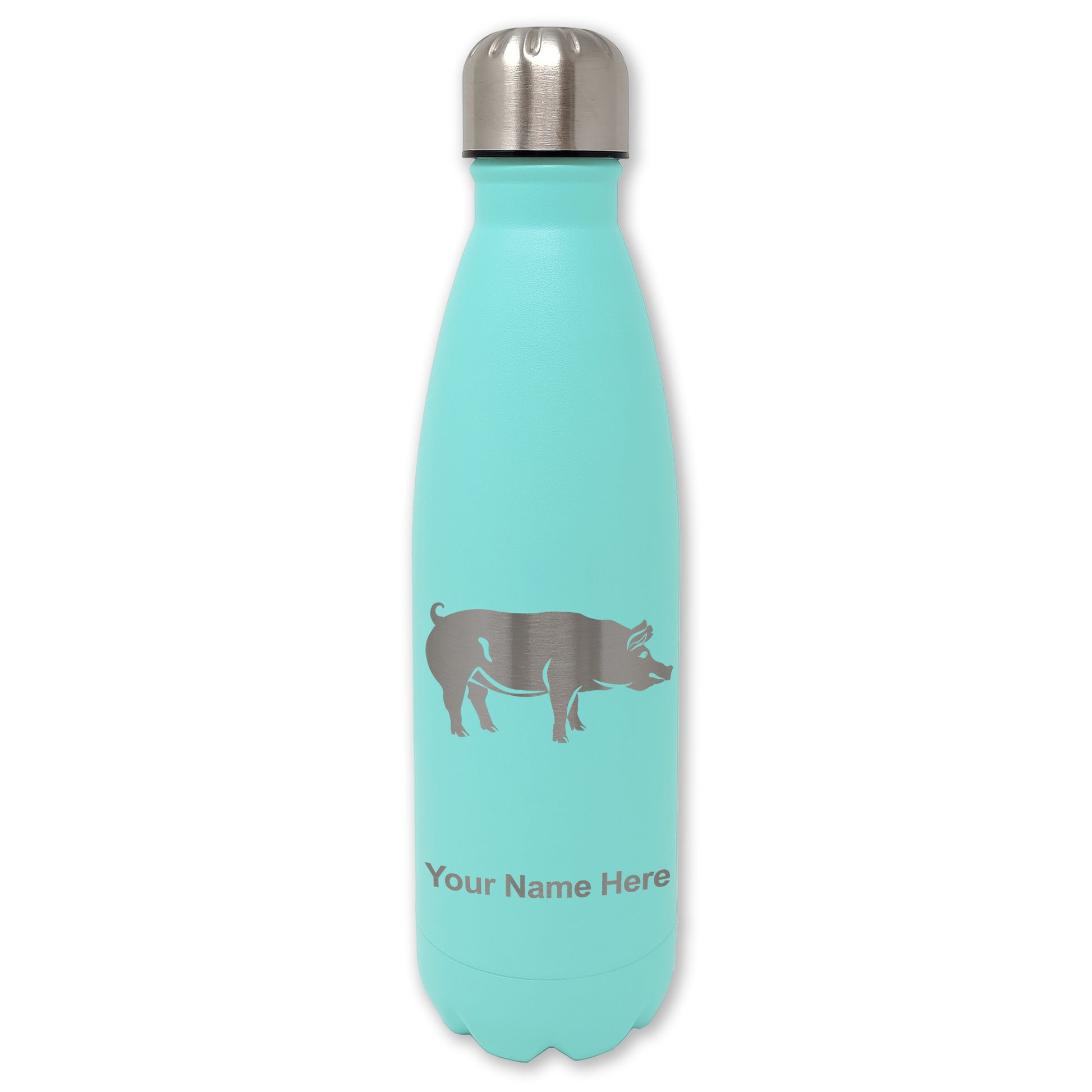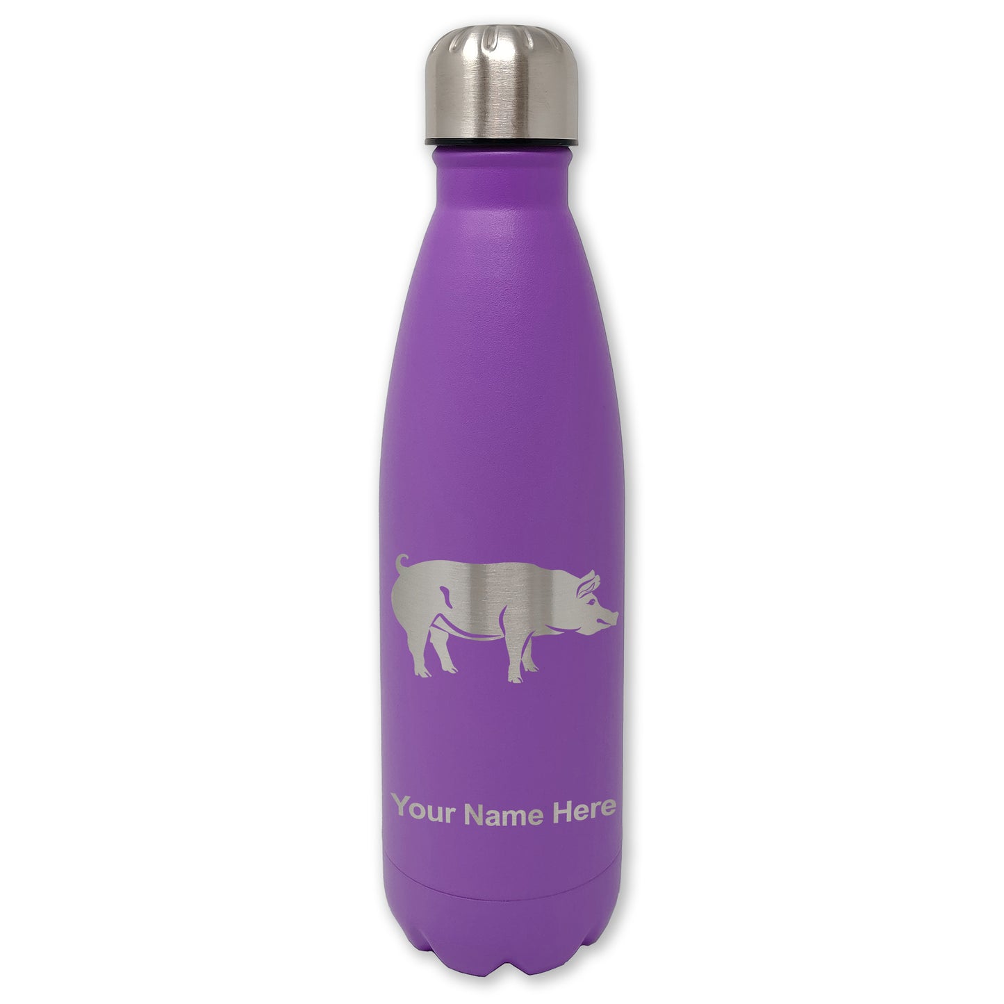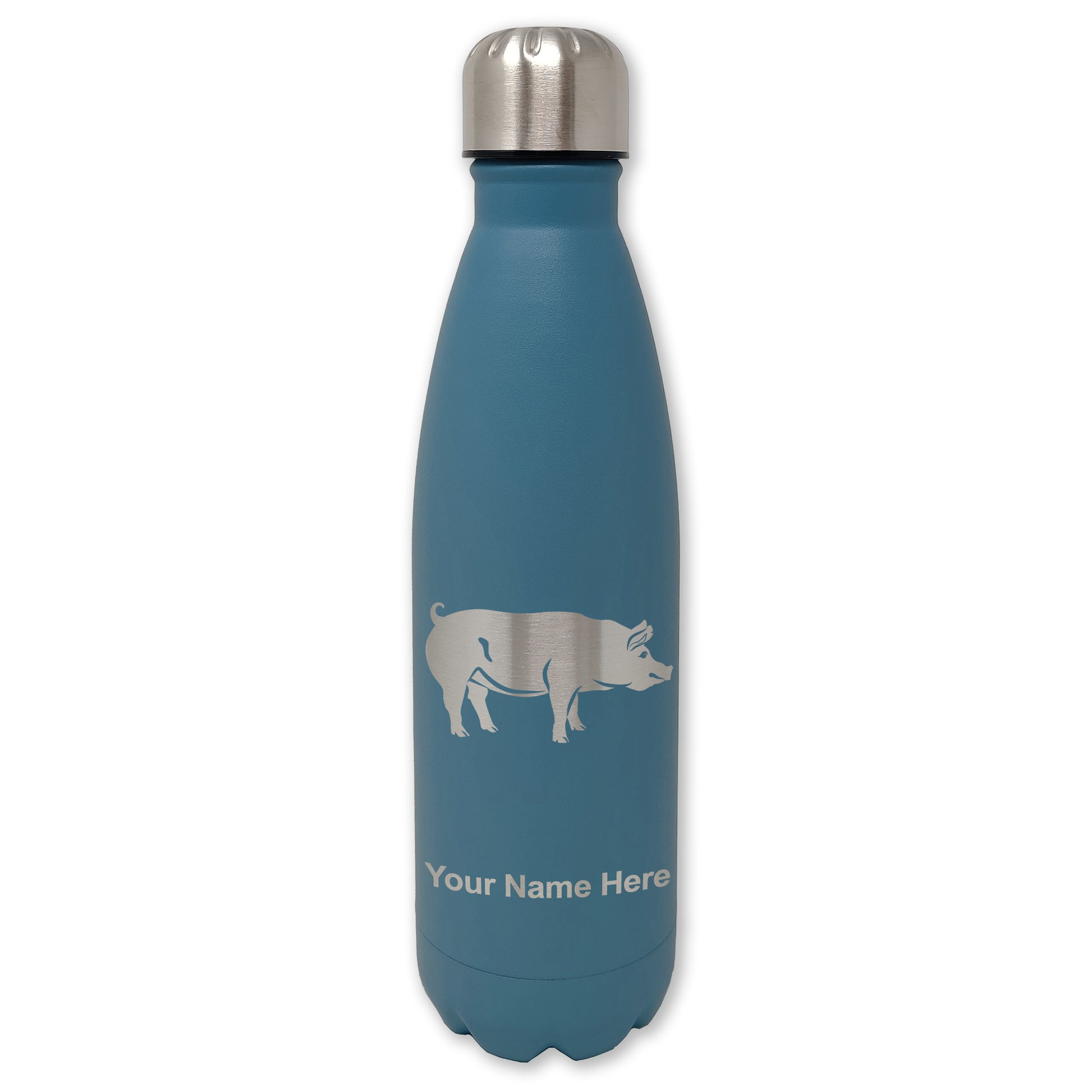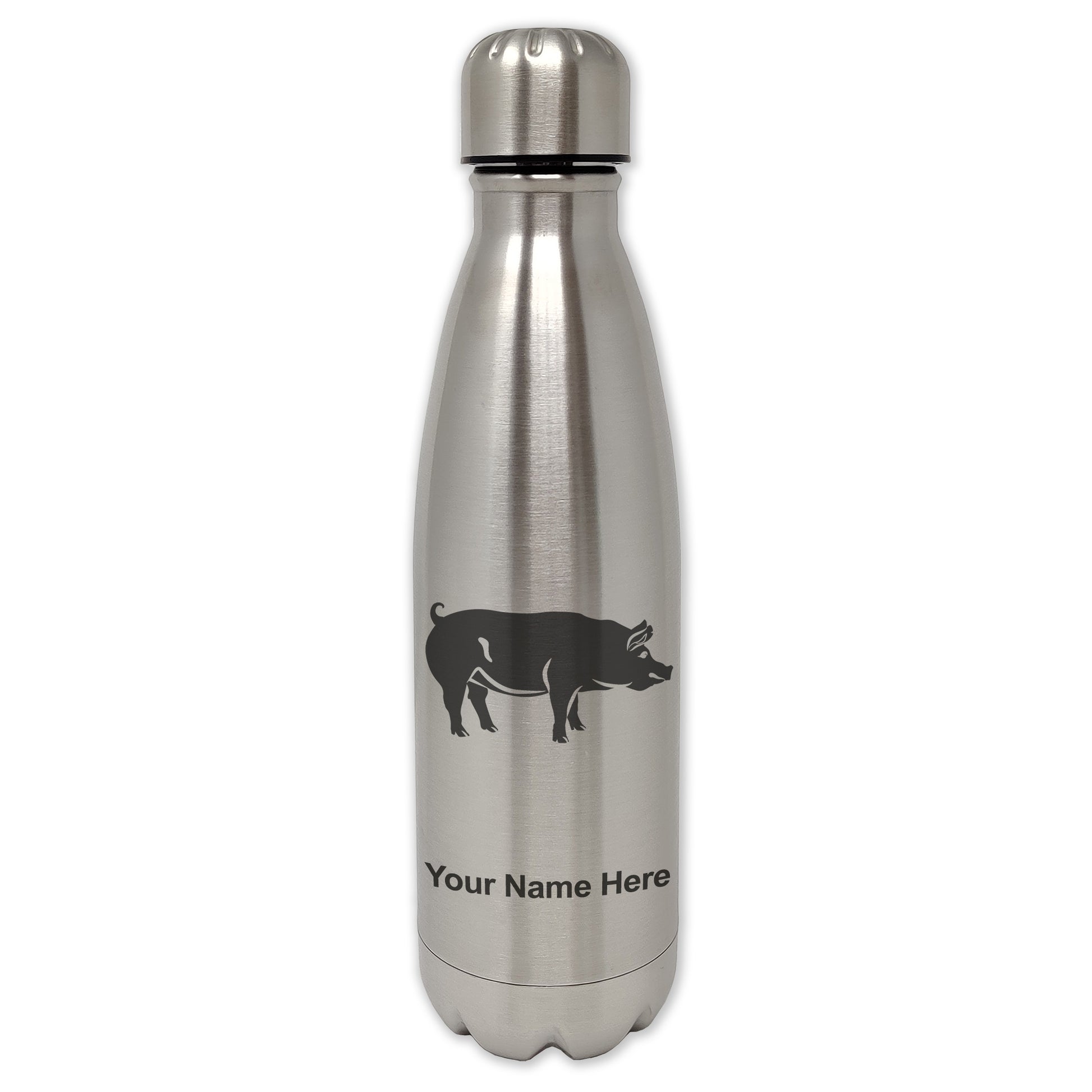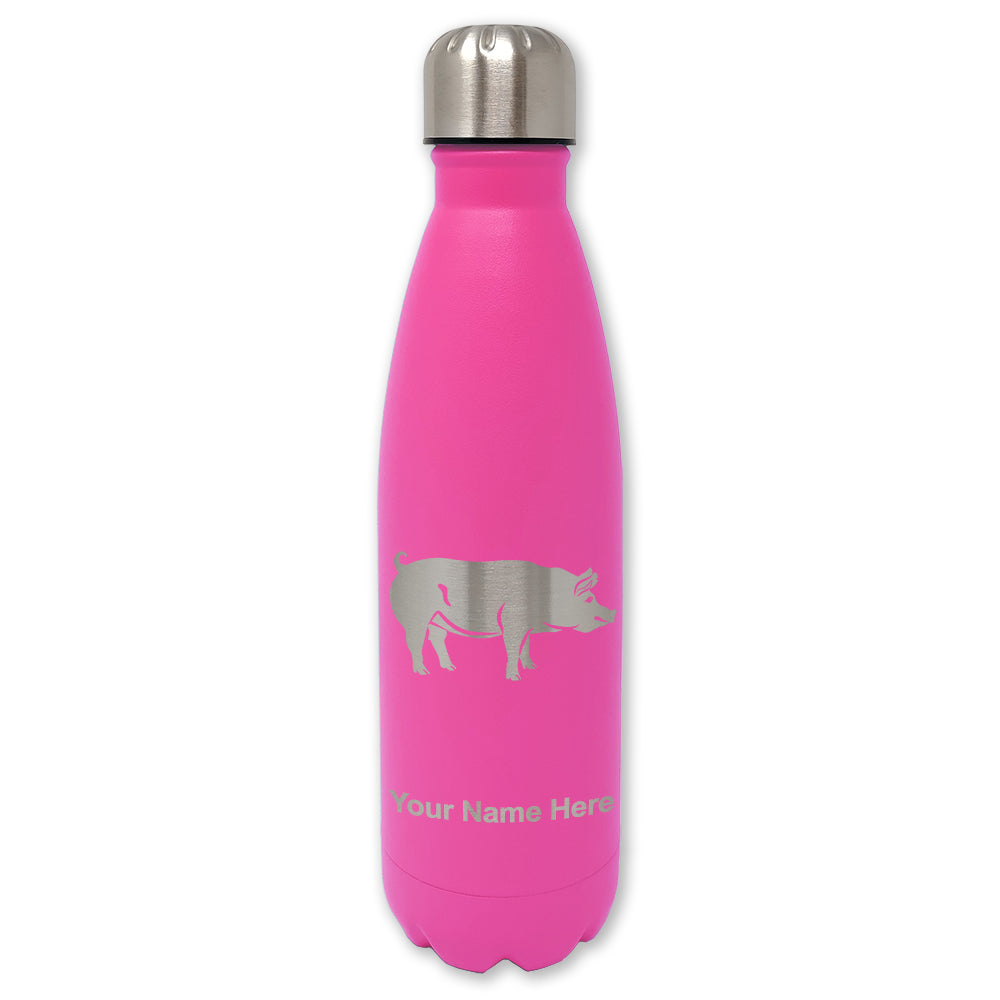 LaserGram Double Wall Water Bottle, Pig, Personalized Engraving Included