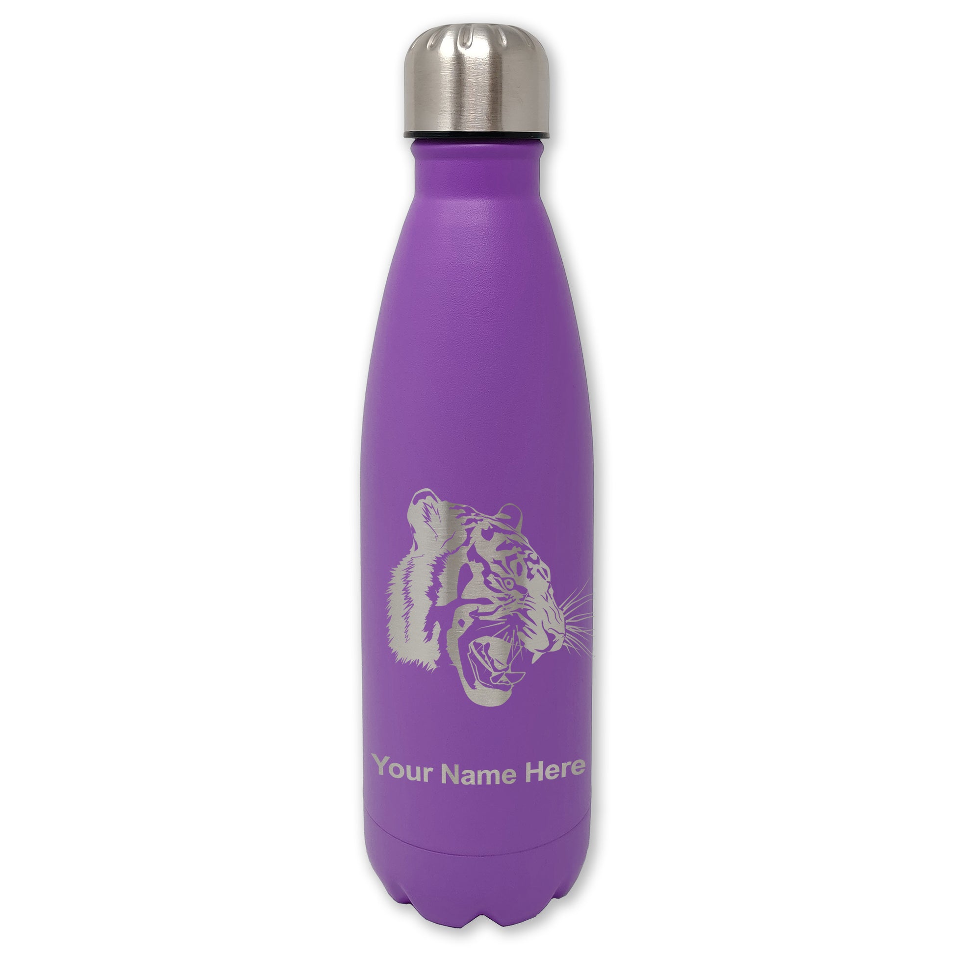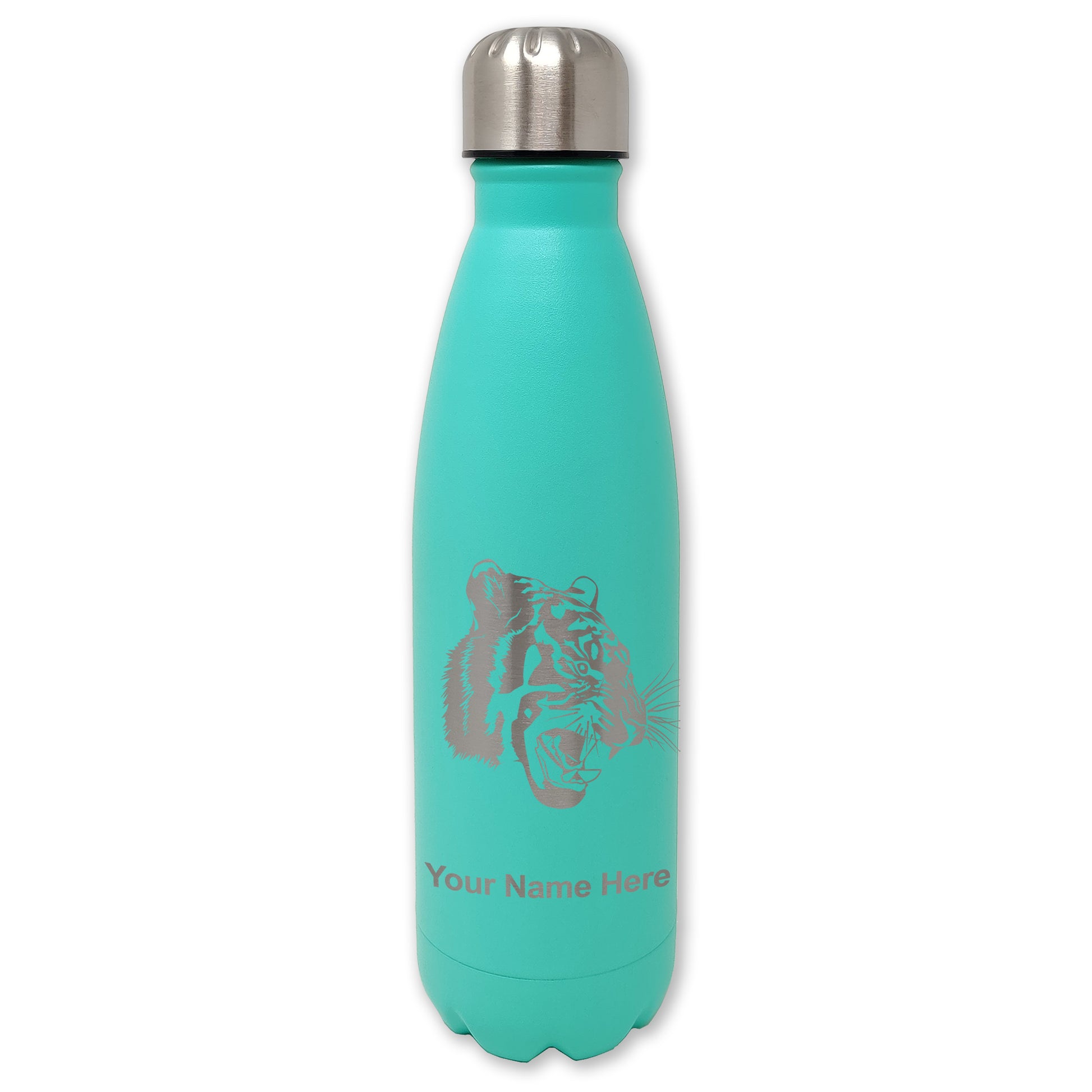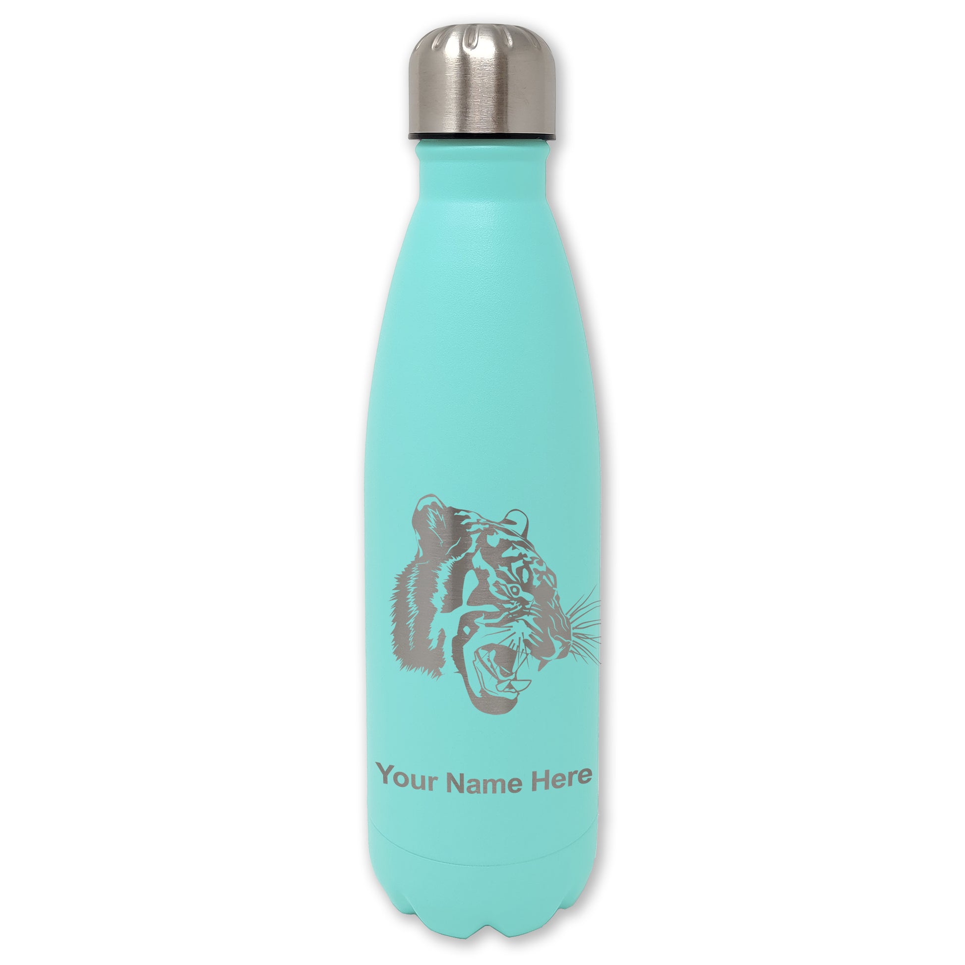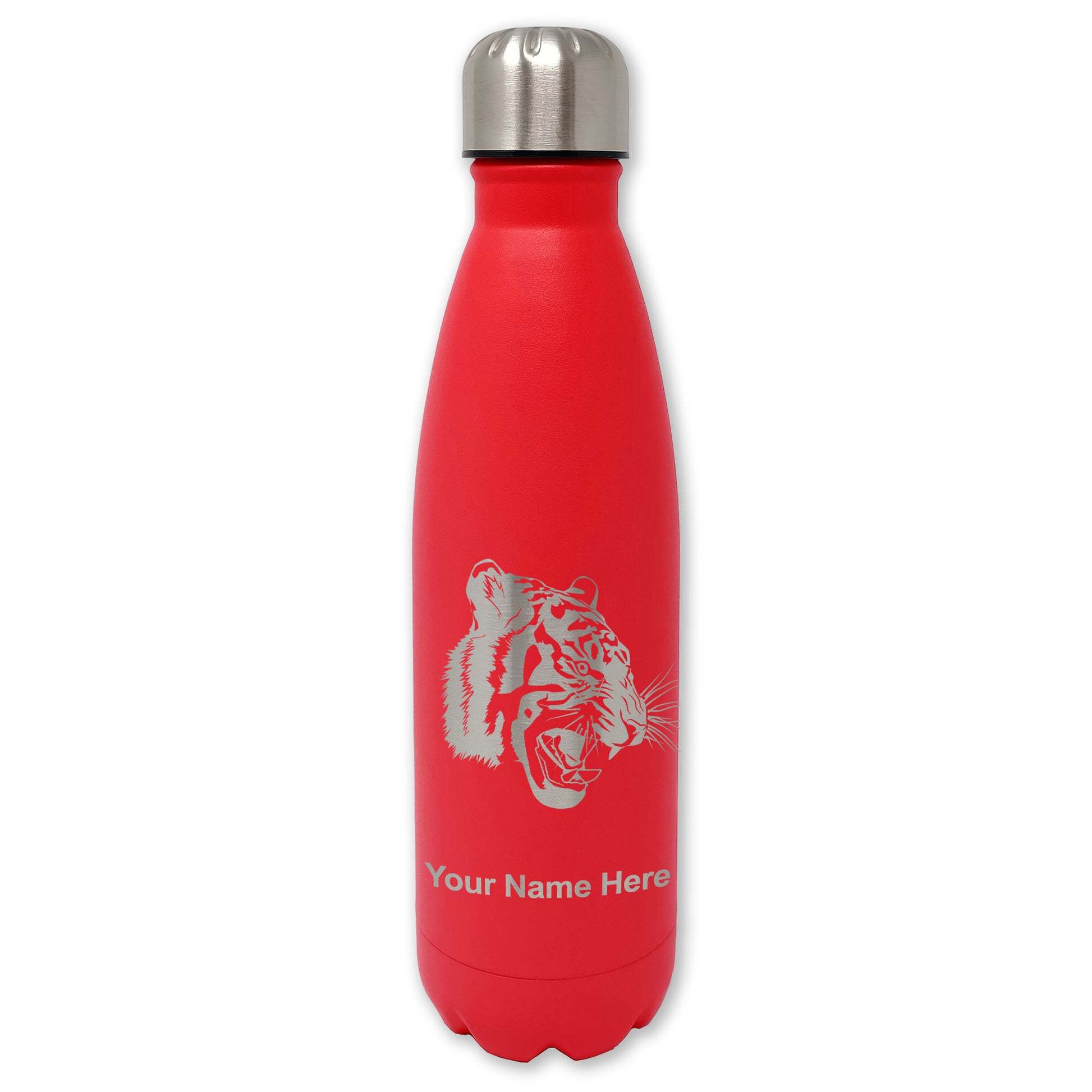 LaserGram Double Wall Water Bottle, Tiger Head, Personalized Engraving Included