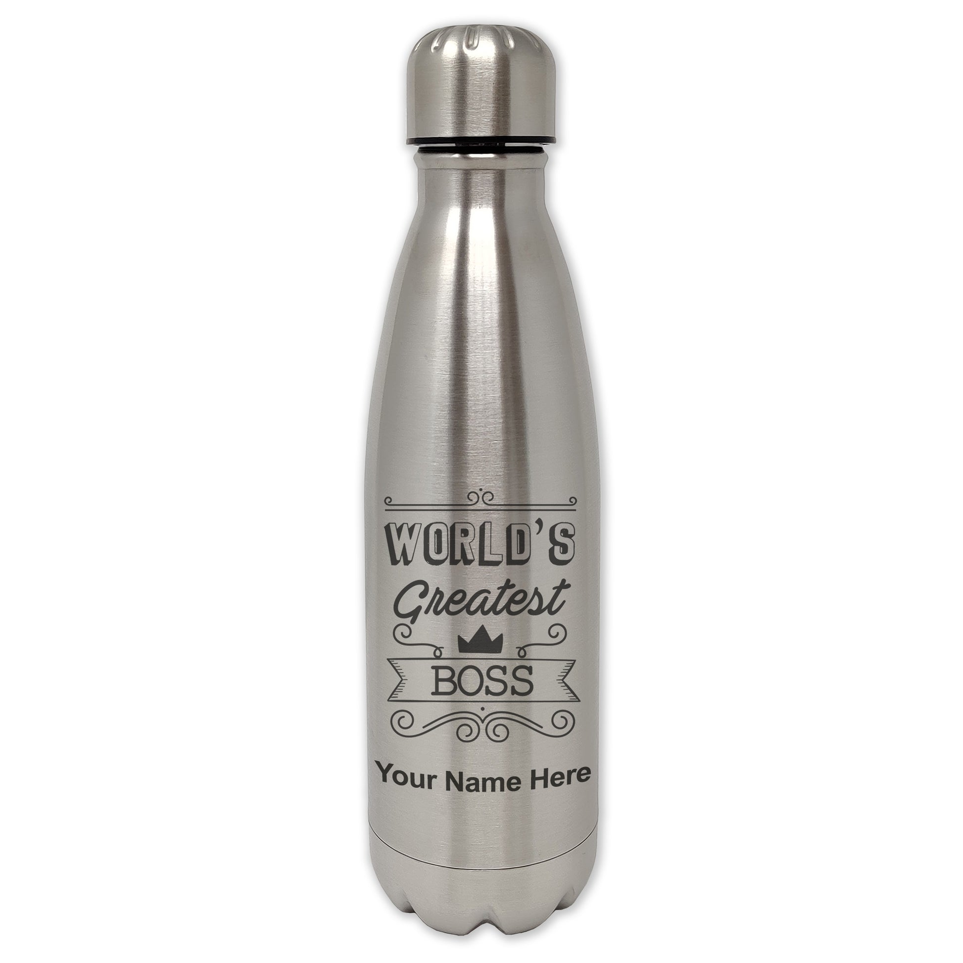 LaserGram Double Wall Water Bottle, World's Greatest Boss, Personalized Engraving Included