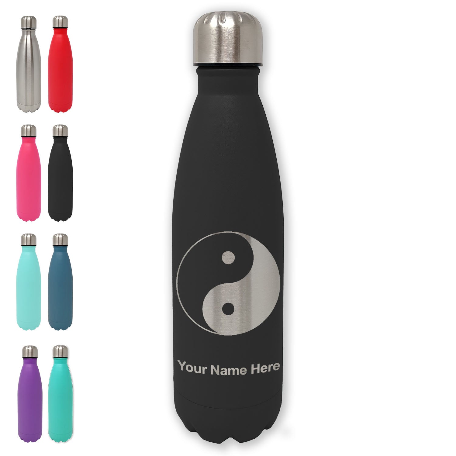 LaserGram Double Wall Water Bottle, Yin Yang, Personalized Engraving Included