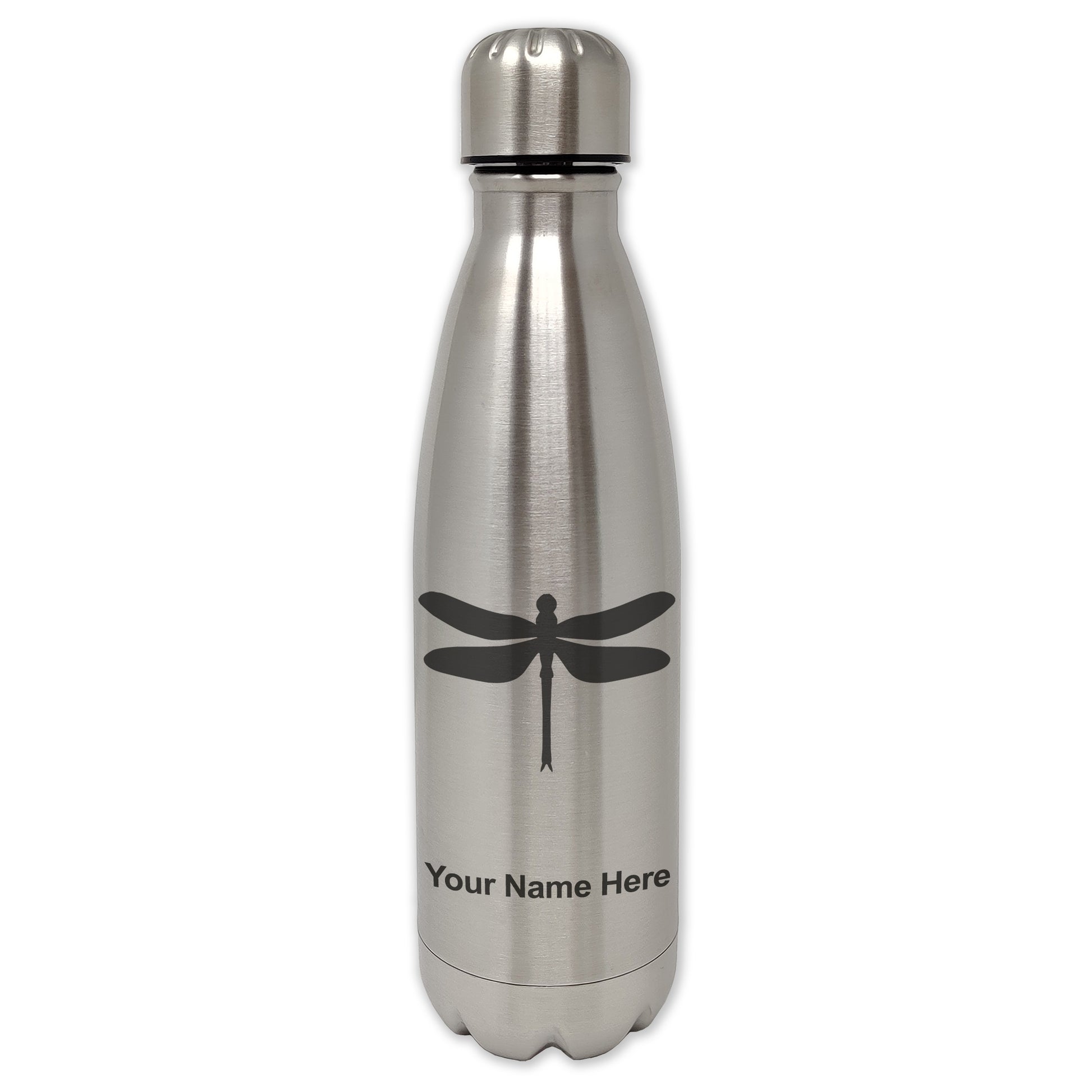 LaserGram Single Wall Water Bottle, Dragonfly, Personalized Engraving Included