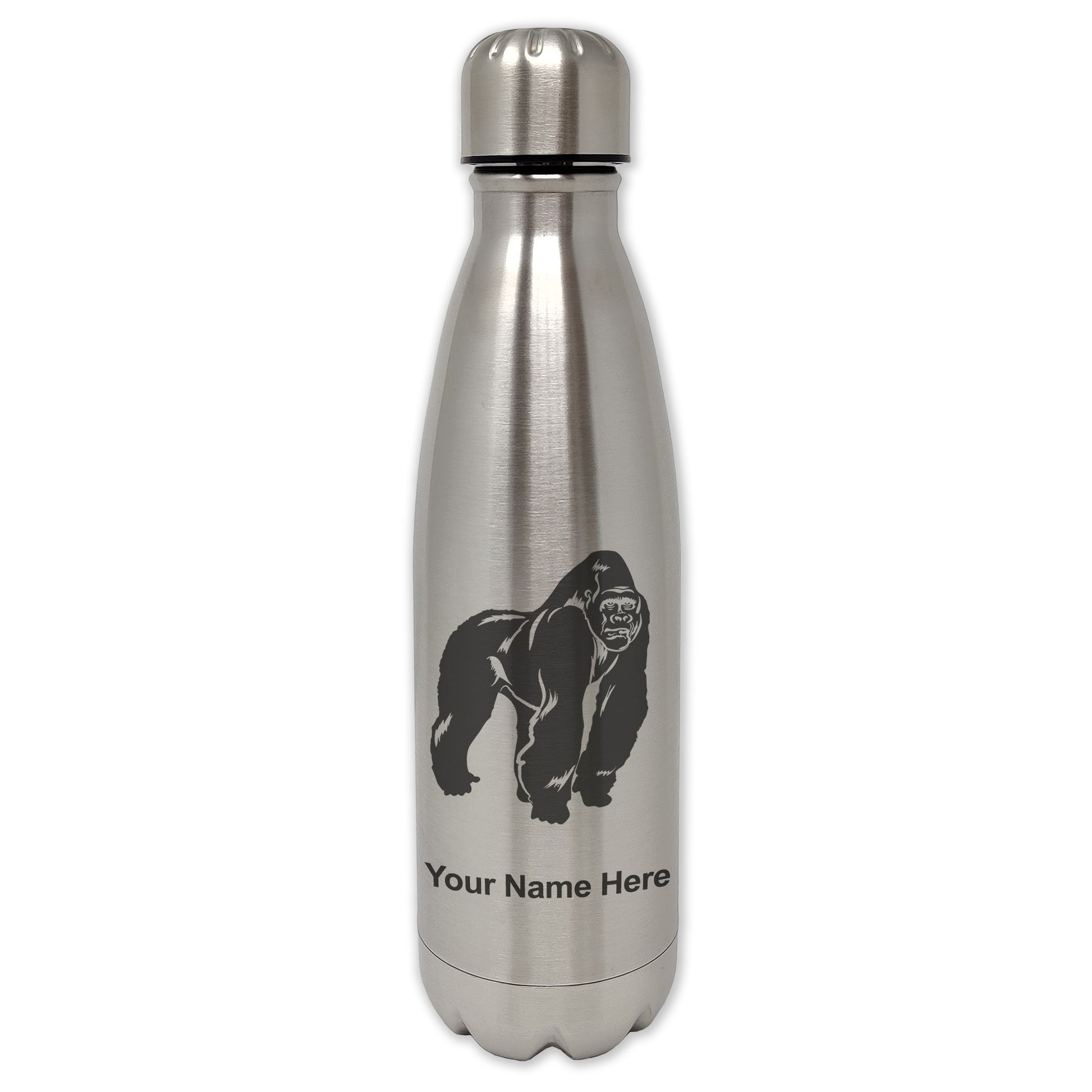 LaserGram Single Wall Water Bottle, Gorilla, Personalized Engraving Included