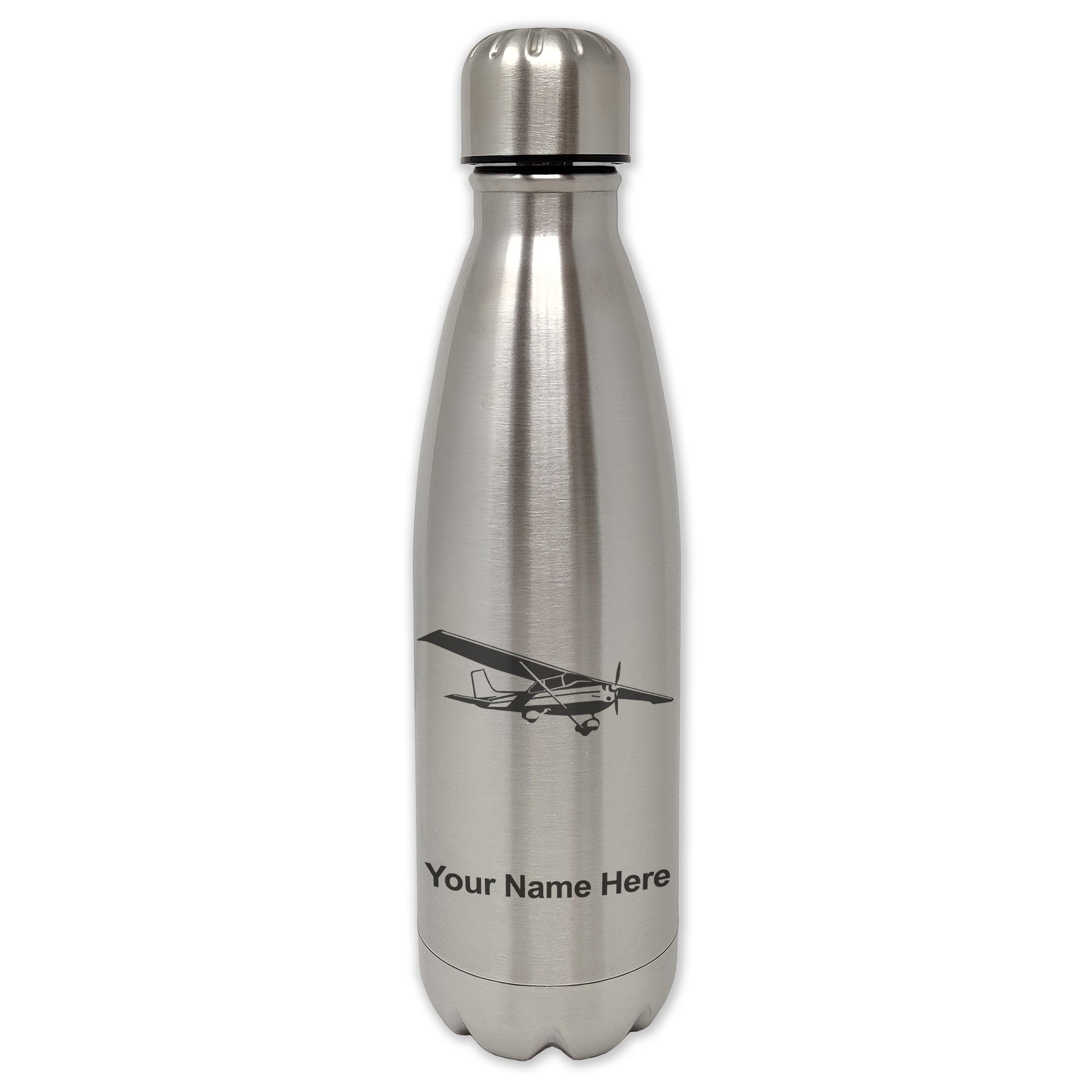 LaserGram Single Wall Water Bottle, High Wing Airplane, Personalized Engraving Included