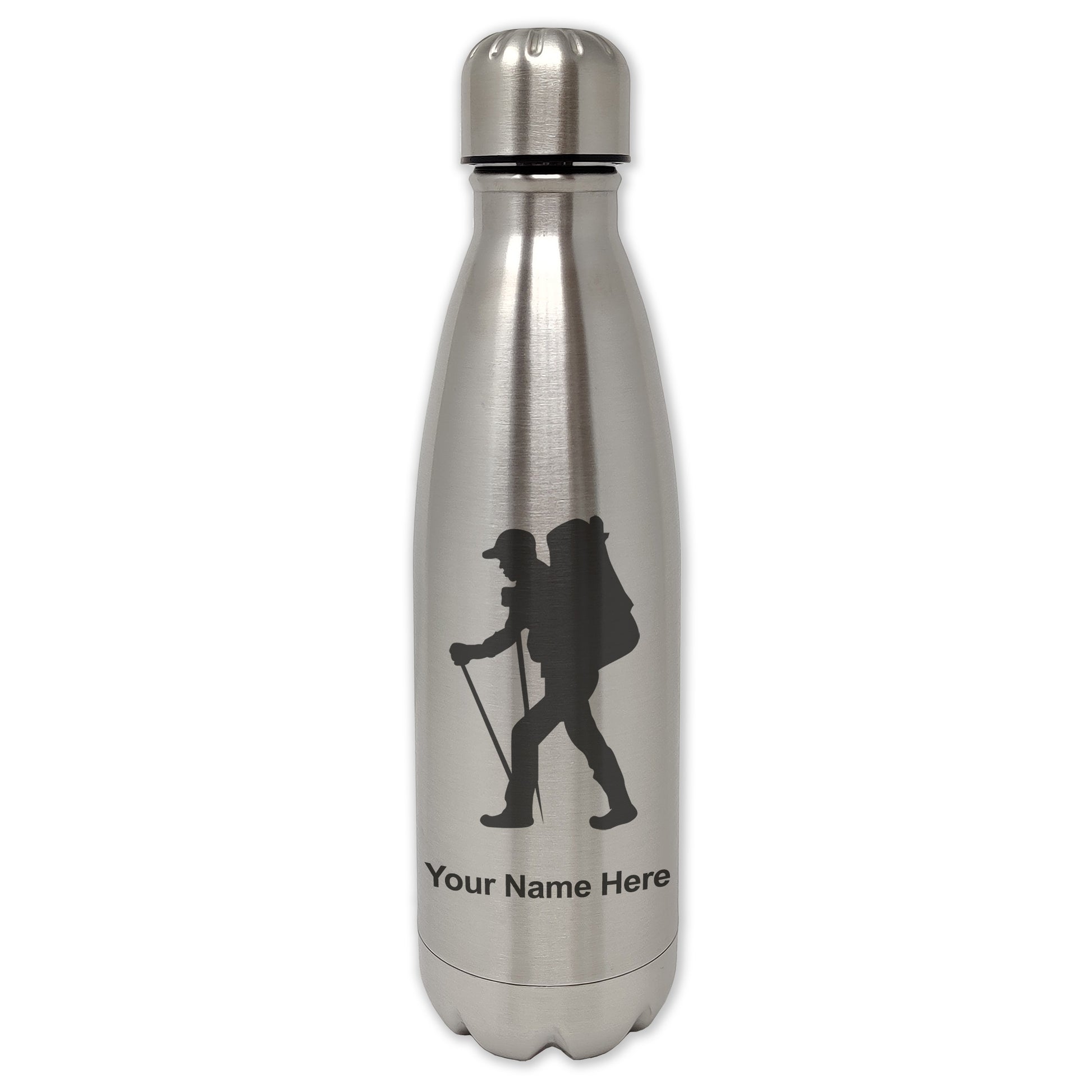 LaserGram Single Wall Water Bottle, Hiker Man, Personalized Engraving Included