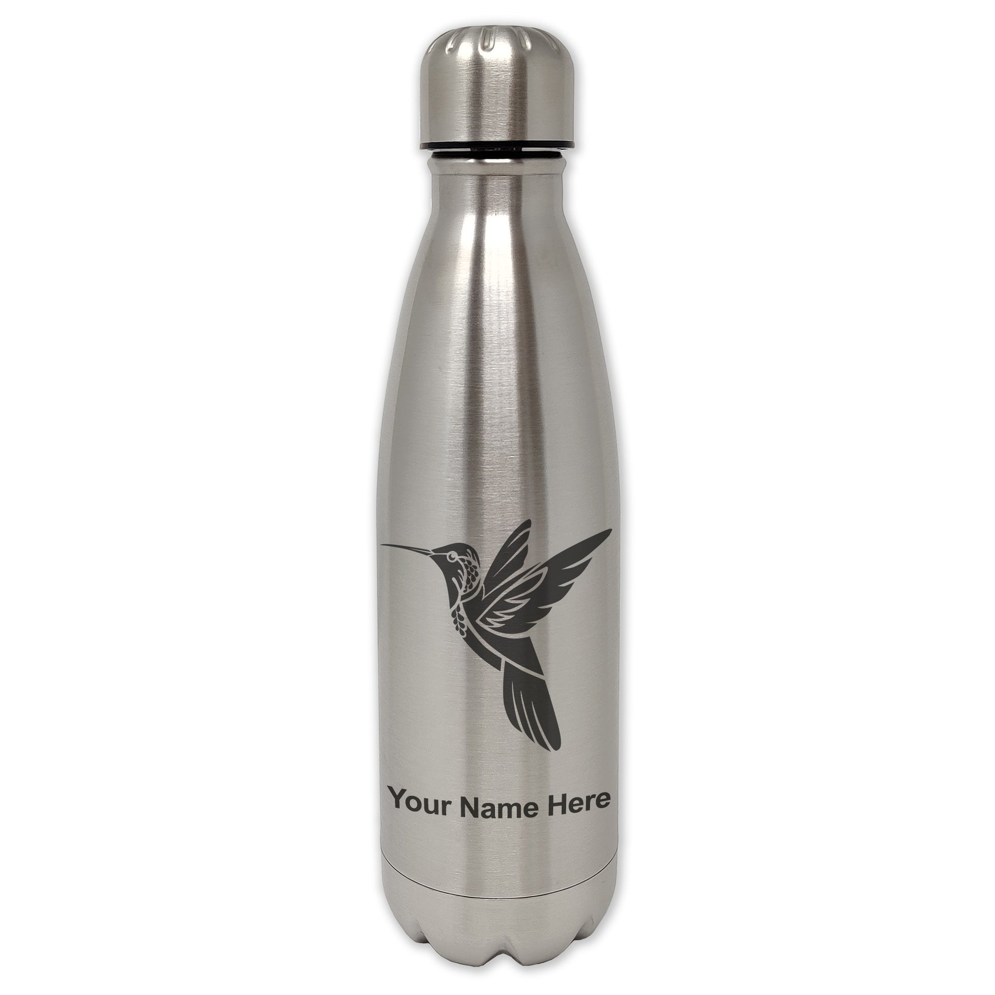 LaserGram Single Wall Water Bottle, Hummingbird, Personalized Engraving Included
