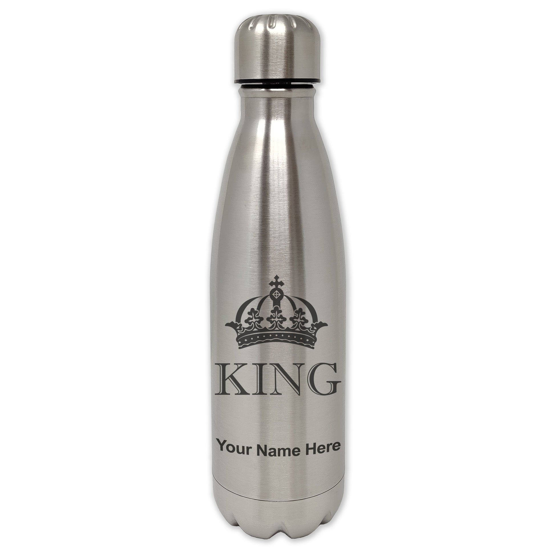 LaserGram Single Wall Water Bottle, King Crown, Personalized Engraving Included