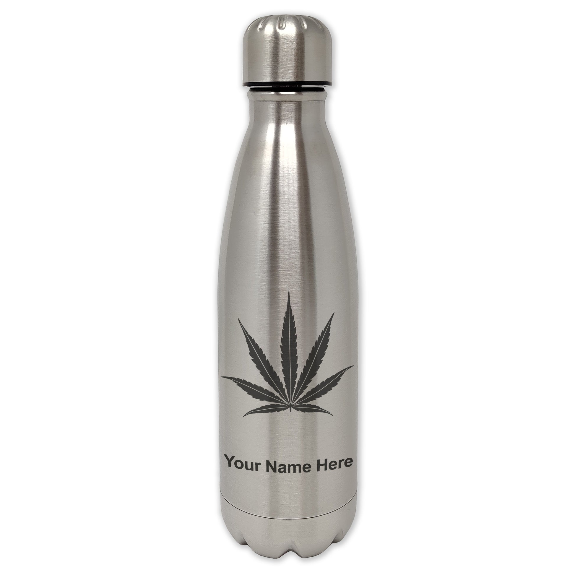 LaserGram Single Wall Water Bottle, Marijuana leaf, Personalized Engraving Included