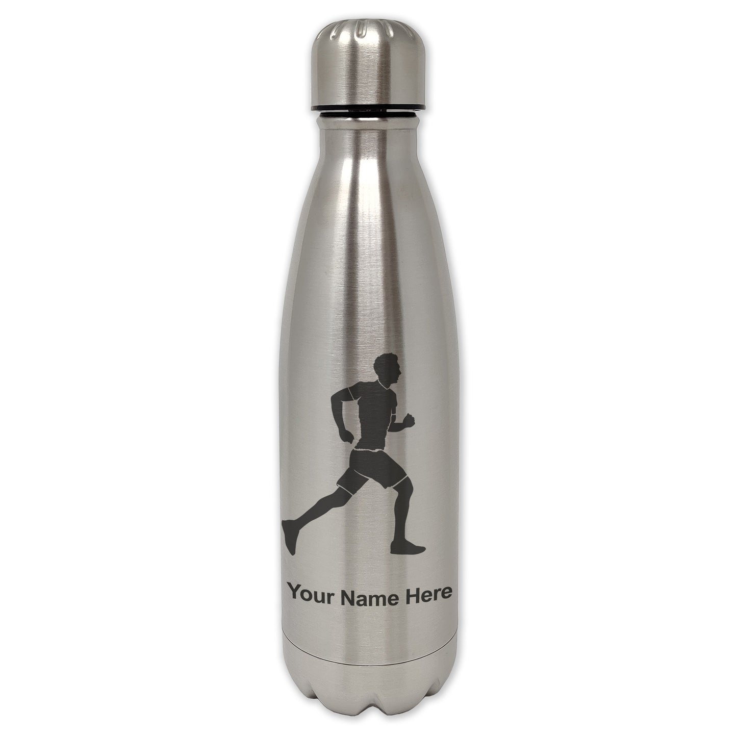 LaserGram Single Wall Water Bottle, Running Man, Personalized Engraving Included